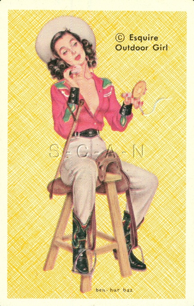 Vintage Seminude Playing Card- Pinup Swap Trading Card- Crop- Cowgirl- Esquire