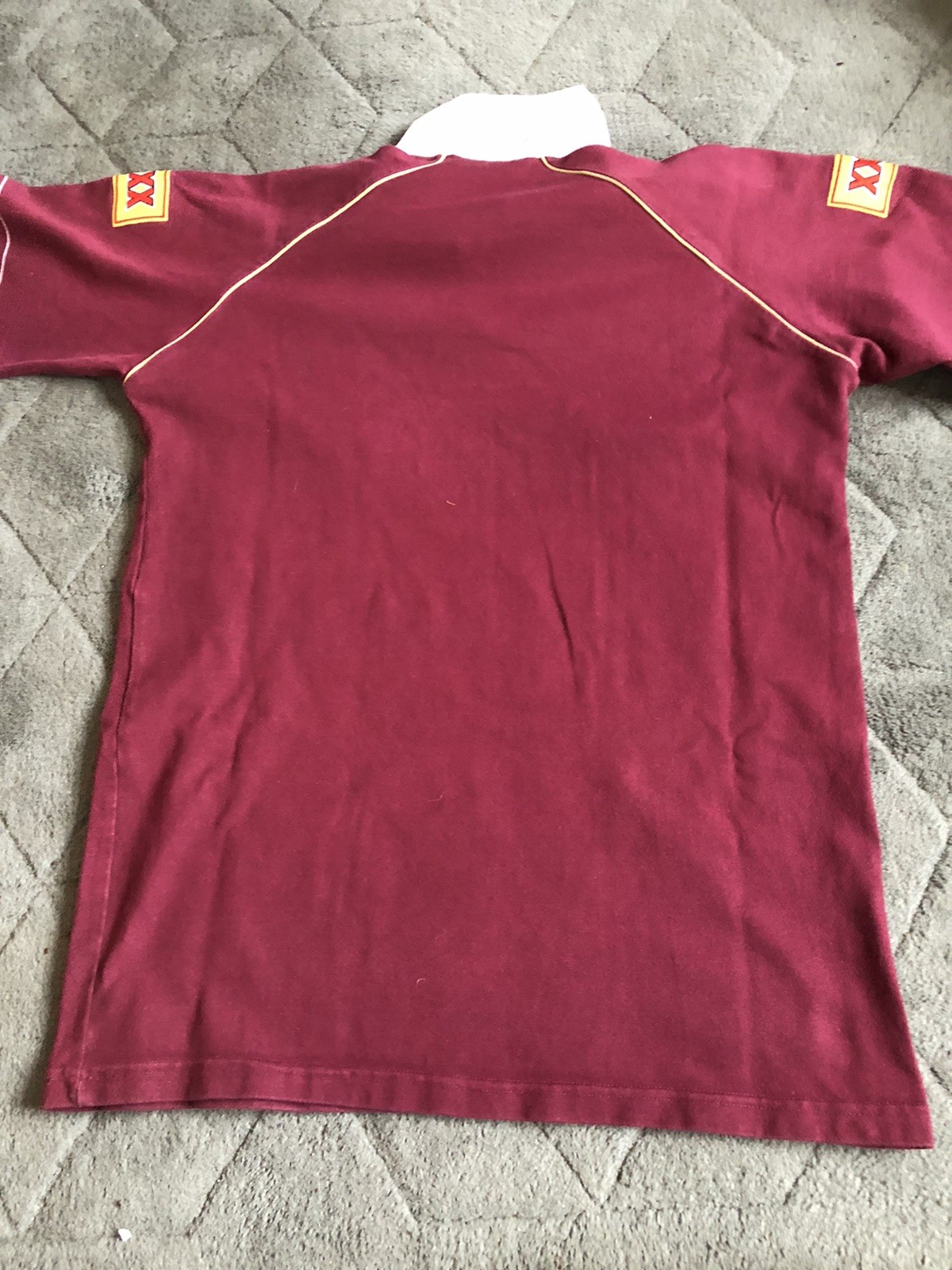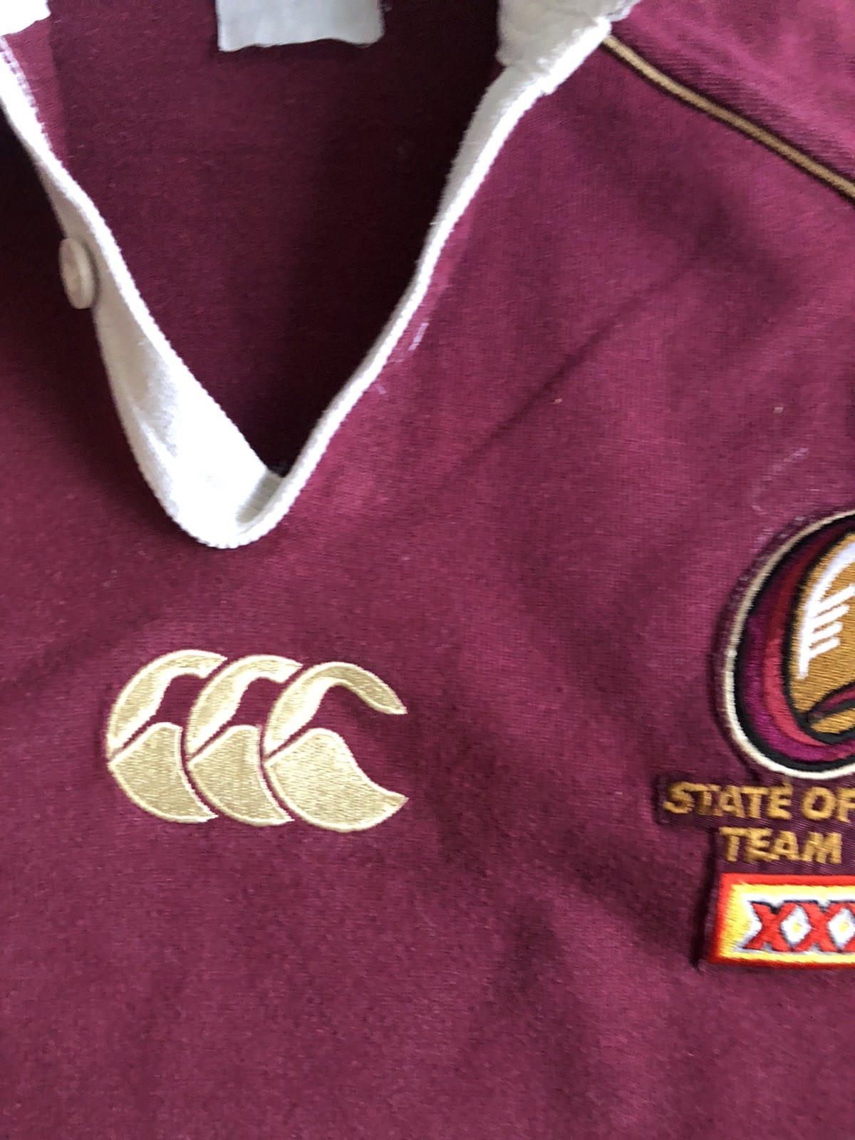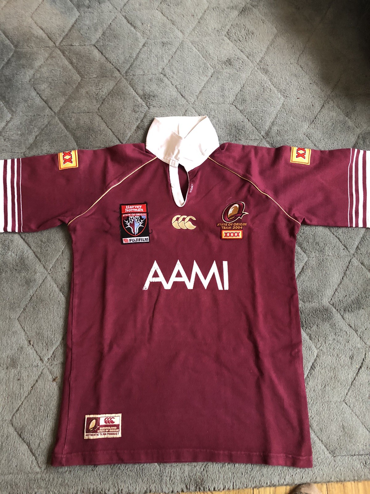 This Rugby League Shirt is State of Origin Queensland shirt dated 2004. It is in very good condition, with NO holes or pulls, and only slight wear on the AAMI white logo see pictures. The size is Large and measures 47 inches armpit to armpit. It measures 30 and a half inches from neck centre back to the hem. Good, clean condition