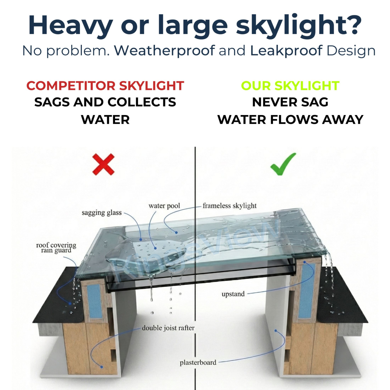Our skylights are manufactured using Low-E laminated glass designed to reduce the impact of harmful UV radiation while allowing high levels of natural daylight to pass through.