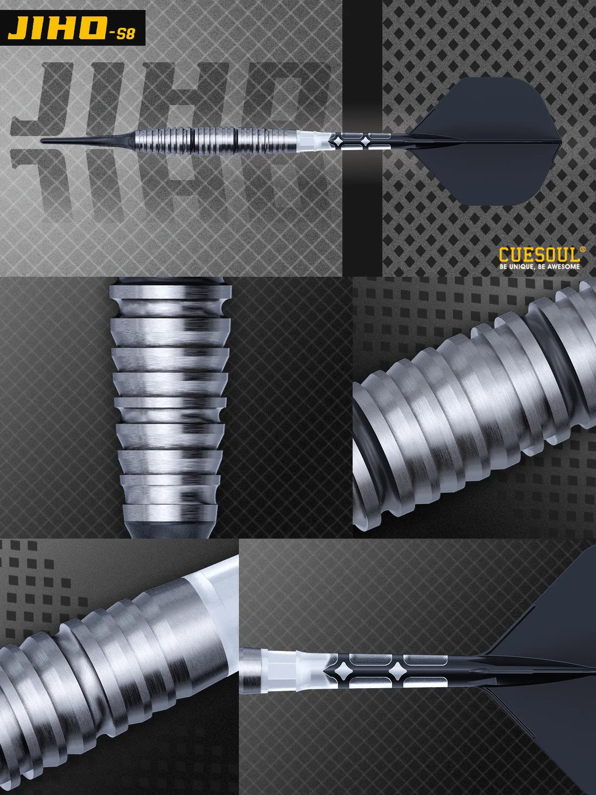 Cuesoul JIHO darts are manufactured with 90% Tungsten with a titanium coating. The JIHO darts include ROST T19 flights and are designed to help players improve their accuracy. Cuesoul JIHO darts can be used for professional play, at a dart bar or pub, or at home.
