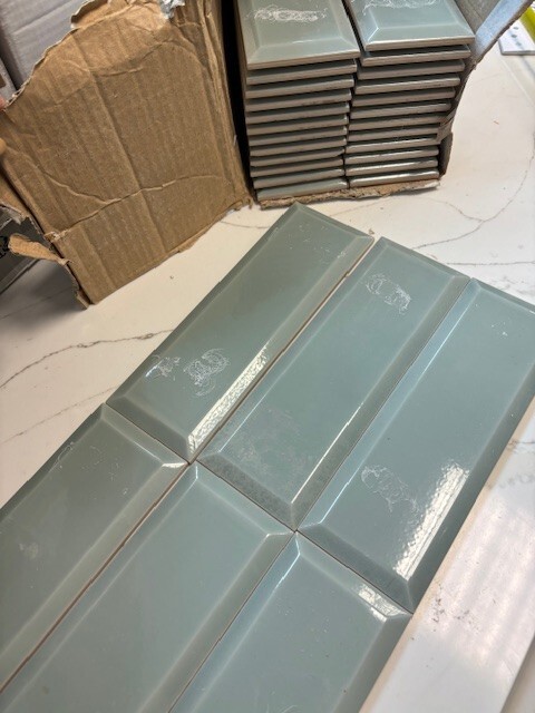 This is a great opportunity to clearance green tiles light, measuring 7,5 x 22,50 cm, only 1 box left.Please see the photos. Collection from Eco Design Group in Bournemouth.