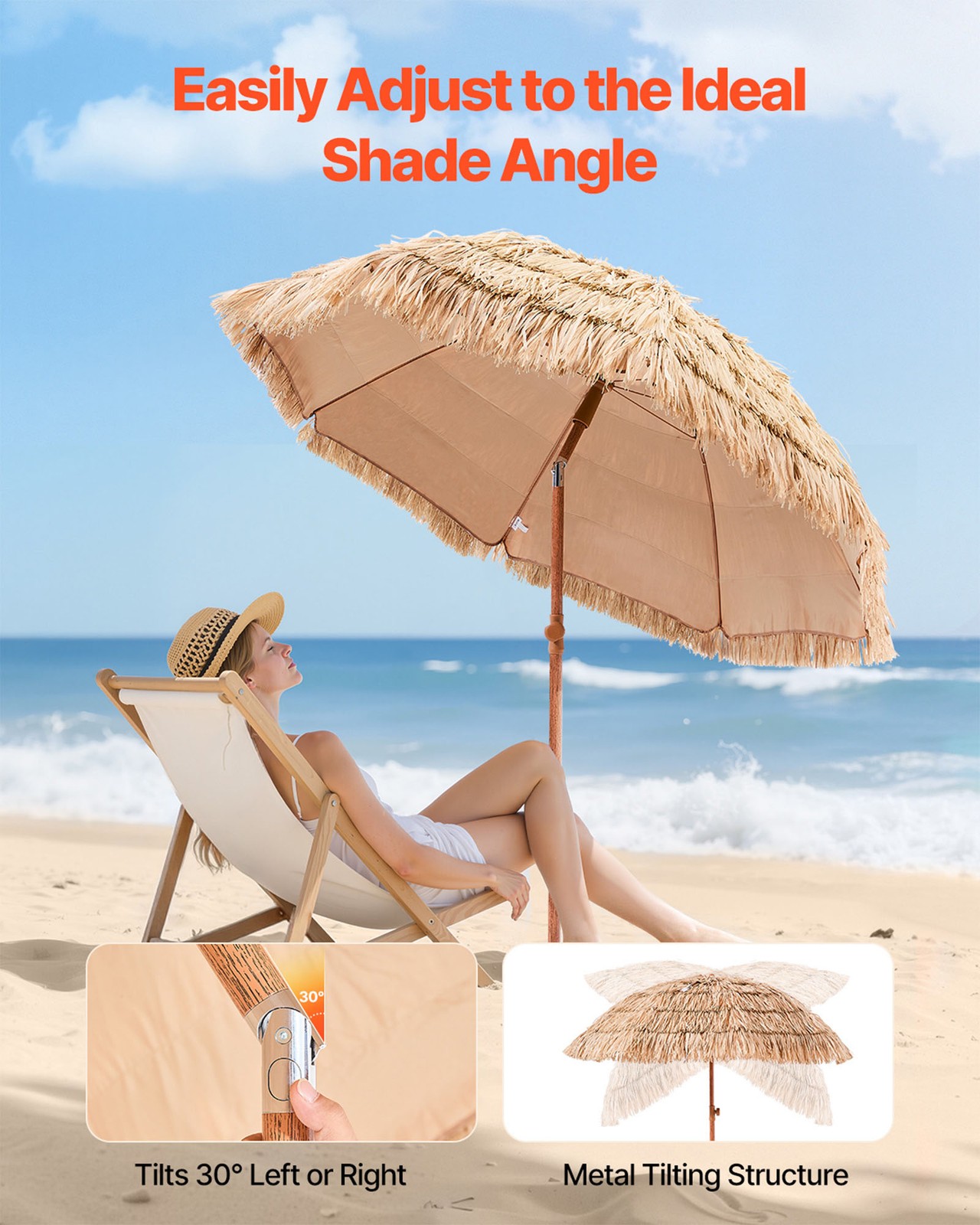 The thatched tiki umbrella features an easy-to-use tilt mechanism that helps block sunlight from different directions. It provides better shade coverage, keeping you cool even when the sun is at an angle.