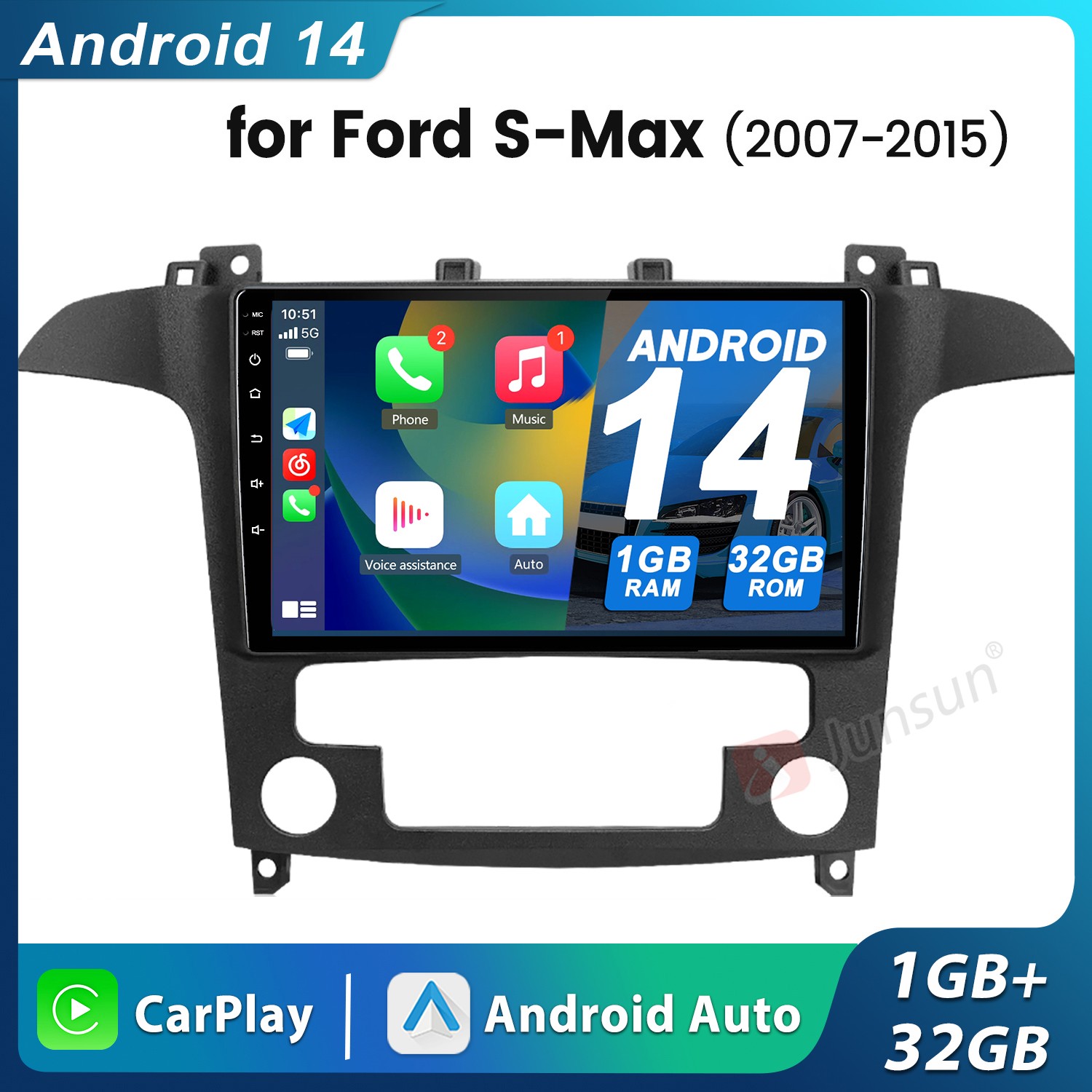 For Ford S-Max 2007-2015 Carplay Android 14 Car Stereo GPS Sat Nav Unit RDS WiFi
