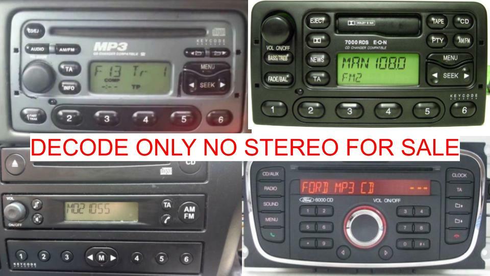 HI, AND WELCOME TO THIS BUY IT NOW FOR A FORD DECODE ONLY, THIS SALE IS NOT FOR A RADIO, JUST YOUR FACTORY FIT FORD RADIO CODE SO DON'T BE SILLY WHEN YOU ASK WHERE IS YOUR 99p CAR RADIO.