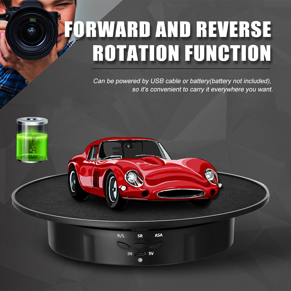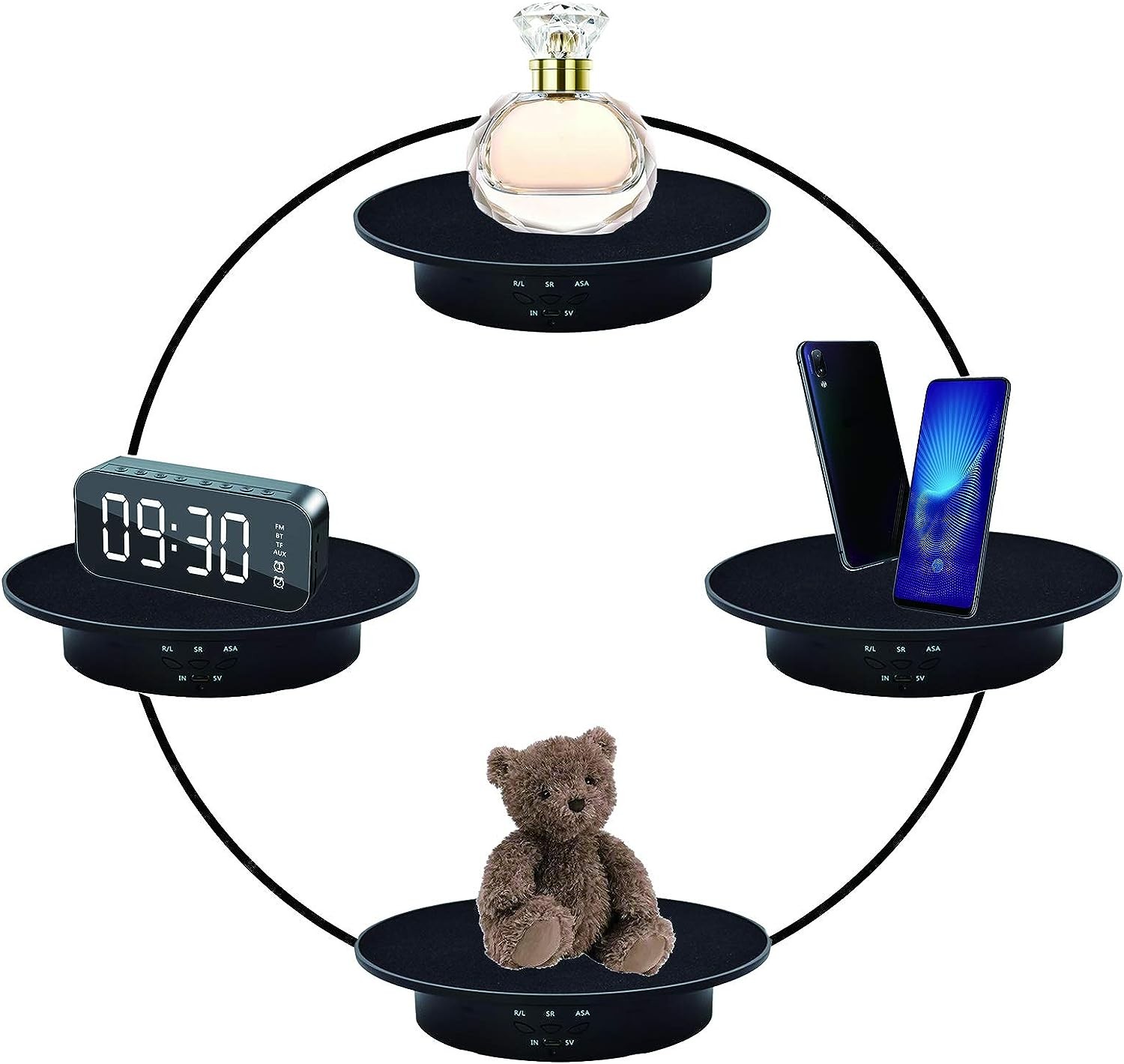 4. Power Supply: The rotating display stand operates on USB power or powered batteries (not included). Dimensions: 20x4cm Can hold up to 8kg.