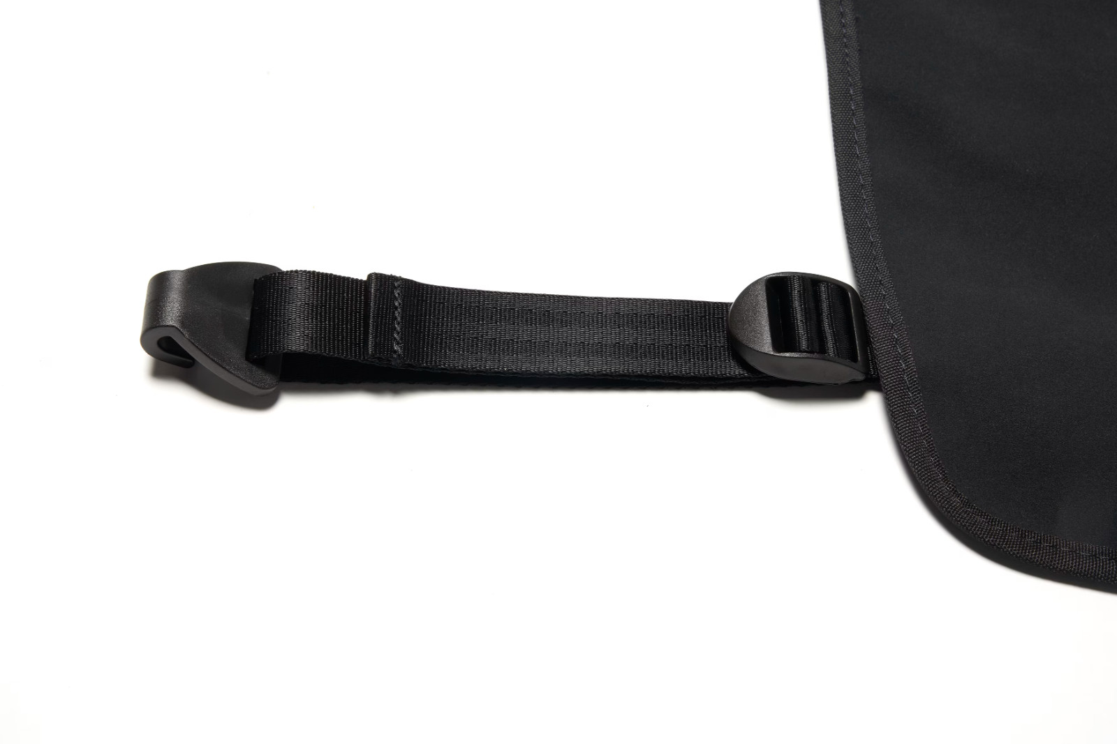The backrest protector prevents soiling and damage to the backs of the seats through dirty shoes or kicks by the rear passengers.