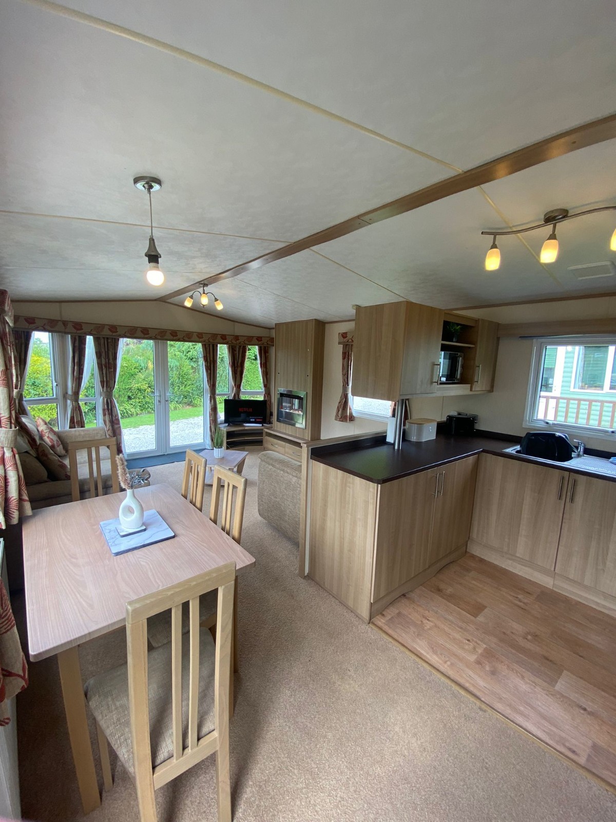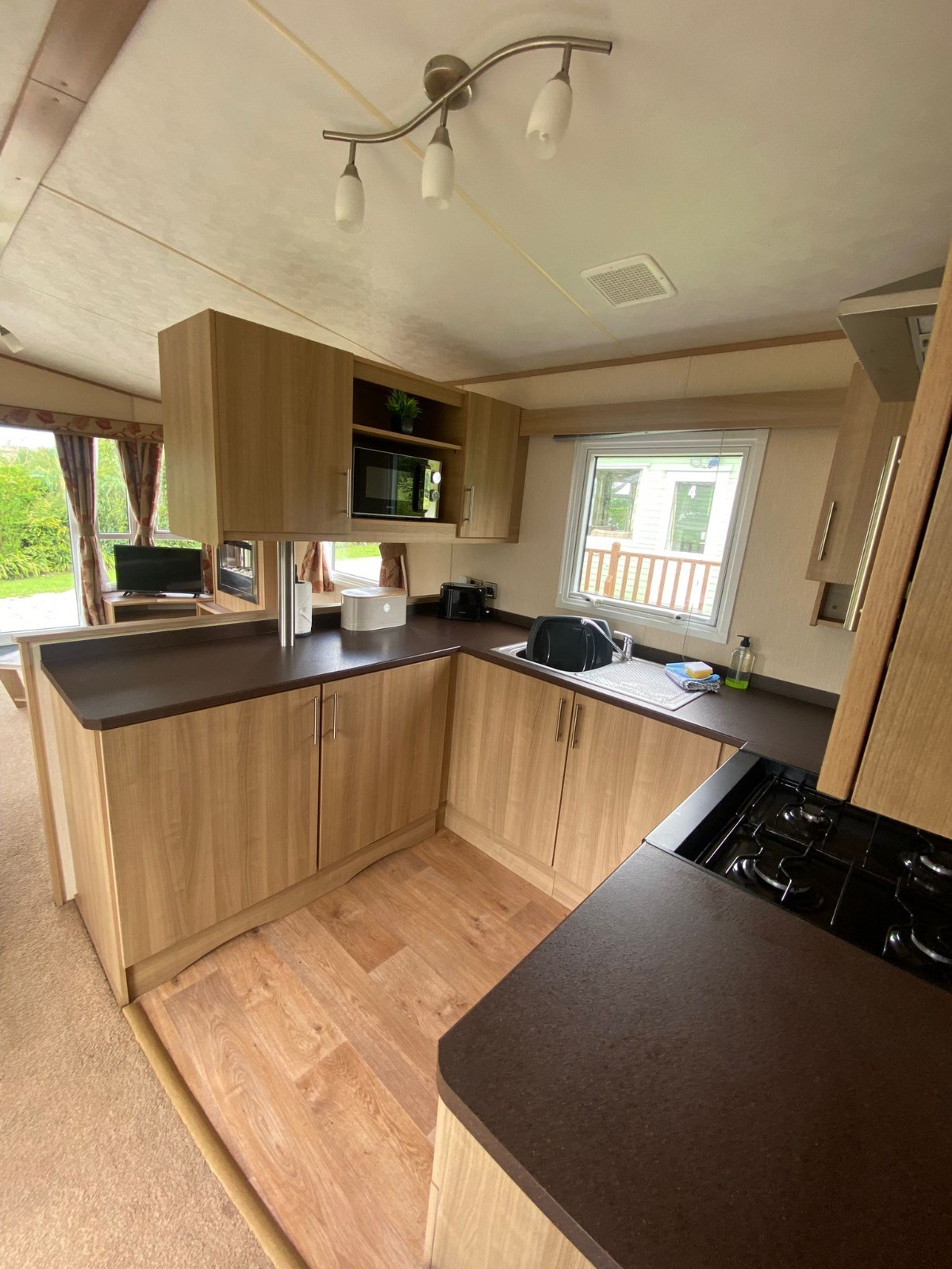 Inside you'll find a comfortable double bedroom, a twin bedroom, and a pull-out sofa bed in the lounge area. The caravan also features a bright open-plan living space with a Smart TV, allowing you to log into Netflix or Prime and unwind after a day exploring the Lakes.