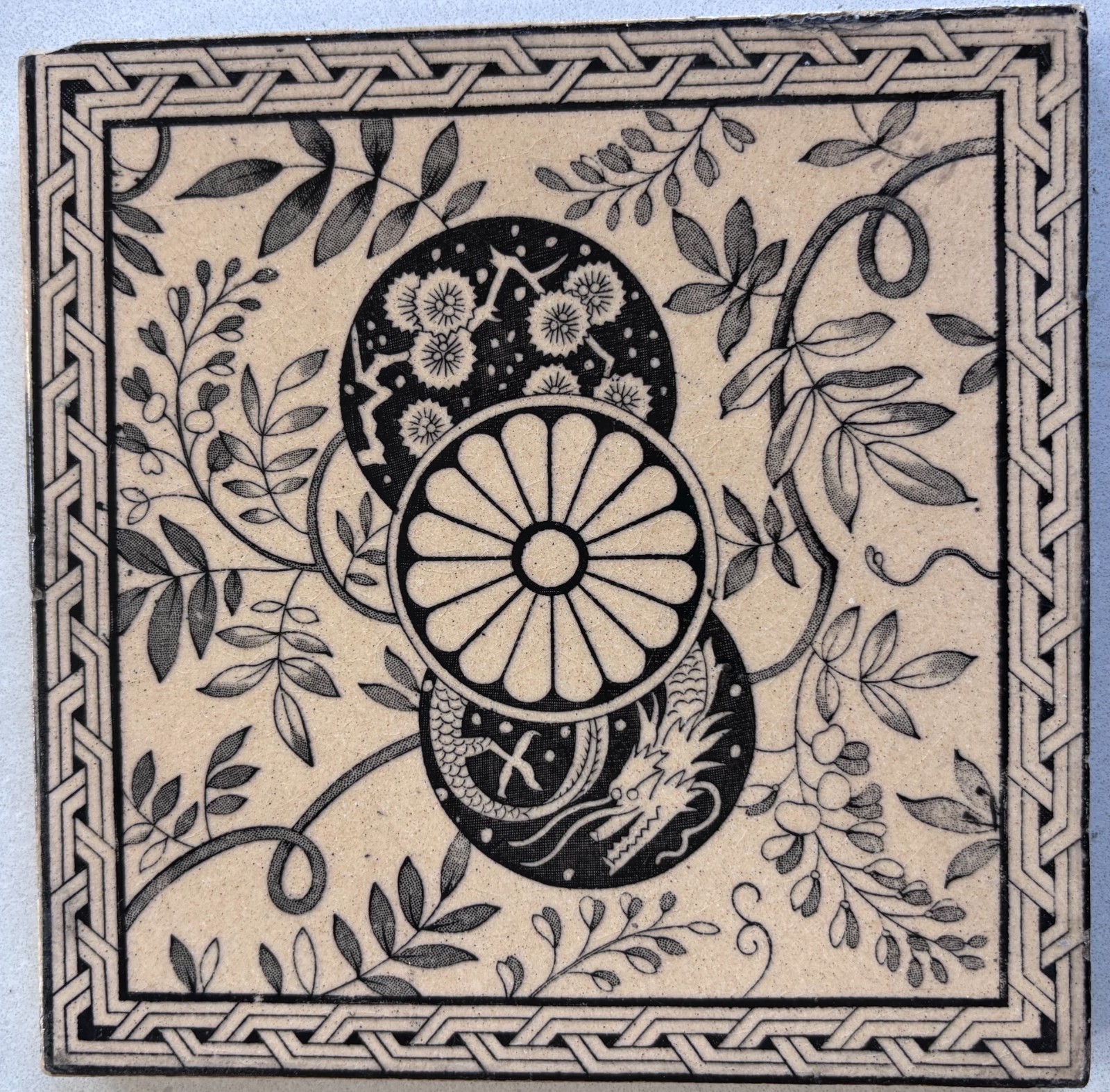 This is a beautiful aesthetic Japanesque 6 inch tile c1885. There is no noticeable crazing. There is a chip on the top left hand edge and a very small chip on the left hand edge. The tile is in good condition. Please let me know if you would like any further images or information.