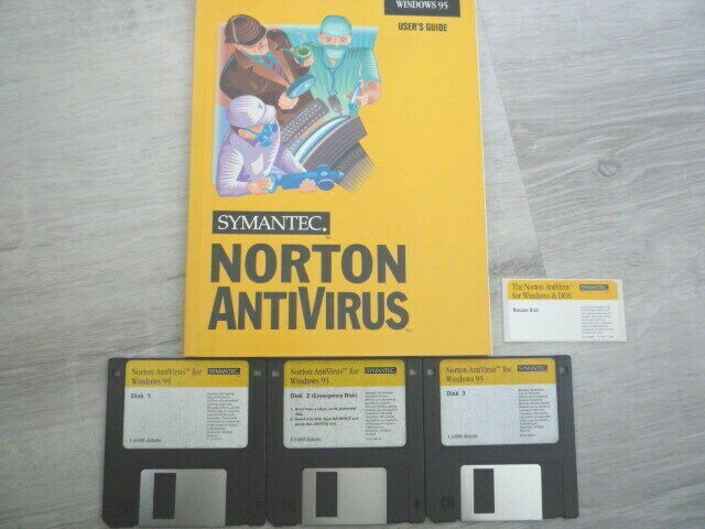 Vintage Symantec Norton Anti Virus for Windows 95Original 3.5 Software Floppy DisksRescue Disk StickerOriginal User's Guide BookNo BoxSee Pictures before buying