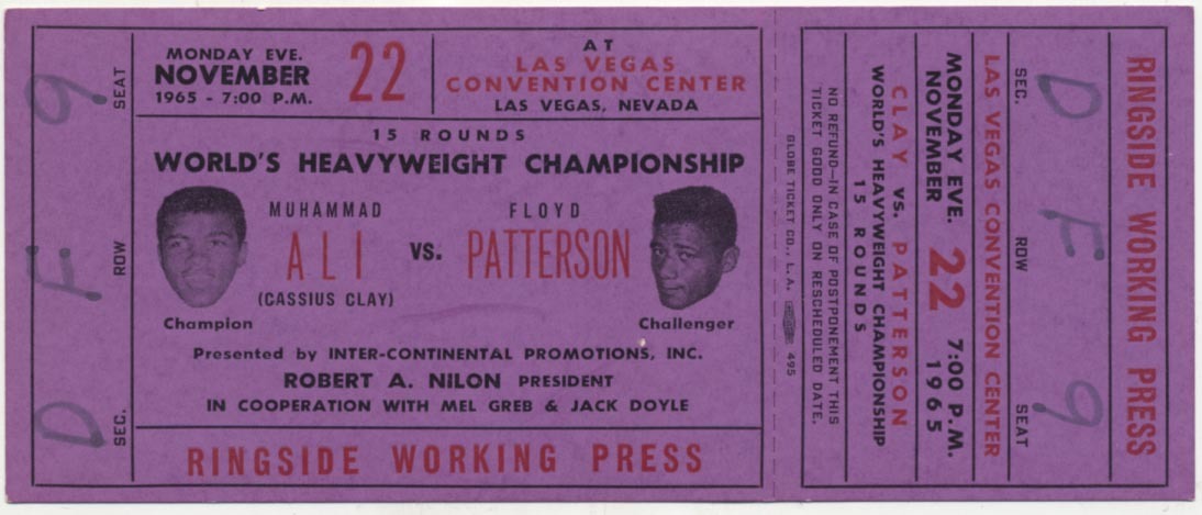 1965 Ticket Ali/Patterson Full Onsite Boxing Ticket NM 551473