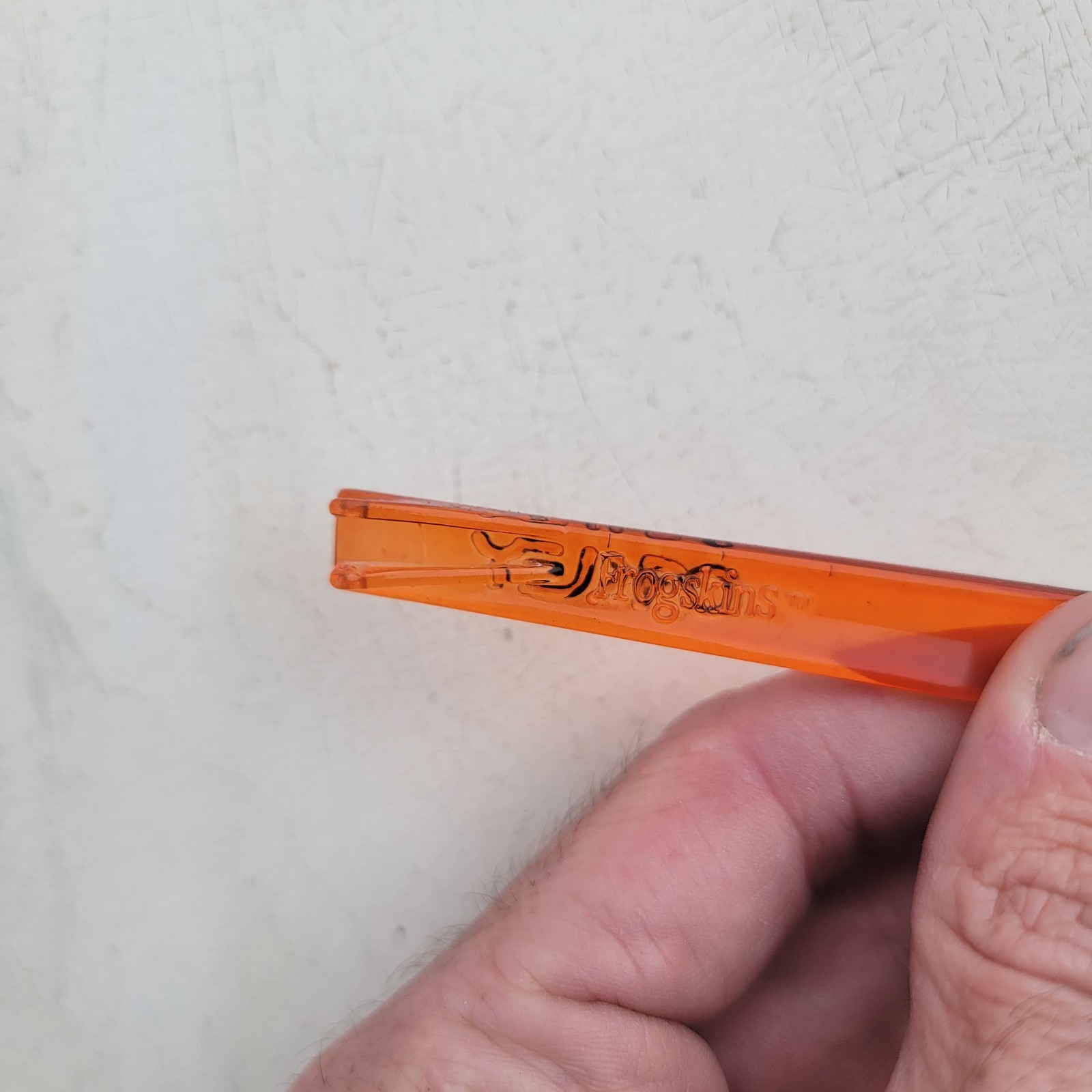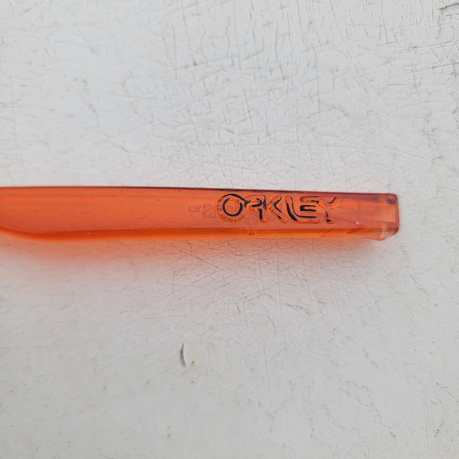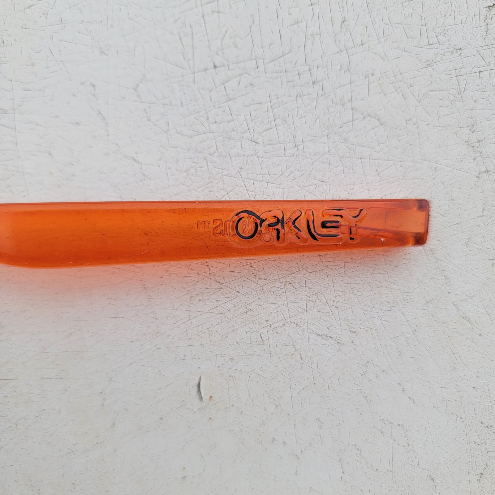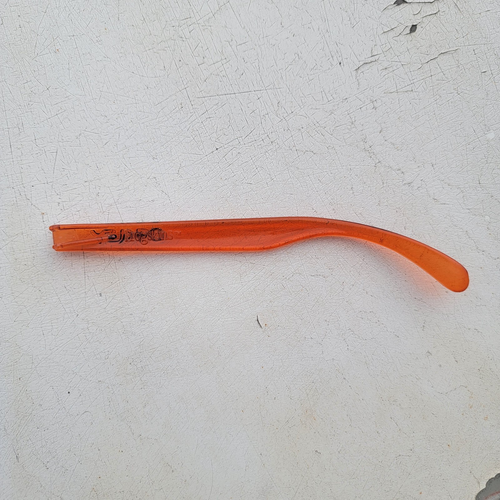 I bought a pair of these translucent orange frogskins many years ago. Took them to the river and boom my other temple arm was gone. Hopefully someone can make use of this. I have never seen another one pop up for sale so its a pretty rare color. I cannot confirm if its acid orange. It looks more like clear / translucent. For the right side.