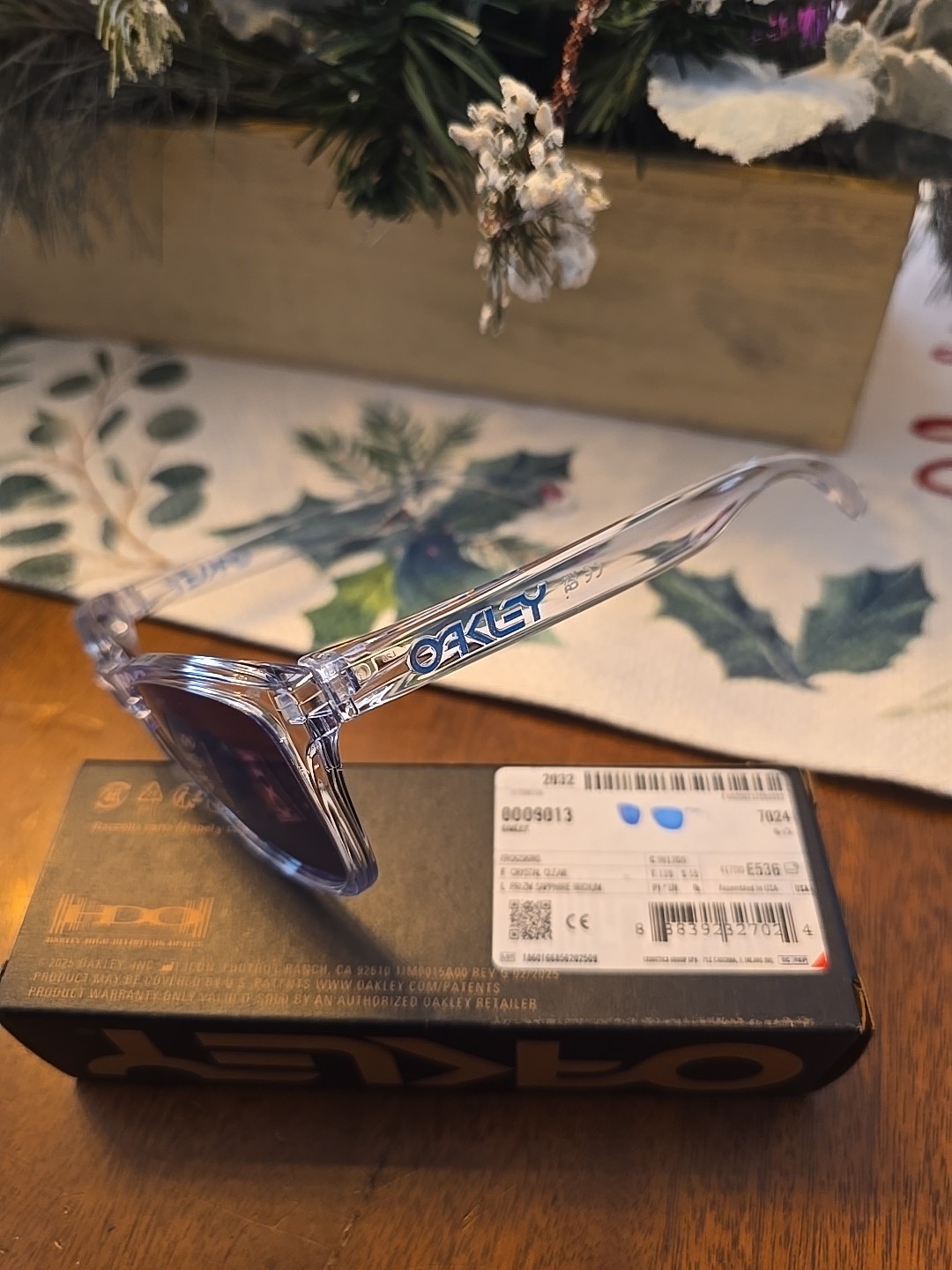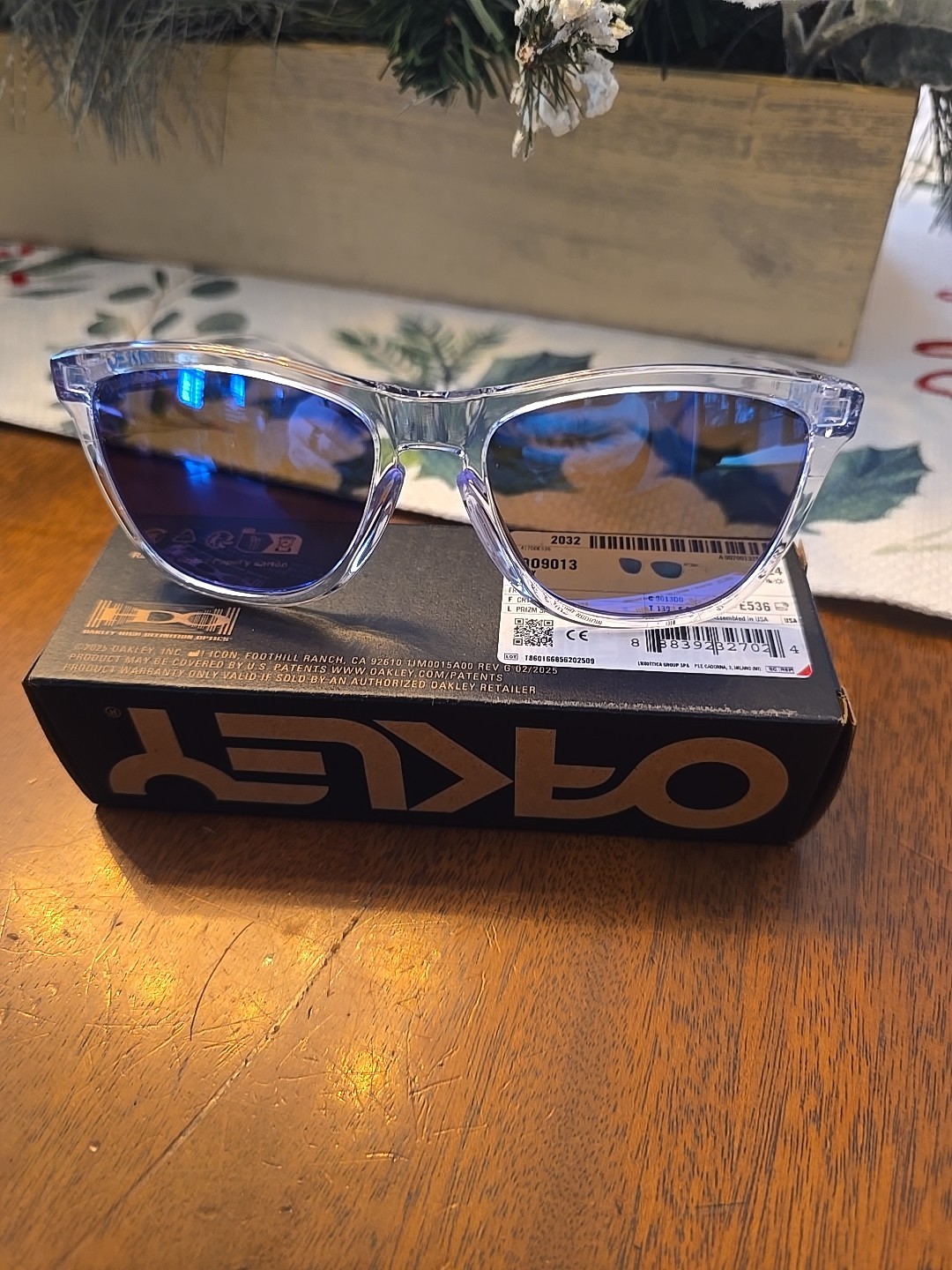 The Oakley Frogskins Unisex Sunglasses in Crystal Clear/Prizm Sapphire are stylish square-shaped sunglasses designed for men. These sunglasses feature anti-reflective plastic lenses in a vibrant blue color, perfect for adding a pop of color to any outfit. With a plastic frame and temple length of 139mm, these Oakley Frogskins offer a comfortable fit and sleek design that is sure to make a statement. Perfect for any outdoor activity, these sunglasses provide both style and functionality with their quality lens technology.