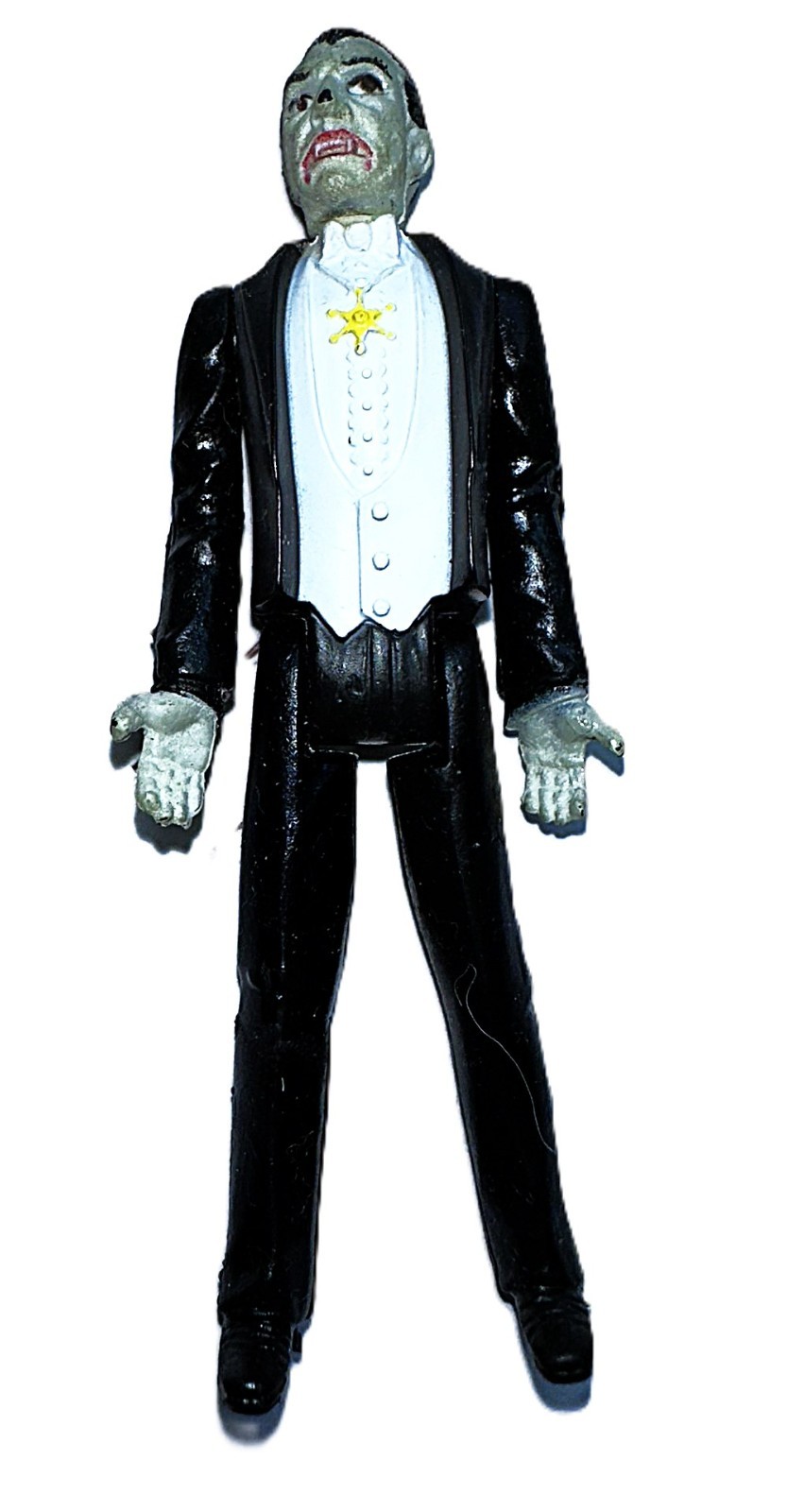 The 1980 Remco Universal Monsters 4" Figure Dracula is a vintage action figure from a bygone era. Part of the Universe series, this toy features the iconic character Dracula from the Universal Monsters franchise. With its nostalgic charm and retro design, this collectible piece is a must-have for any toy enthusiast or fan of classic horror characters. Made by Remco in 1980, this figure is a rare find that captures the essence of 80s toy culture and the enduring appeal of timeless monsters.