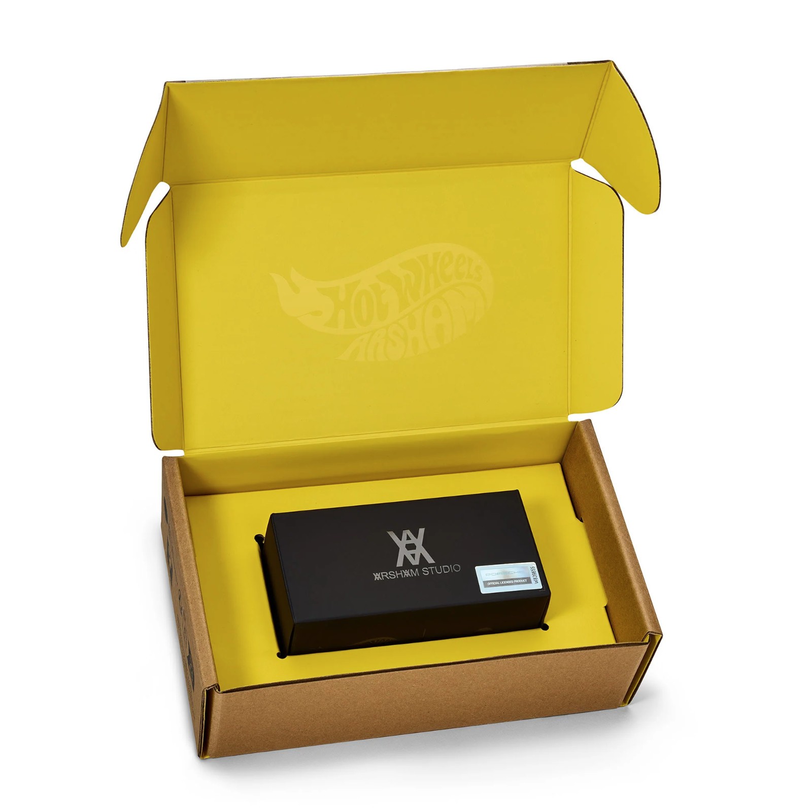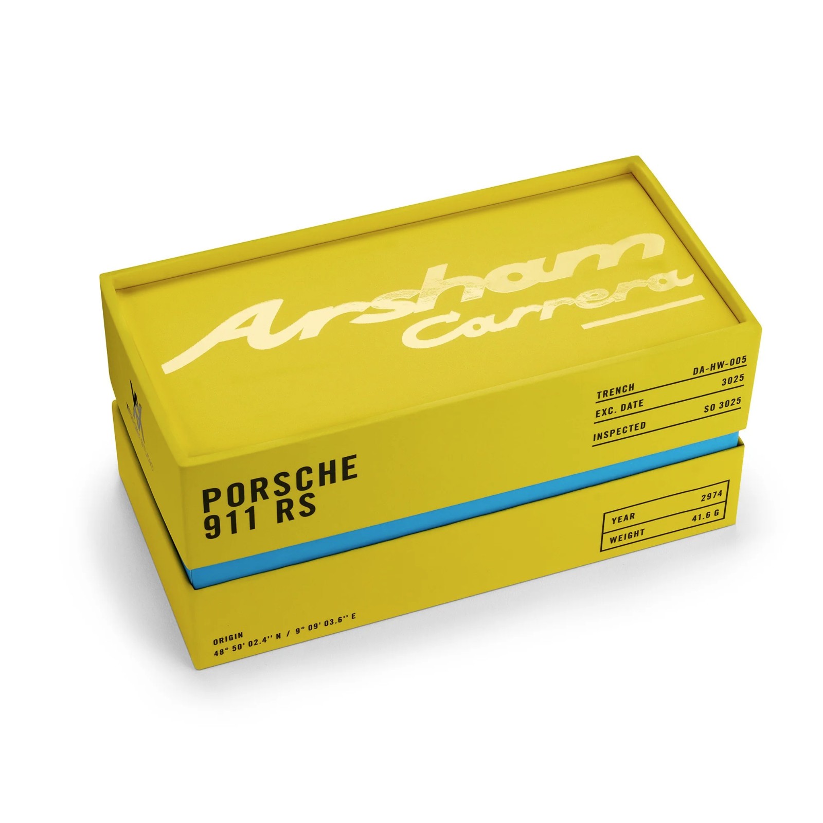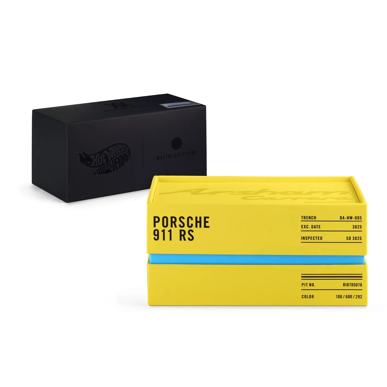 After completing eight striking works of art together, Hot Wheels and Daniel Arsham are taking a victory lap with the release of a ninth collaboration car. The Porsche 911 Carrera RS is often considered the “ultimate” 911. Arsham, an avid Porsche fan and collector, paid homage to it with his RSA project, which we’ve recreated at 1:64 scale. The color, deco, and pinstriping evoke the era of its heyday, as does the molded version of the 1:1’s wide-wale corduroy upholstery and “RSA” headrest stitching.
