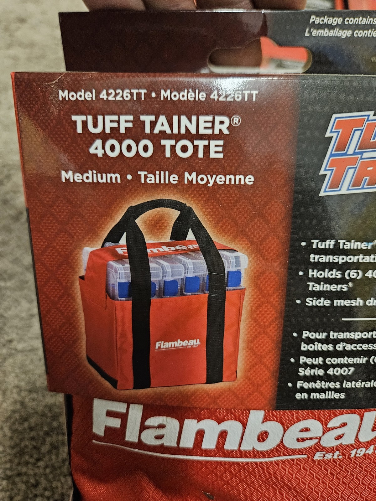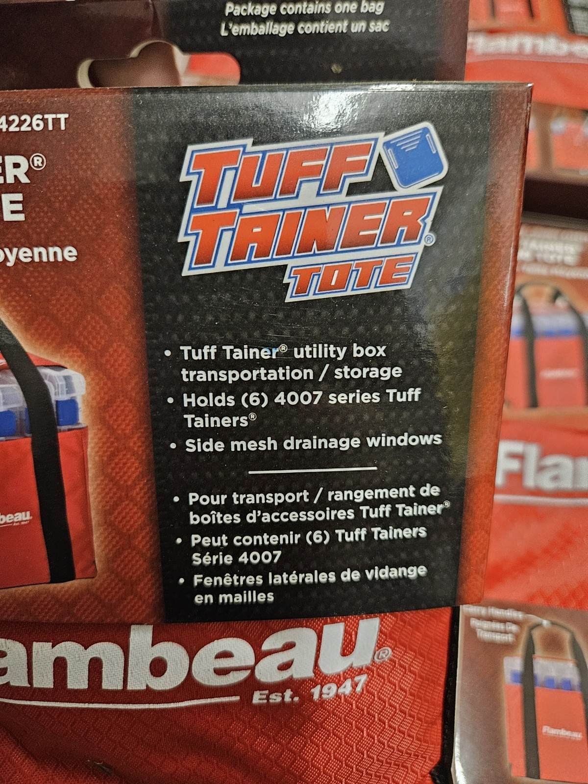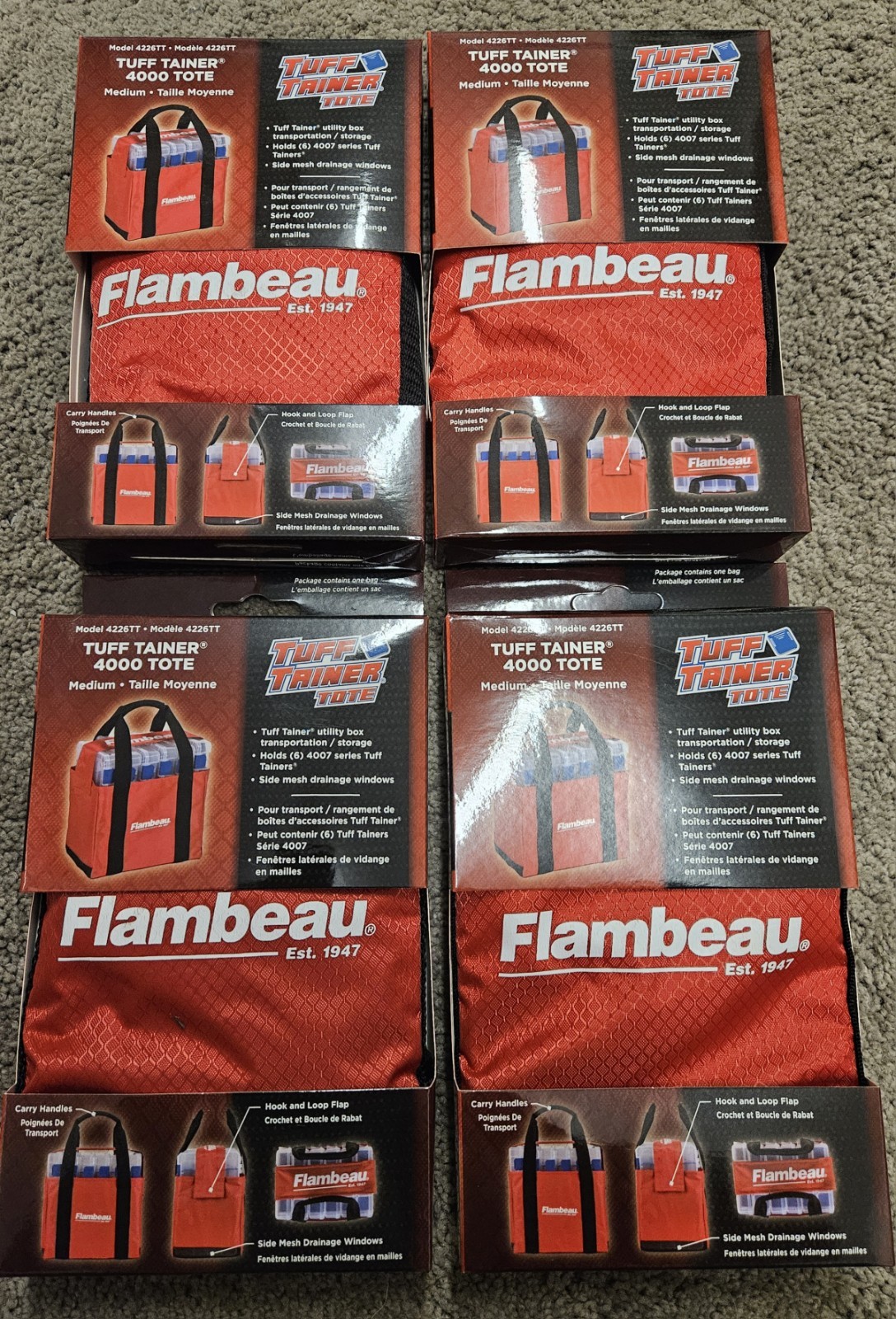 The Flambeau Tuff Tainer 4000 Tote Tool Tackle Bag Medium is a durable and practical fishing accessory. Made of polyester material in a bright red color, these tackle bags feature one spacious pocket and a convenient shoulder strap for easy transport. With a sleek design and the trusted Flambeau brand name, these bags are perfect for storing and carrying your fishing essentials. Each bag measures 11.25 inches in height and comes in a set of four, making them a versatile and essential addition to any angler's gear collection.