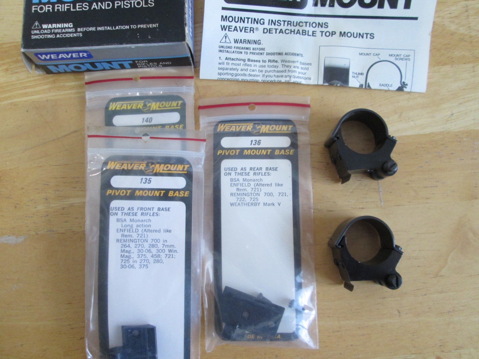 Use 135 & 136 bases for Remington 700, 721, 722, & 725 long action rifles. Use 136 & 140 bases for 700, 722, & 725 short action rifles. Also work on BSA Monarch Rifles. Ship lower 48 only.