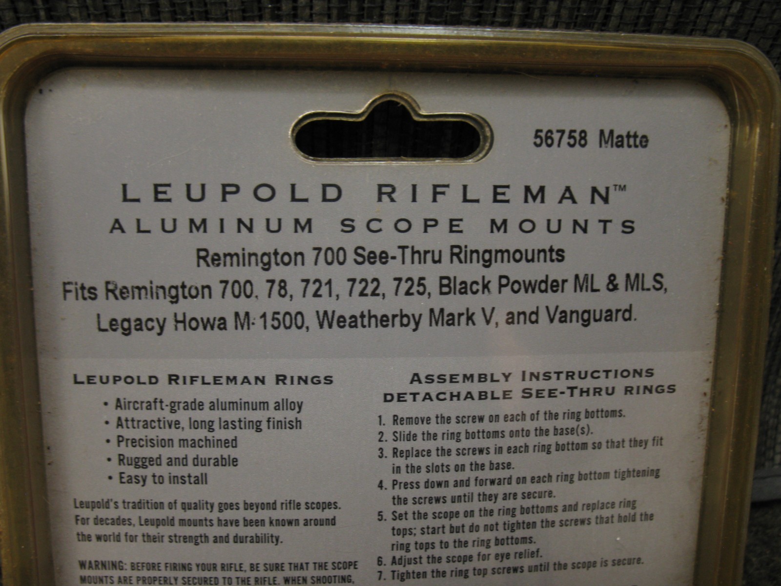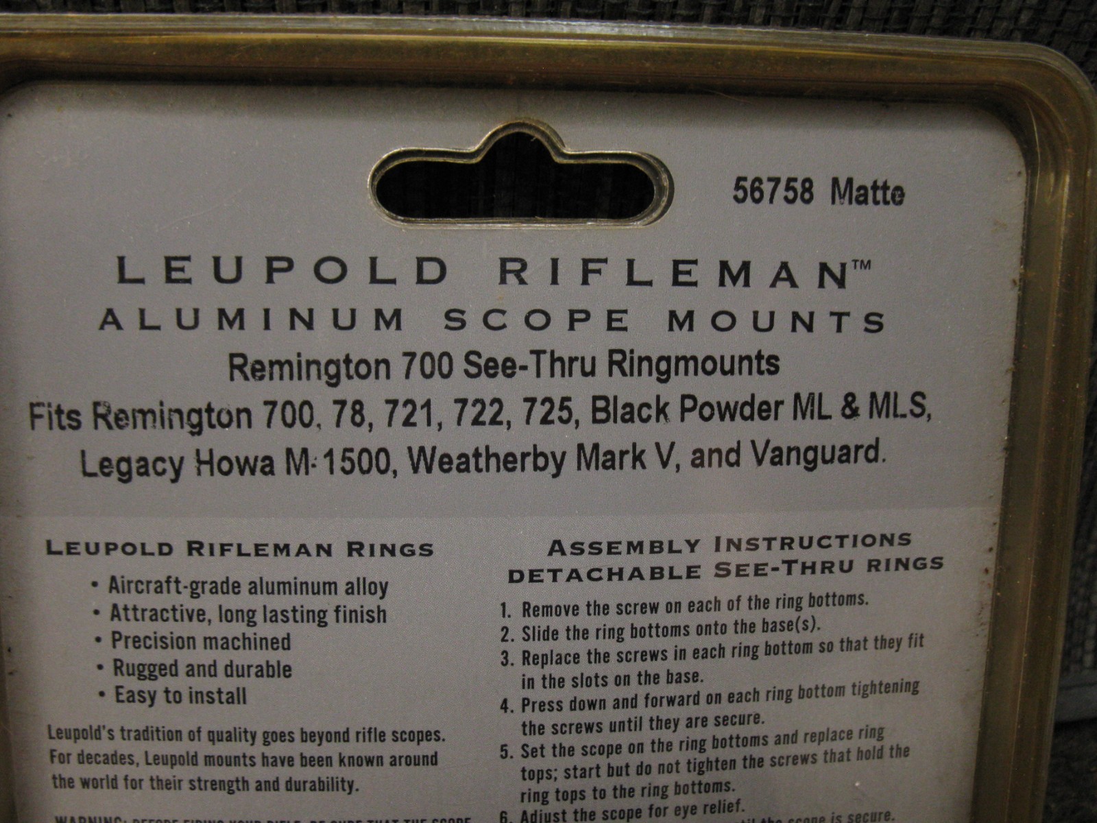 Leupold 56758 Black Matte Scope Rings Remington 700 Weatherby See-thru Mounts - Fit may other rifles - See Pictures- NOS
