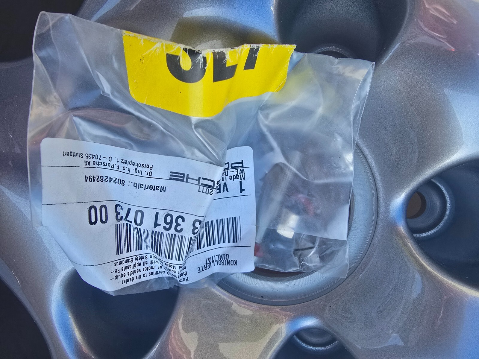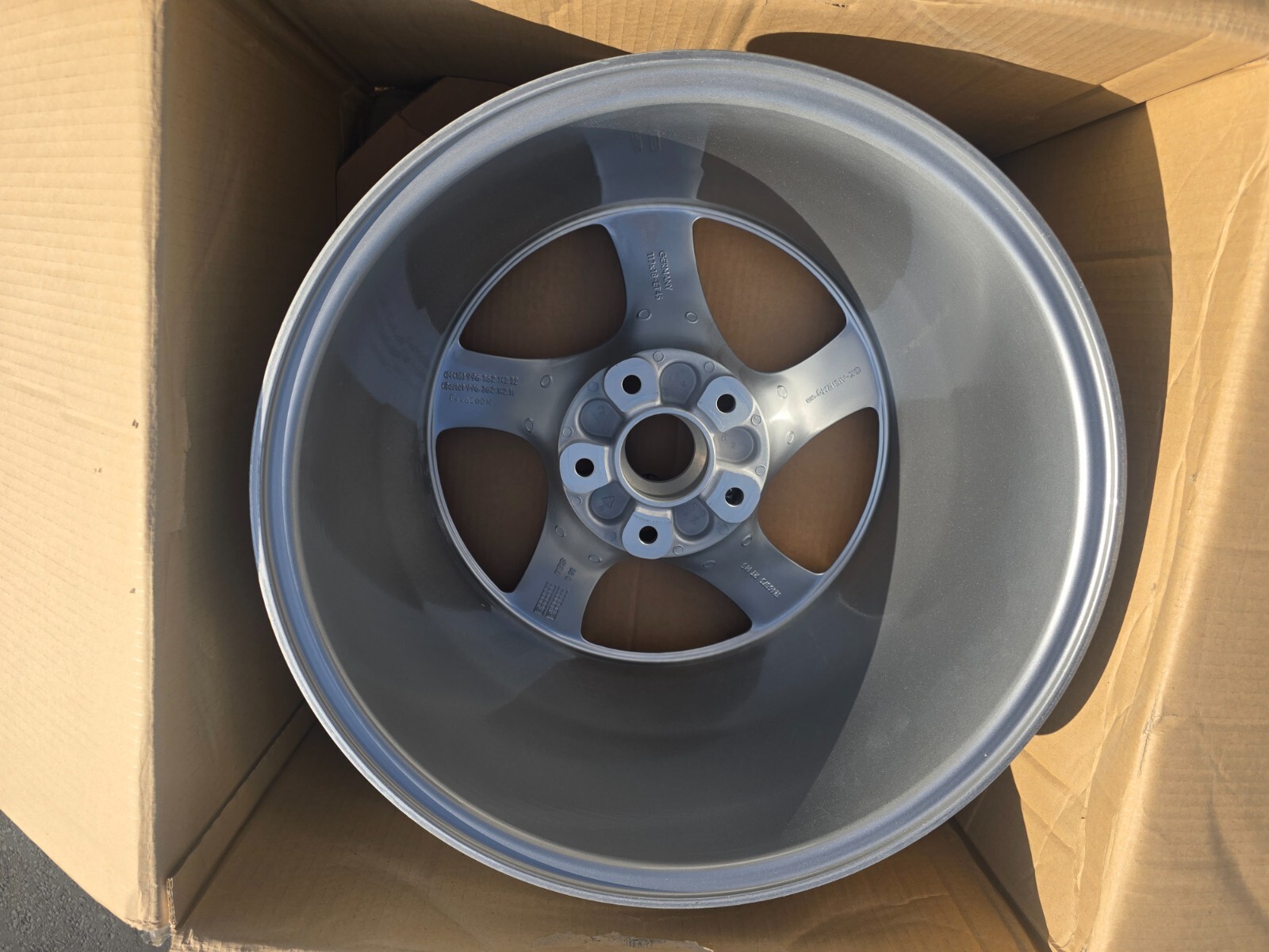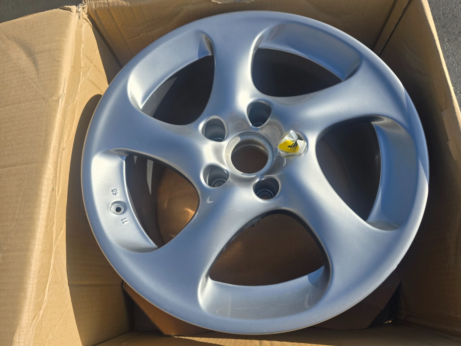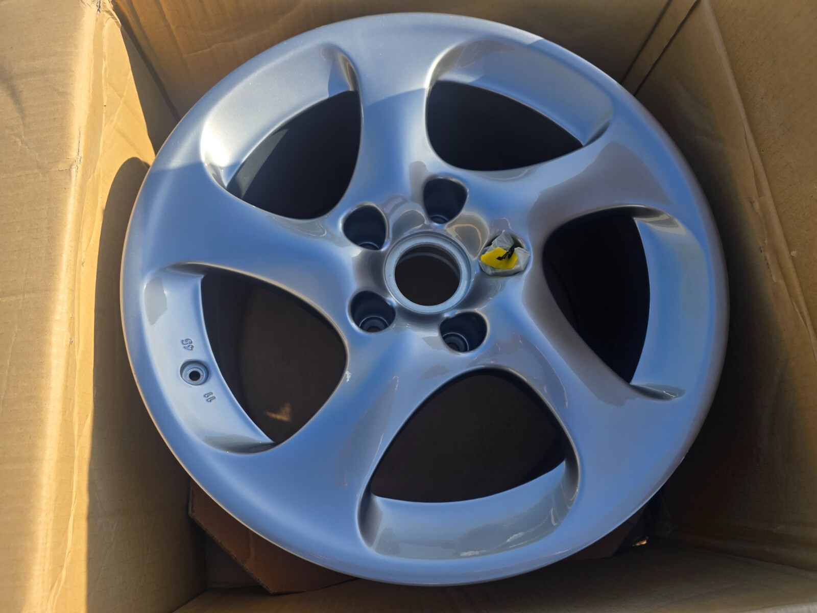 I have a very rare 2005 Turbo S rear rim for sale. This is a brand new rim with the original darker silver finish (ONLY for 2005 turbo S). Wheel comes with the original box. There are a few tiny blemishes from storing over the years (see last pic). The rim is still in the OEM box and never mounted. FYI only the 2005 turbo S had the darker finished hollow spoke wheels so keep that in mind. The other year hollow spokes were a much light silver. 11X18 et 45. Only U.S shipping if outside email first. Valve stem hardware included .