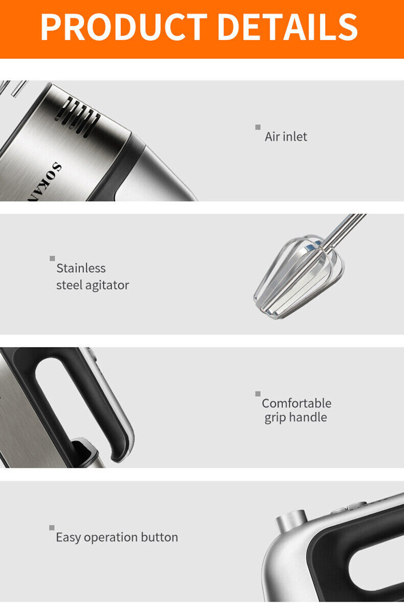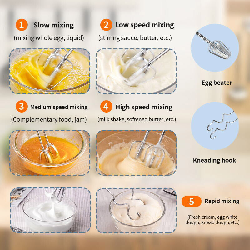 Electric Hand Mixer Kitchen Handheld Mixer 5 Speed Powerful for Baking Cake Eggs