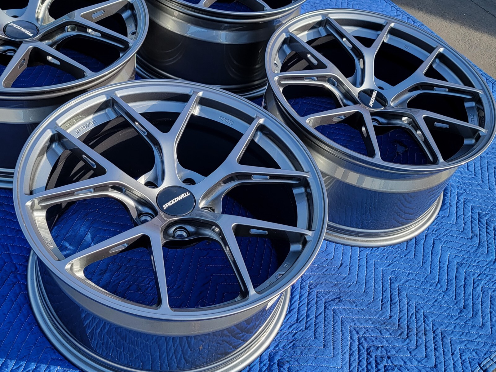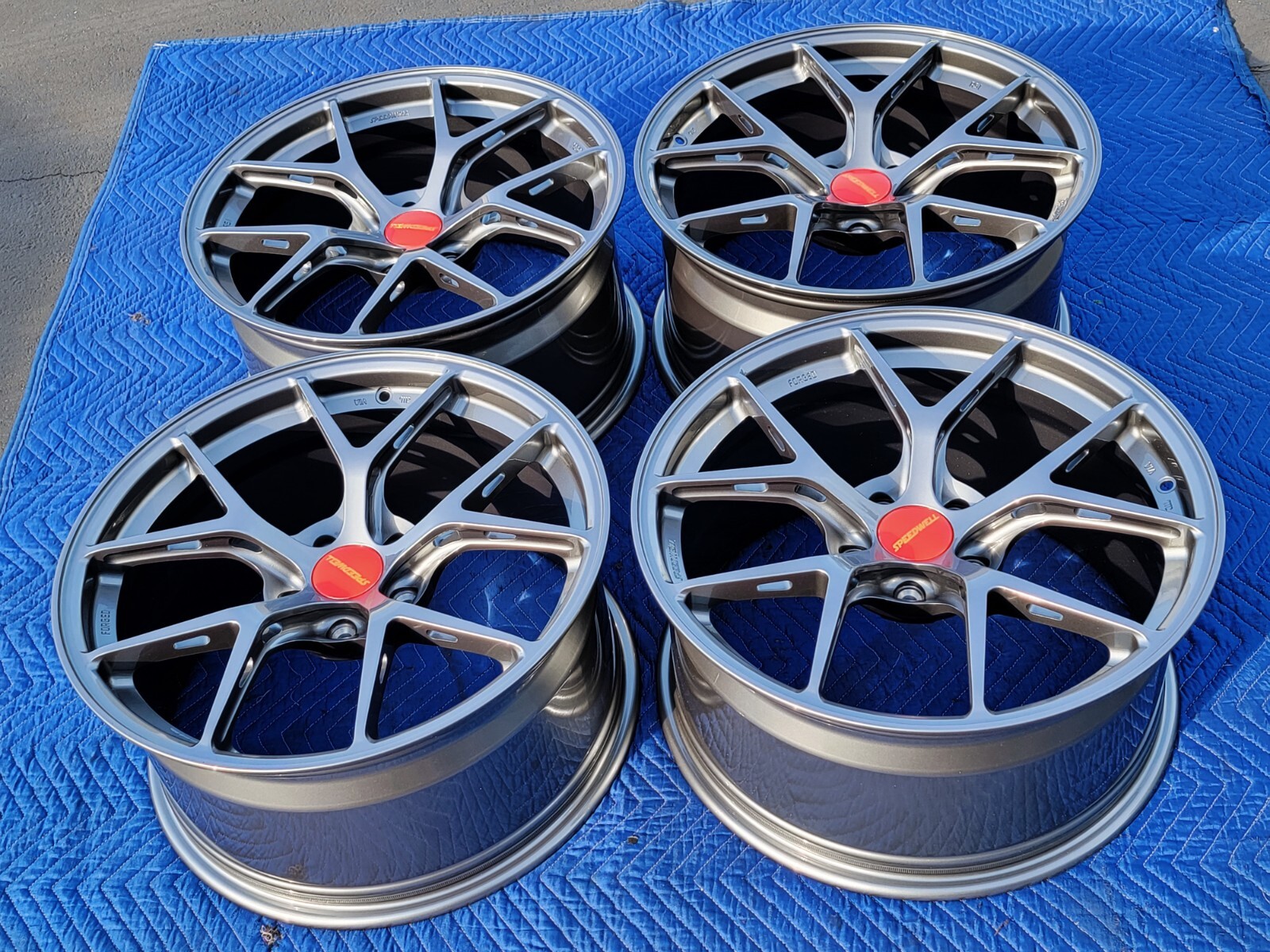 I have a set of lightweight forged aluminum Speedwell Audi TT A3 S3 RS3 rims for sale. The set is new in the box and never mounted (pic on VW is of another set). These weight only 18.6 lbs each and are 8.5x18 front and rear with a 45mm offset. As you can see the wheel quality is very high and the design of the rim is quite nice. You can have either black or red center caps. If utilized on an RS3 you will need 5mm spacers if you have the very large carbon brakes.