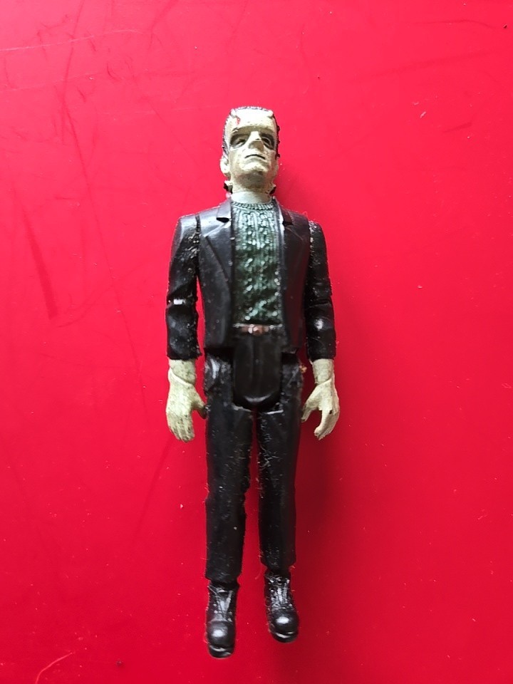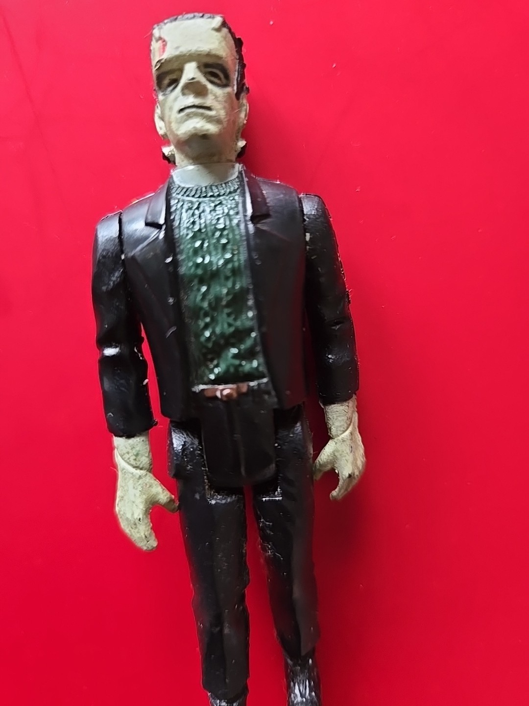 The product is a vintage 1980 Remco Universal Studios Frankenstein Monster 3.75" action figure. This collectible toy represents the iconic character from the Frankenstein theme, manufactured in Hong Kong. With its classic design and nostalgic appeal, this action figure appeals to fans of monsters and vintage toys from the 1980s.