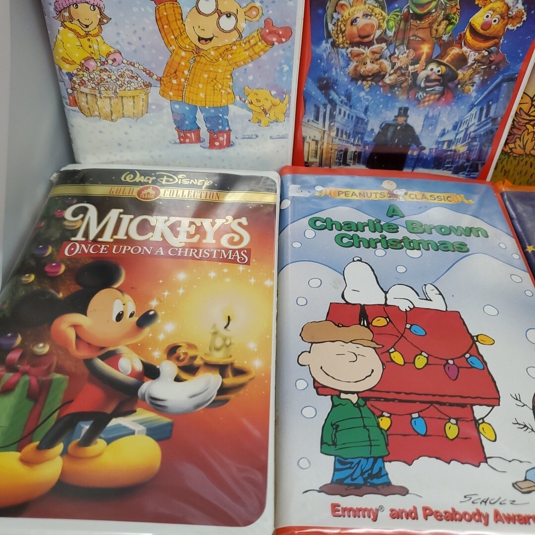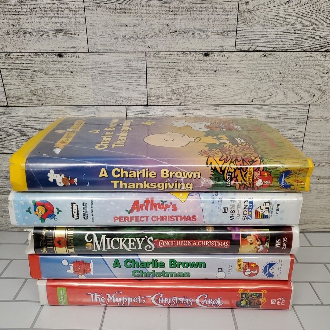 This Charlie Brown Peanuts, mickey Mouse Arthur lot of 6 VHS tapes is perfect for the holiday season! Each tape features classic episodes that are sure to bring back fond memories. The tapes come in clam shell cases and are in great working order.