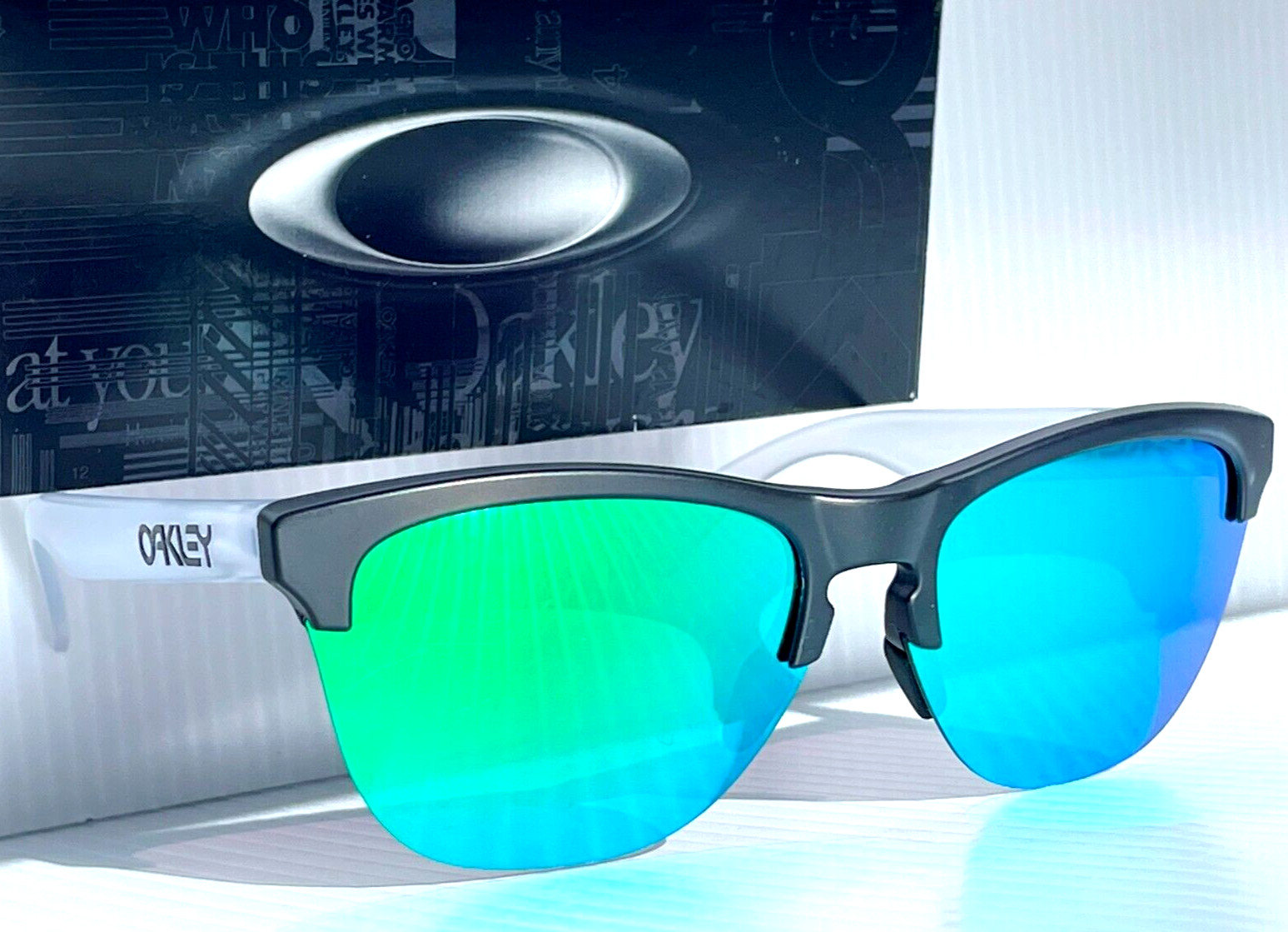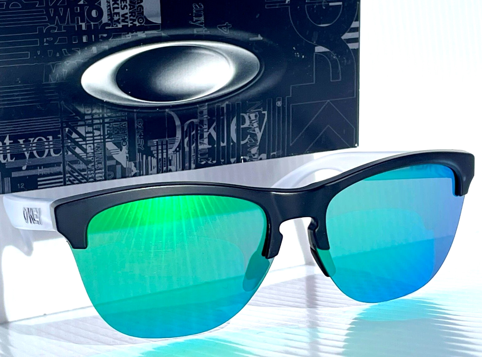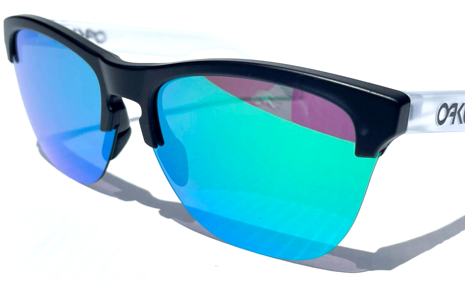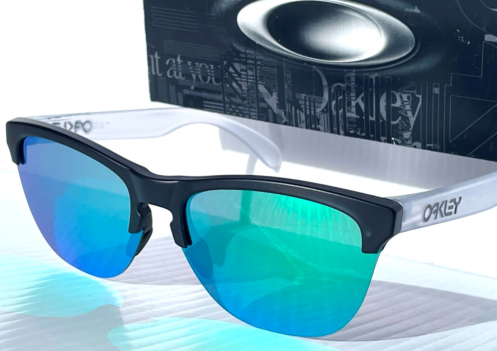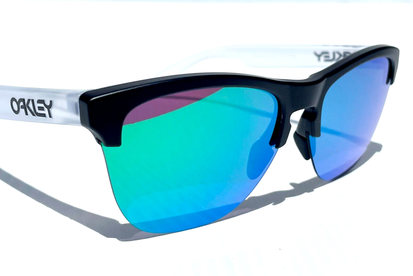 NEW Oakley FROGSKINS LITE in Matte Clear Frame with POLARIZED Galaxy Jade Green Mirror Iridium Lens Sunglasses! Brand NEW and 100% Authentic OAKLEY! Plus Galaxy Polarized Bundle! A Two lens set: 1) Oakley Lens Included 1) Galaxy Polarized Lens Installed Model: oo9374-02 Size: 63-10-138mm Compare at $240.00 Buy them today and $AVE! Included: Oakley Soft microfiber cleaning cloth Bag/case, paperwork in Oakley box!