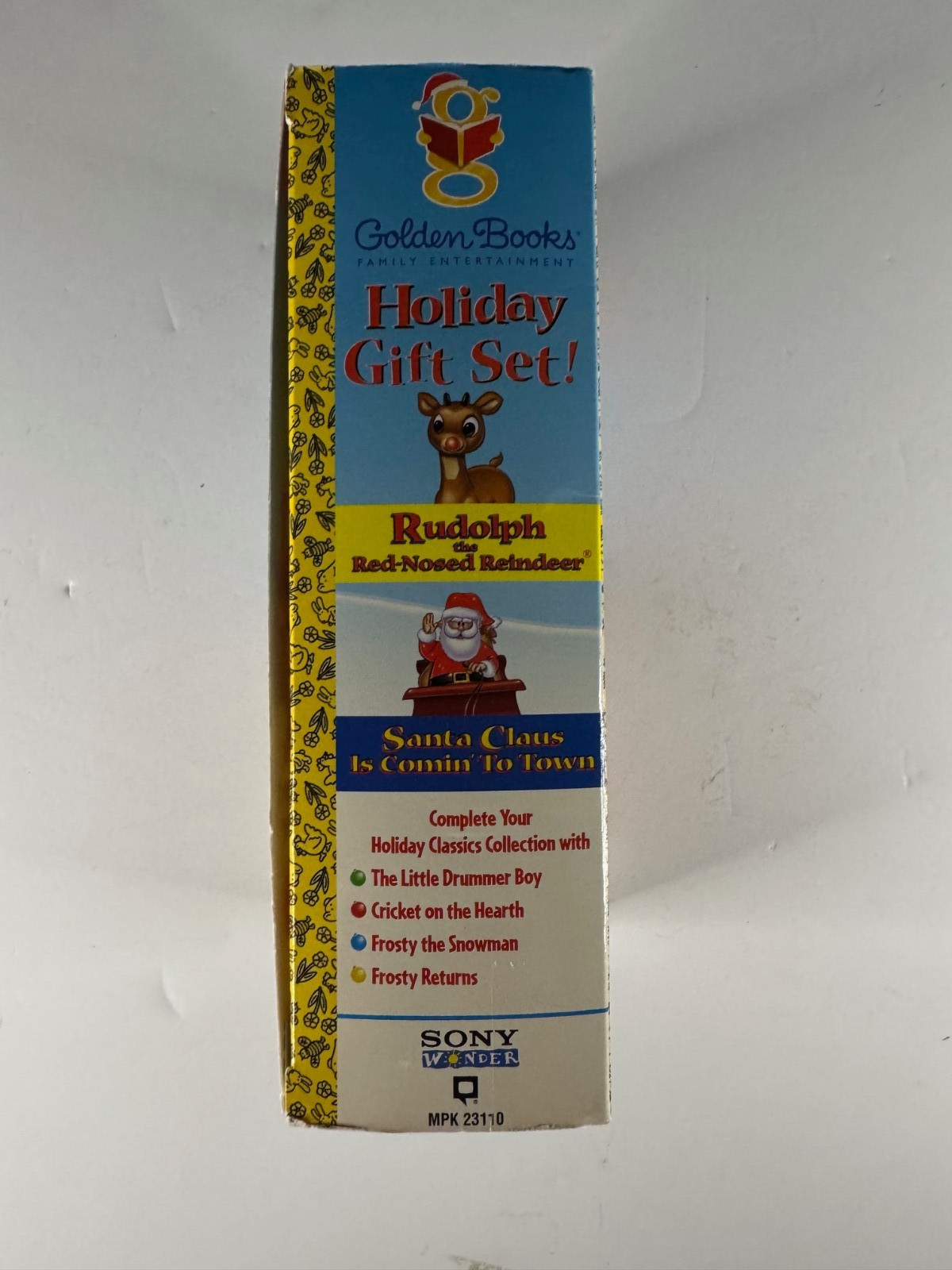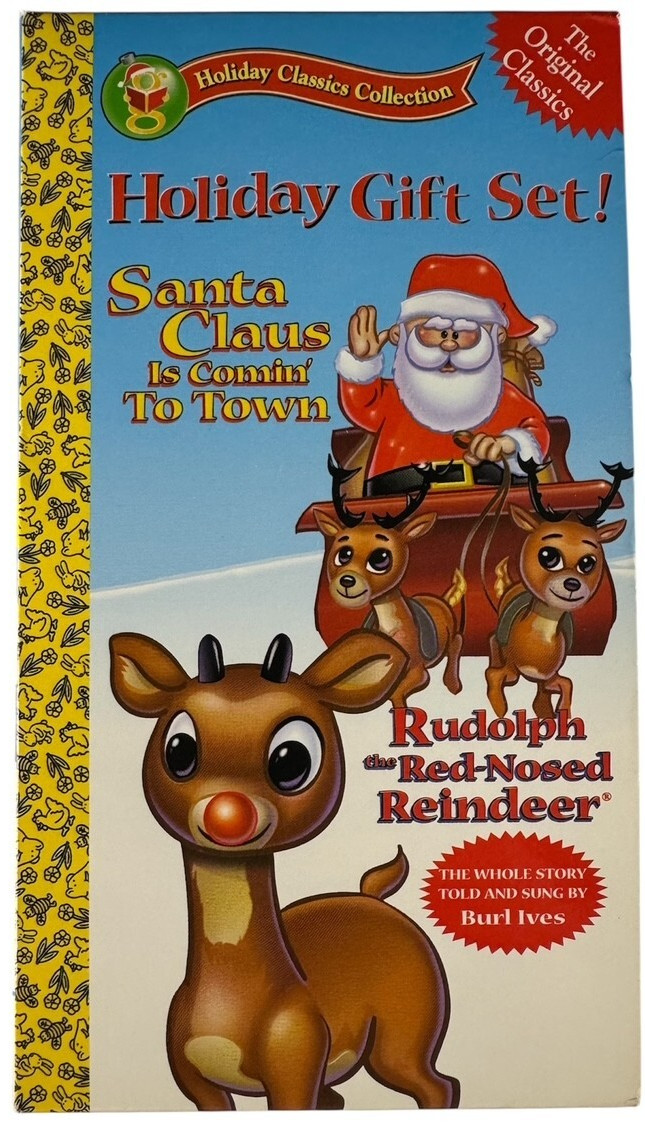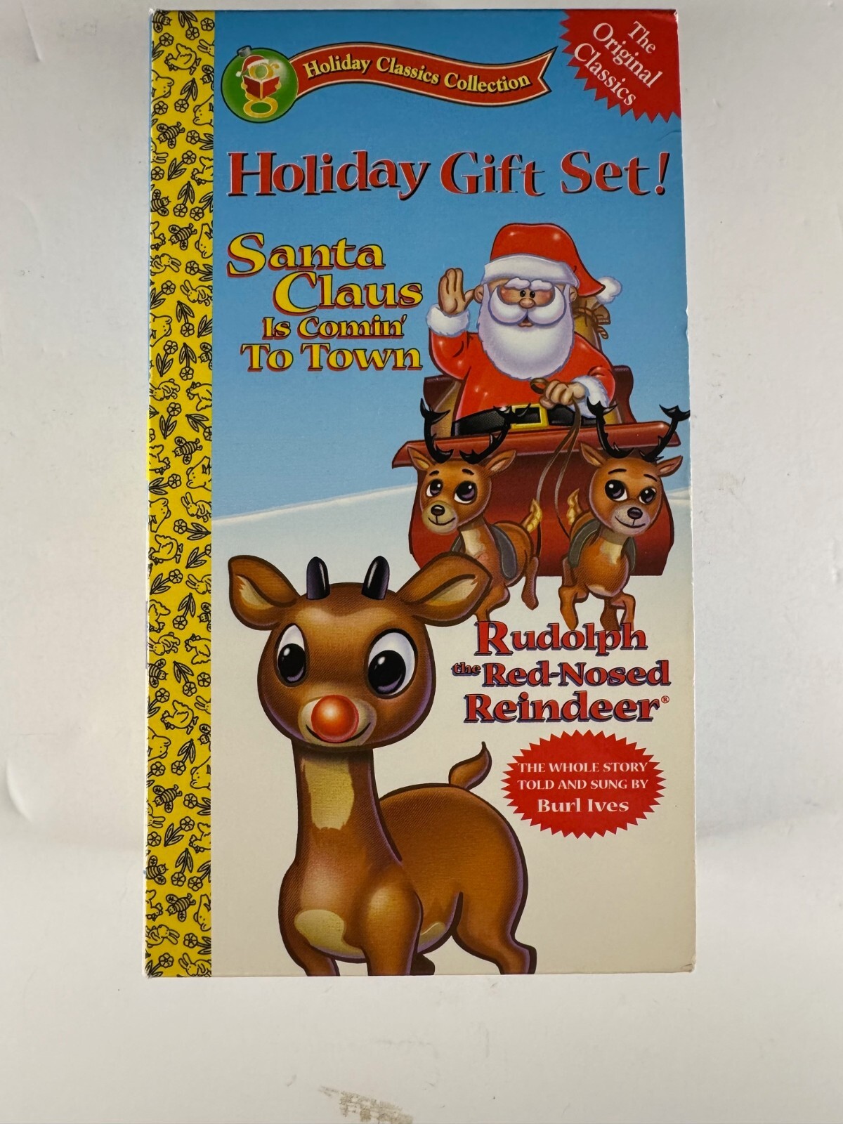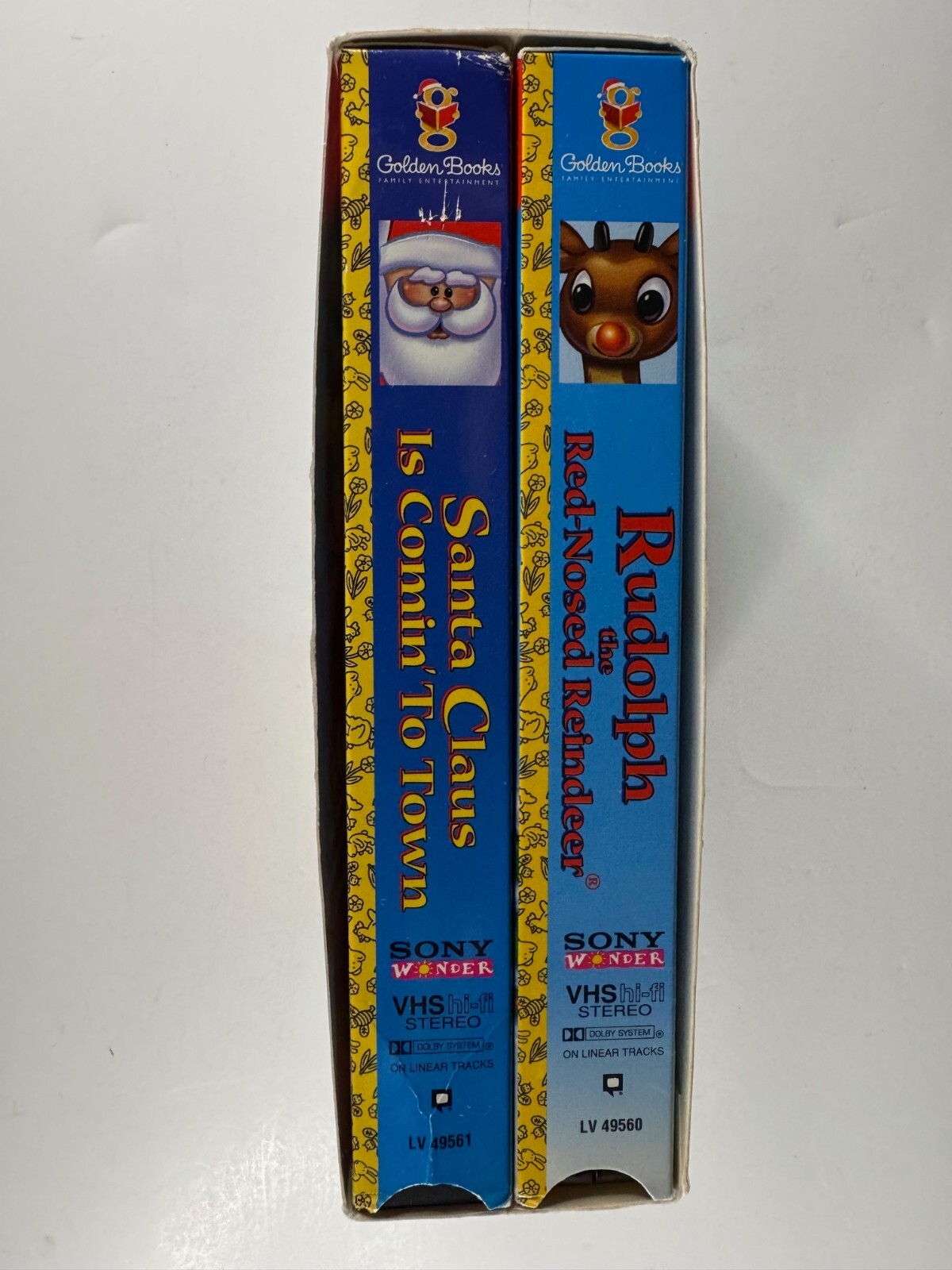 Delve into the holiday spirit with this delightful VHS lot, featuring the beloved classics "Santa Claus is Coming to Town" and "Rudolph the Red-Nosed Reindeer." Golden Books Studio brings these treasured stories to life with the warmth of Burl Ives' narration and the enchantment of animation that captures the hearts of all ages. The set is a timeless addition to any family's festive movie night. This set is a testament to the charm of classic animation and the enduring appeal of heartwarming holiday tales. Enjoy the simplicity of a bygone era with this English-language, G-rated collection, perfect for those who cherish the magic of Christmas. Relive the joy and wonder of these iconic stories with every viewing.