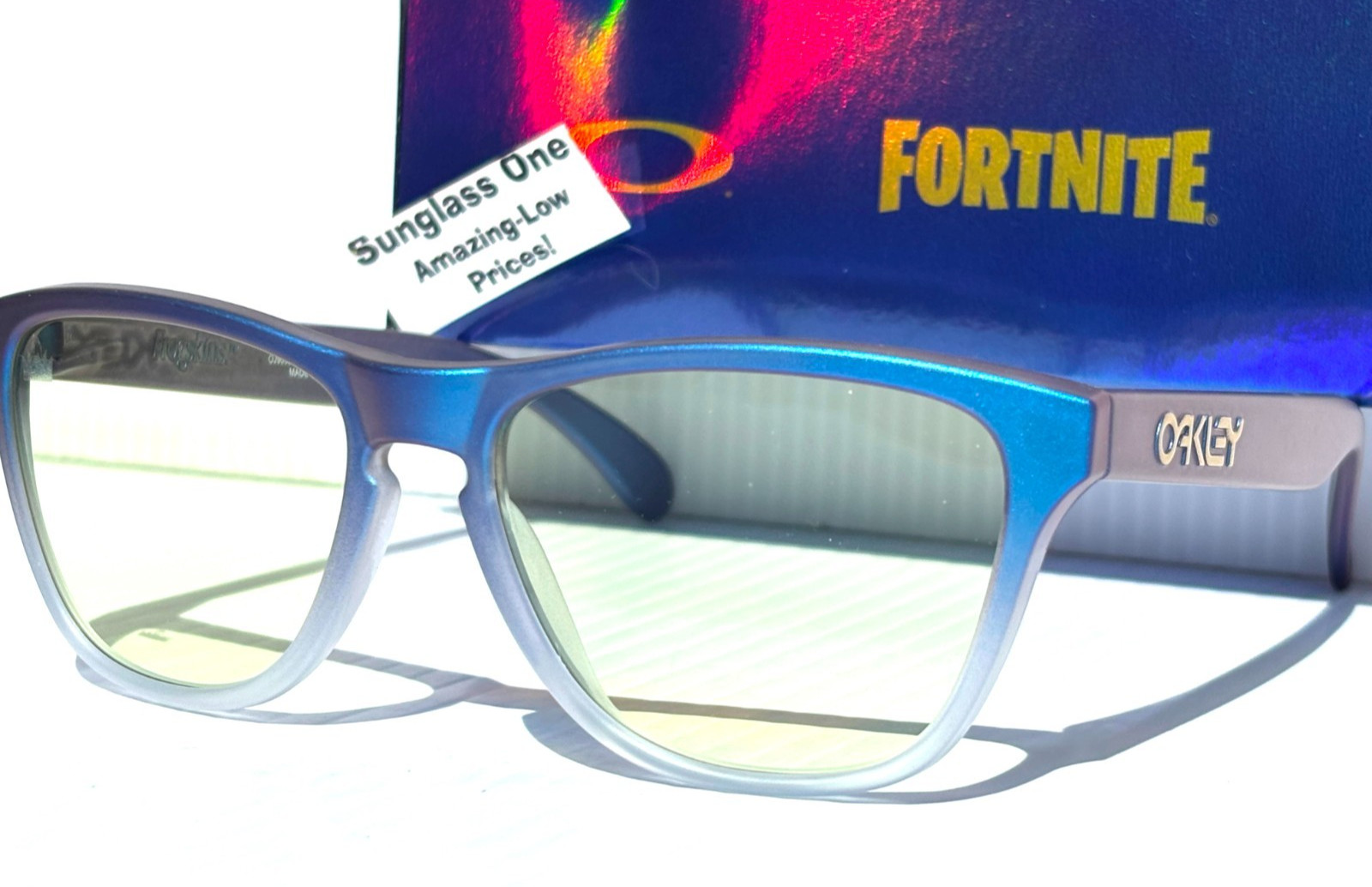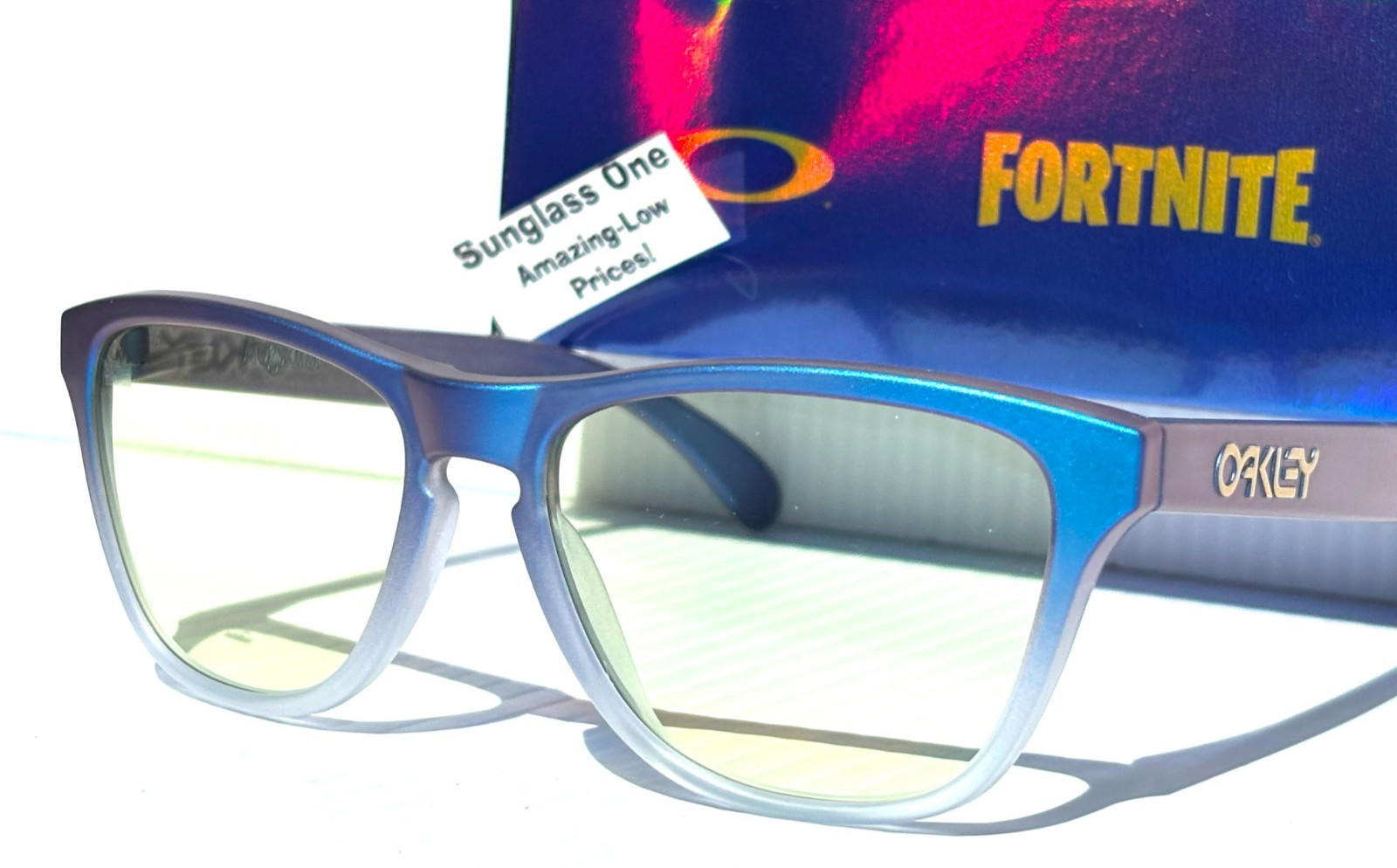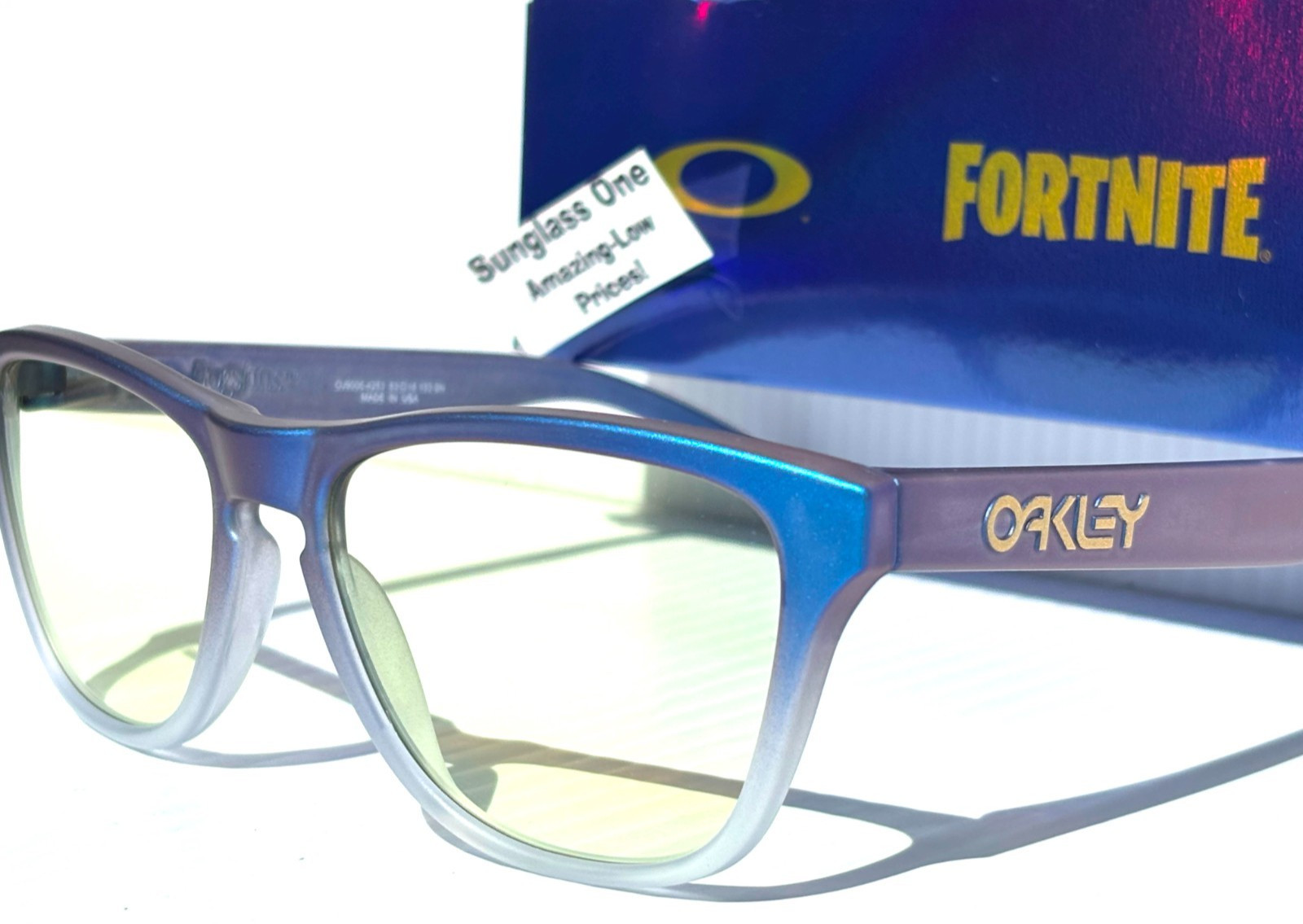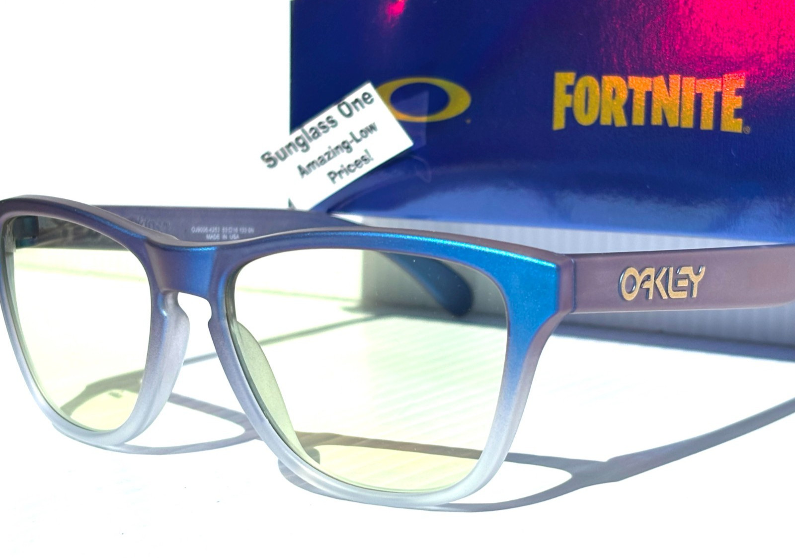 NEW Oakley X Fortnite Frogskins YOUTH in Matte Cyan Blue Clear Shift Fade PRIZM Gaming Clear Yellow Lens Sunglasses! Brand NEW & Authentic Oakley! Model: OJ9006-42 Size: 52-18-140 mm