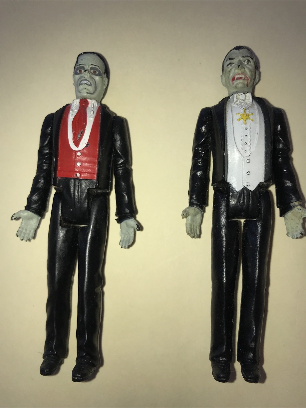DRACULA and PHANTOM 1980 Universal Studios Monster Action Figures by Remco are vintage collectibles from the Dracula franchise. Made of plastic and standing at 3-3/4" tall, these action figures are licensed reproductions from the original series. Ideal for fans of Monsters University and Universal Studios theme parks, these figures capture the iconic characters in detail, making them a sought-after addition to any action figure collection.