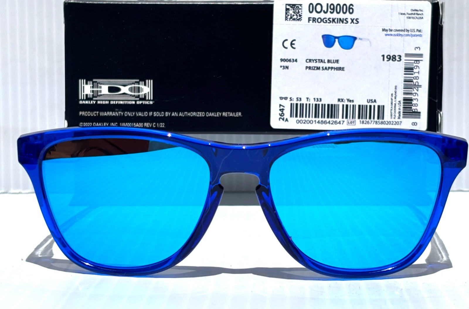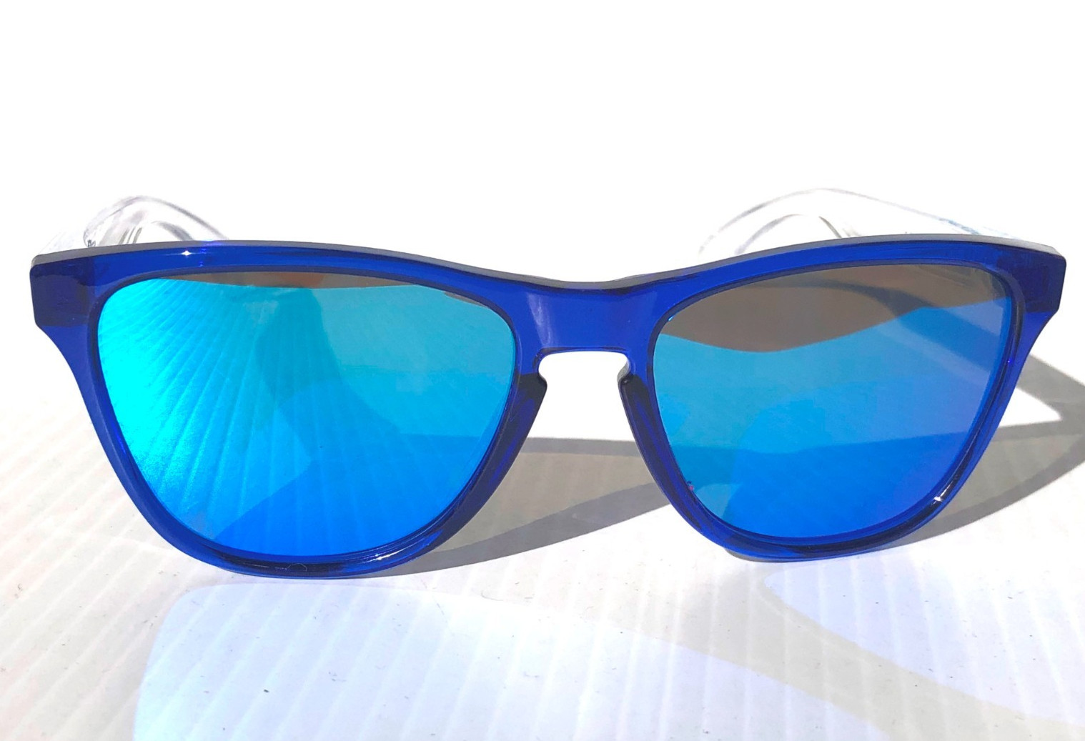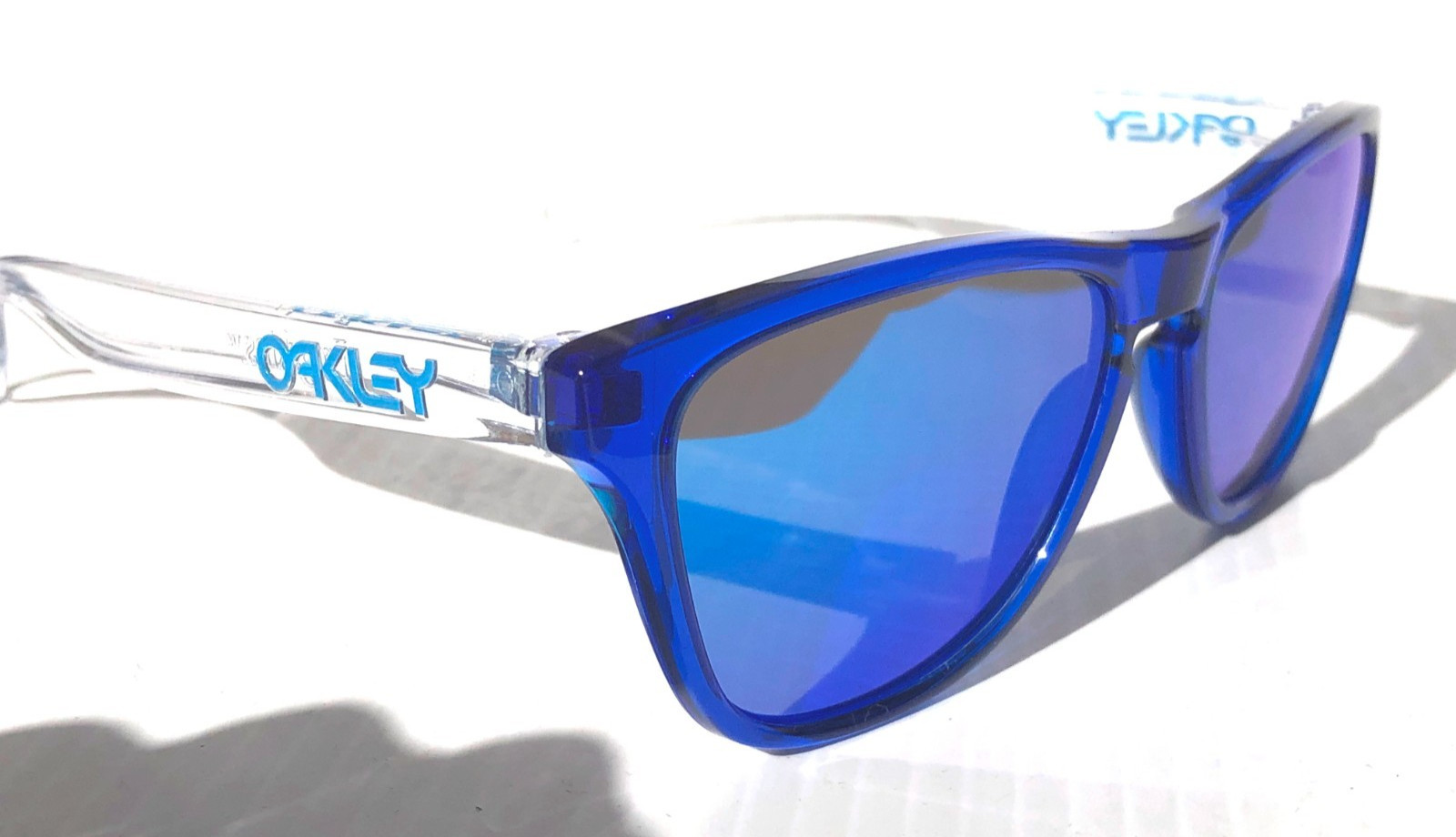 NEW Oakley FROGSKINS XS in Polished Crystal Blue frame with POLARIZED Galaxy Blue Mirror Iridium Lens Sunglasses! Brand NEW and 100% Authentic OAKLEY! Plus Galaxy Polarized Bundle! A Two-lens set: 1) Oakley Lens Included 1) Galaxy Polarized Lens Installed Model: ooJ9006-34 Size: 53-16-133mm