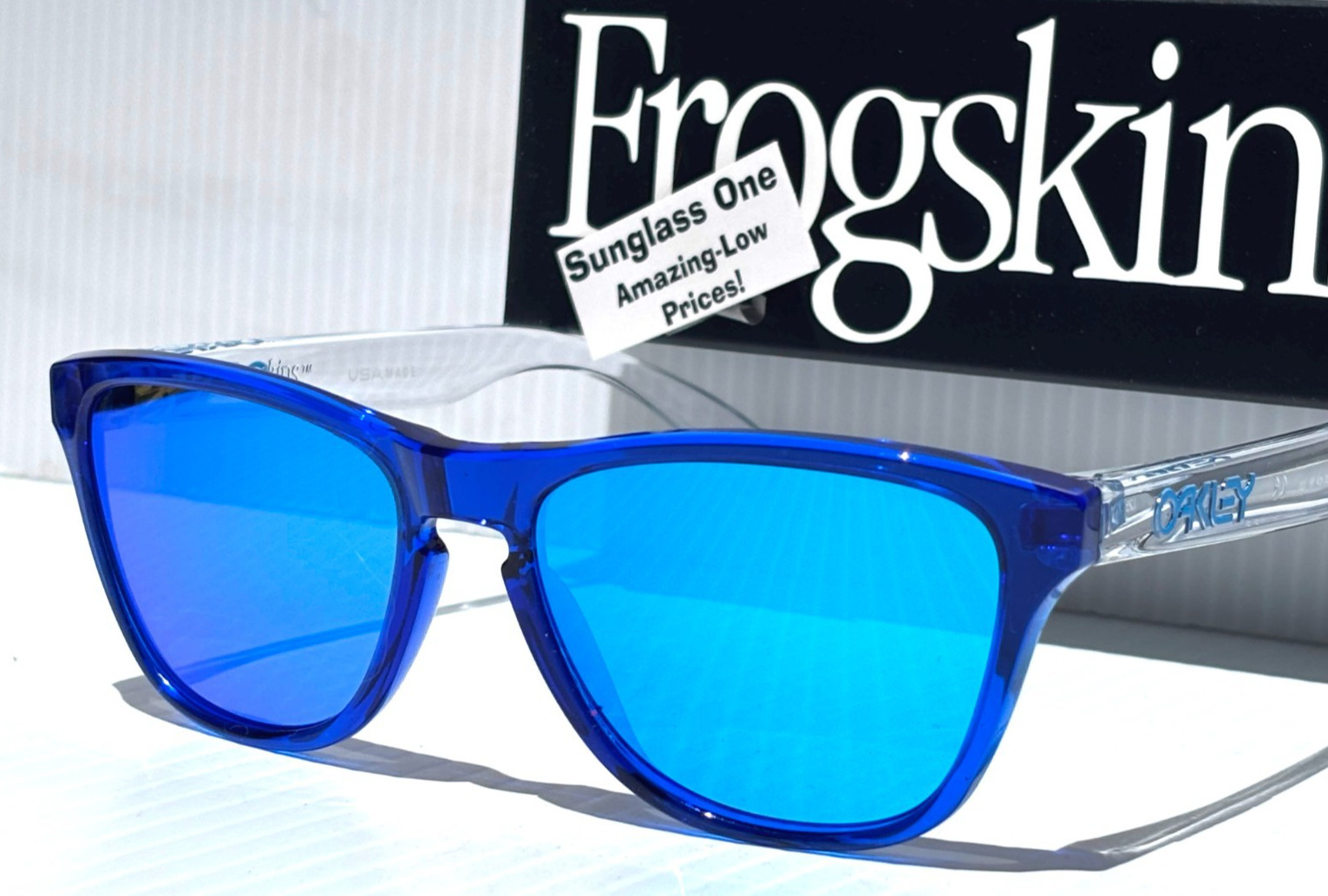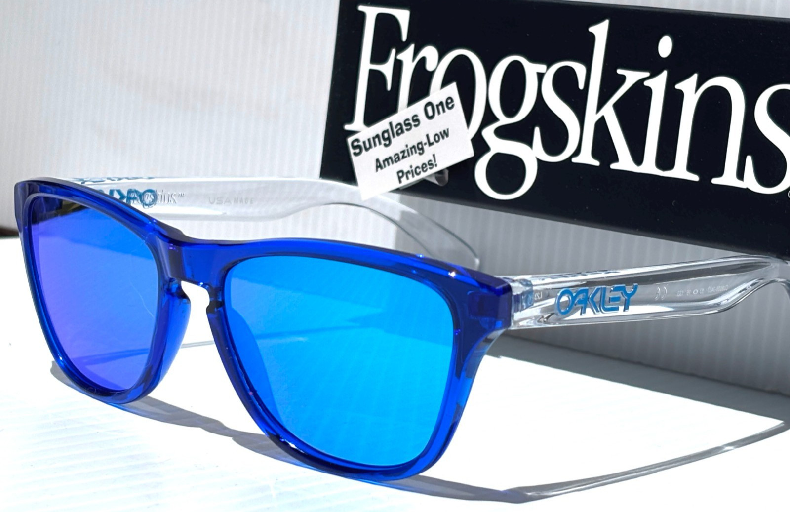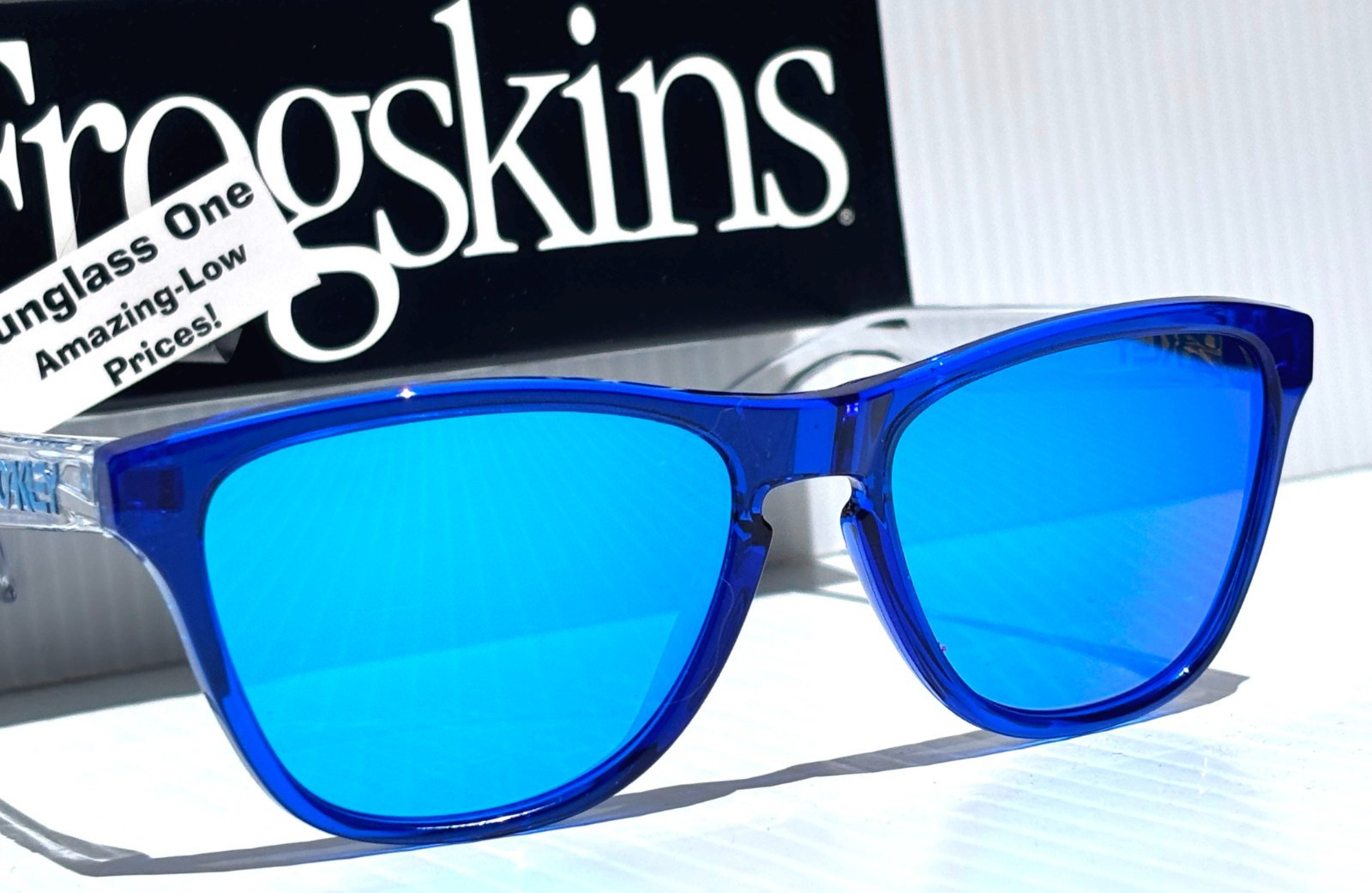 NEW Oakley FROGSKINS XS in Polished Crystal Blue frame with POLARIZED Galaxy Blue Mirror Iridium Lens Sunglasses! Brand NEW and 100% Authentic OAKLEY! Plus Galaxy Polarized Bundle! A Two-lens set: 1) Oakley Lens Included 1) Galaxy Polarized Lens Installed Model: ooJ9006-34 Size: 53-16-133mm
