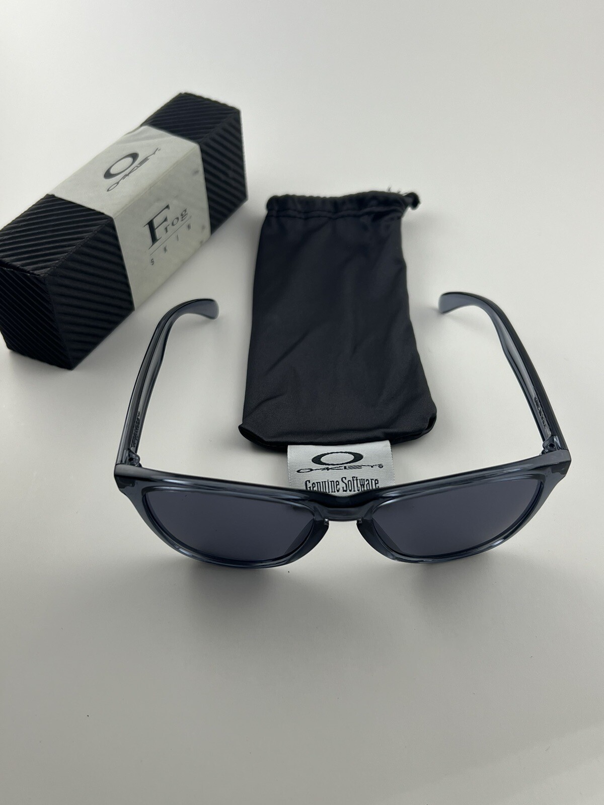 You are purchasing a 100% authentic NEW Oakley Frogskins with Crystal Black frame and Grey lens. Gen 2 circa early 90’s. New, never worn. Rare colorway. Ready to ship. Oakley soft bag, and original box included.