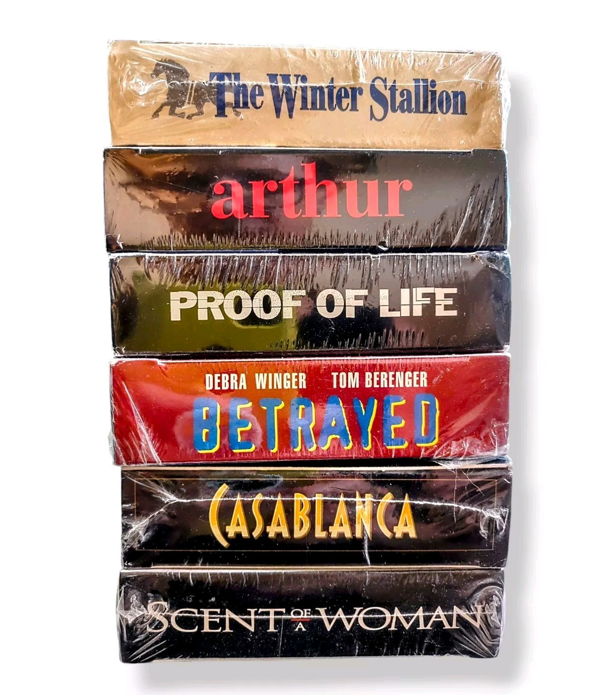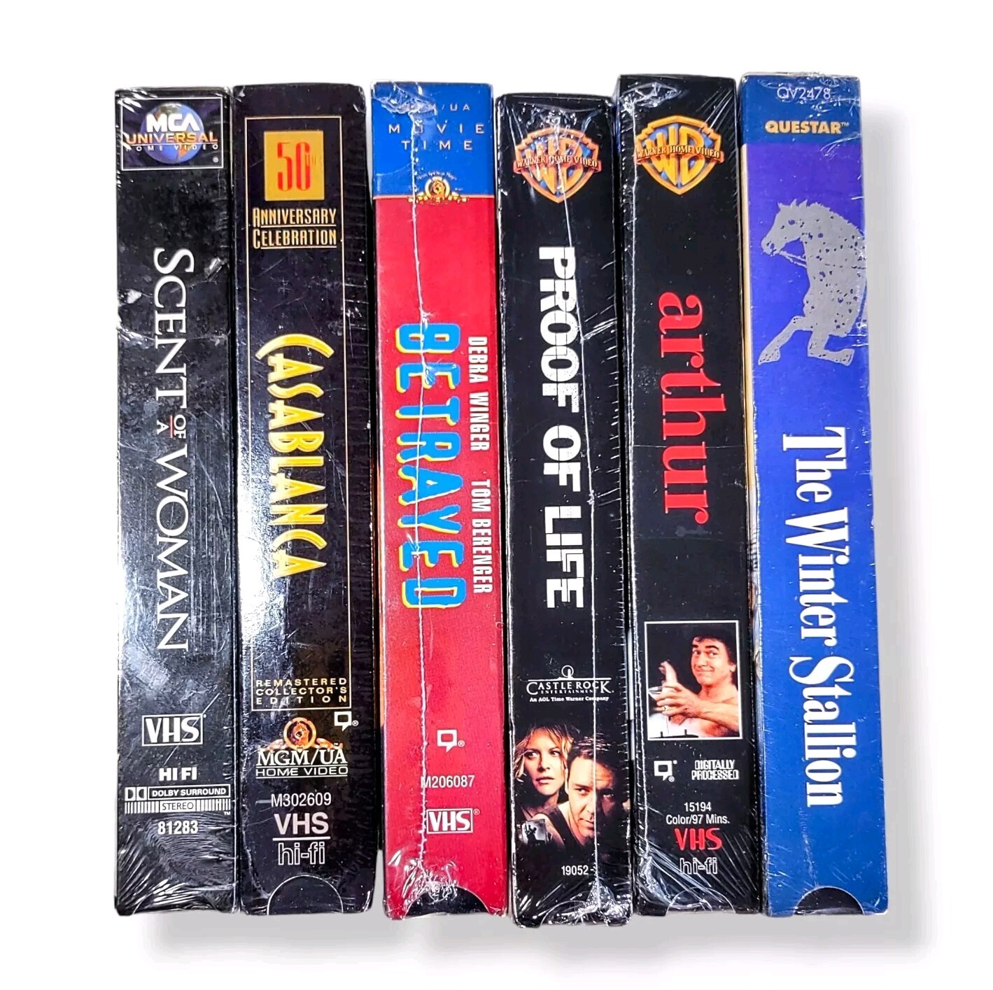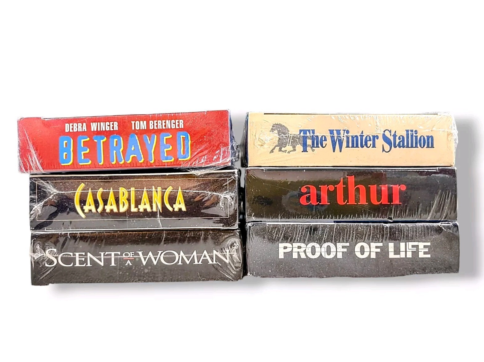This VHS Sealed Movies Lot Vintage 90s 80s Arthur Casablanca Scent Woman Betrayed 6pc is a great addition to any movie collection. Featuring classic titles like Arthur, Casablanca, and Scent of a Woman, movie lovers will enjoy watching films from the Golden Age of Hollywood. This lot also includes Betrayed, The Winter Stallion, and a rare sealed edition of an unknown film.