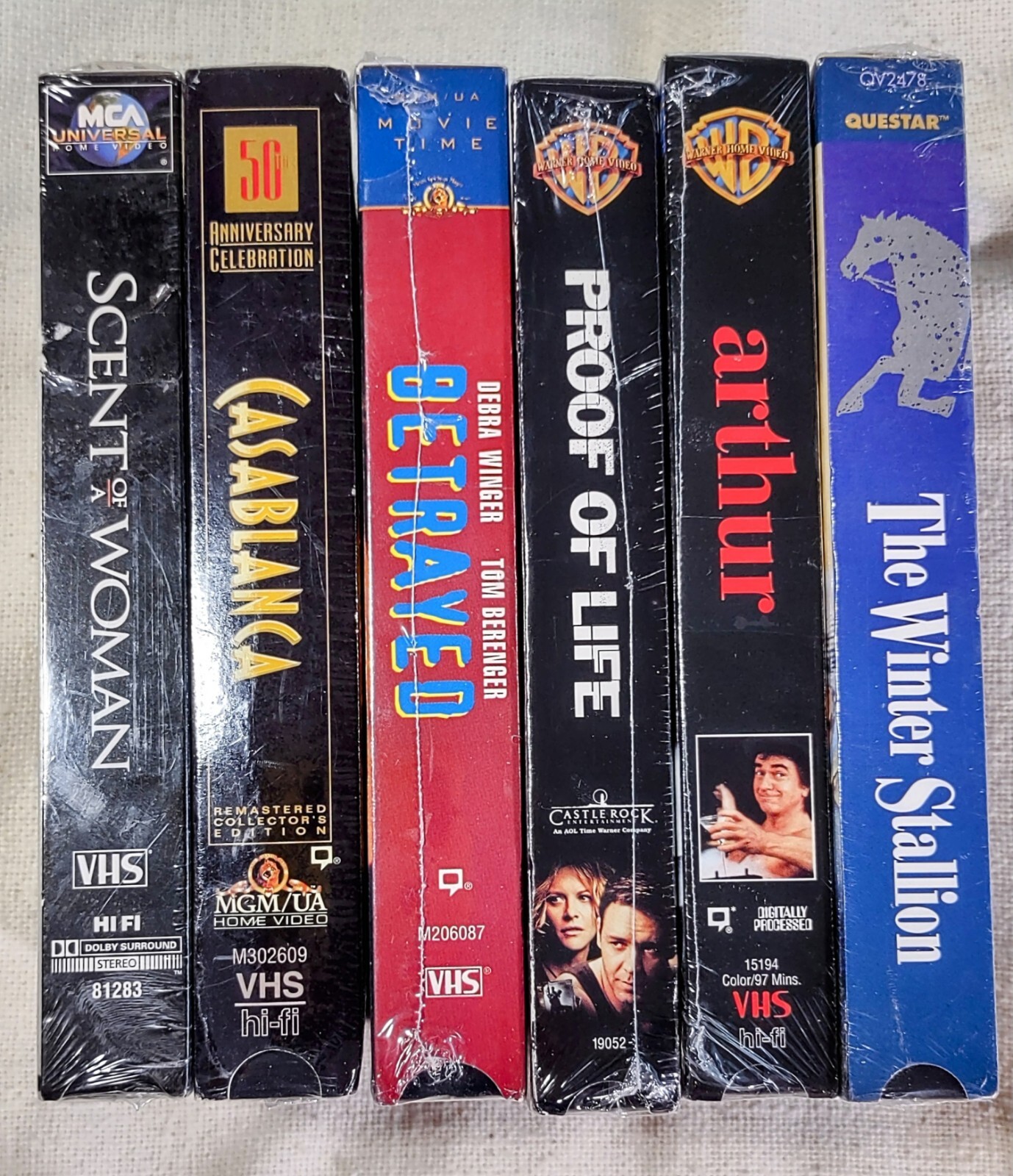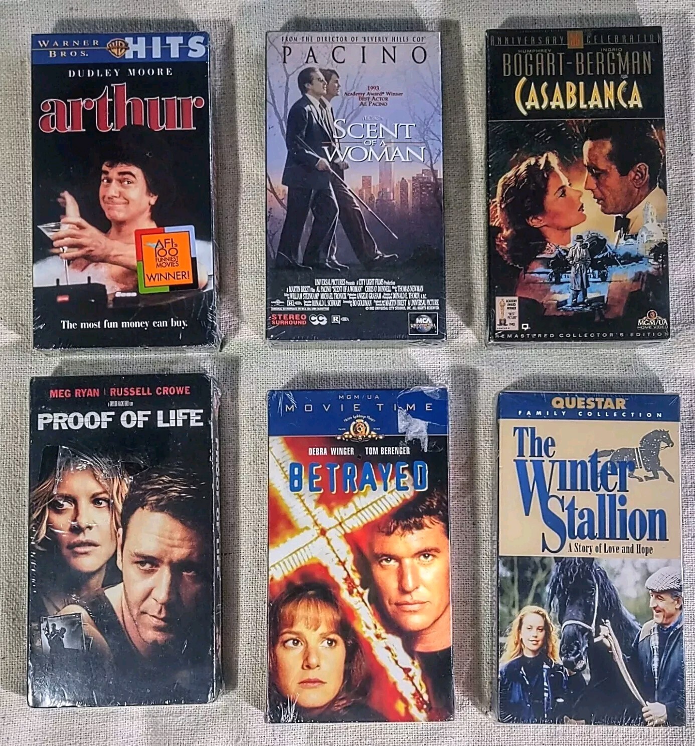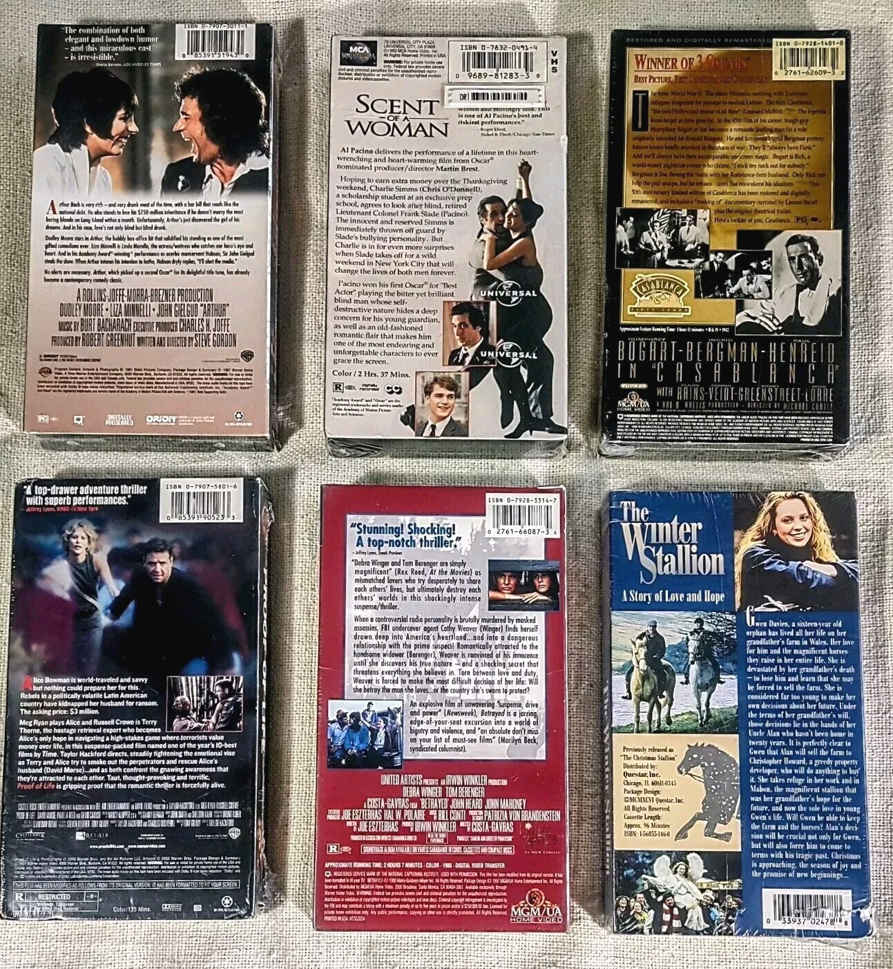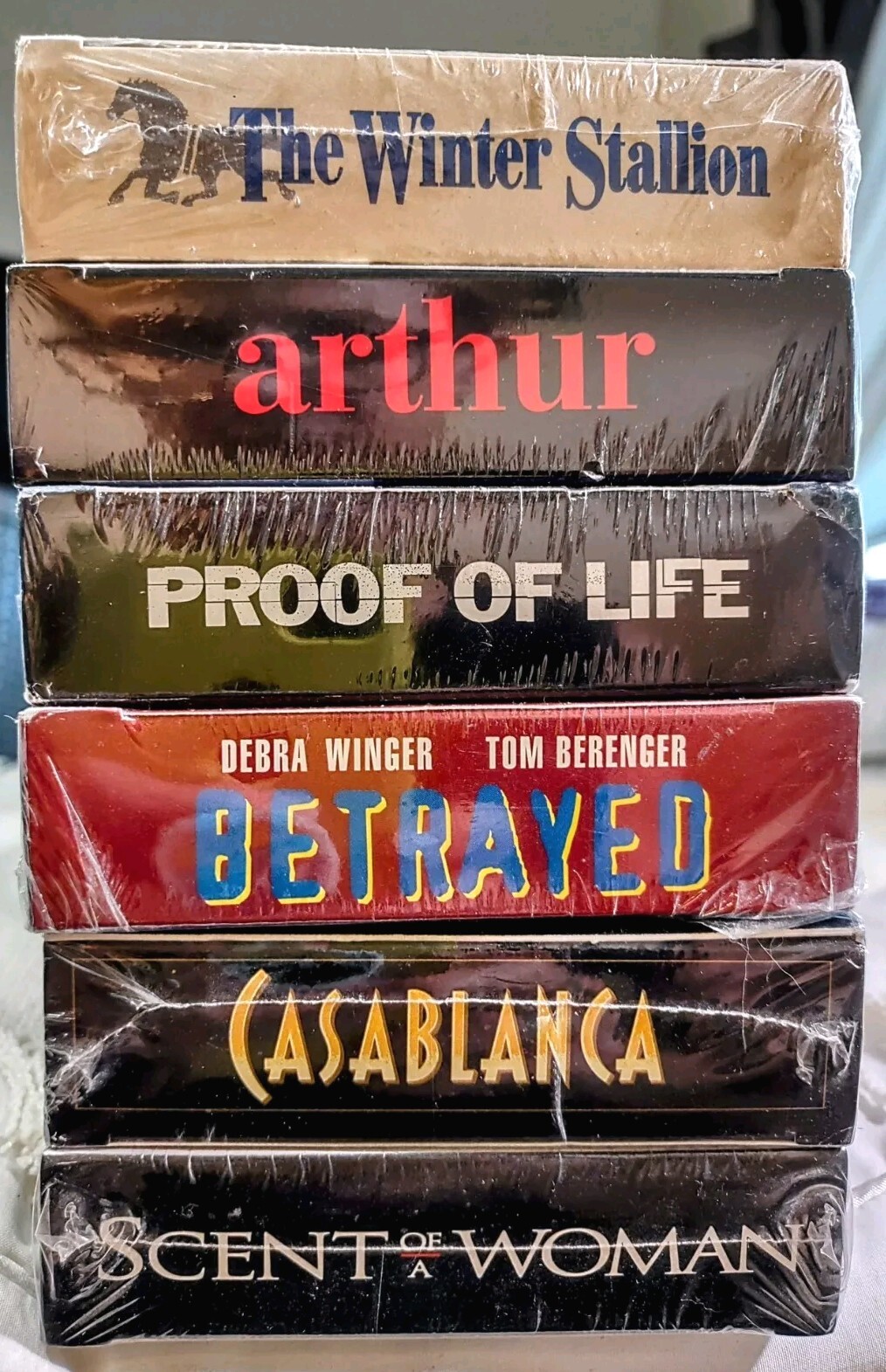 This VHS Sealed Movies Lot Vintage 90s 80s Arthur Casablanca Scent Woman Betrayed 6pc is a great addition to any movie collection. Featuring classic titles like Arthur, Casablanca, and Scent of a Woman, movie lovers will enjoy watching films from the Golden Age of Hollywood. This lot also includes Betrayed, The Winter Stallion, and a rare sealed edition of an unknown film.