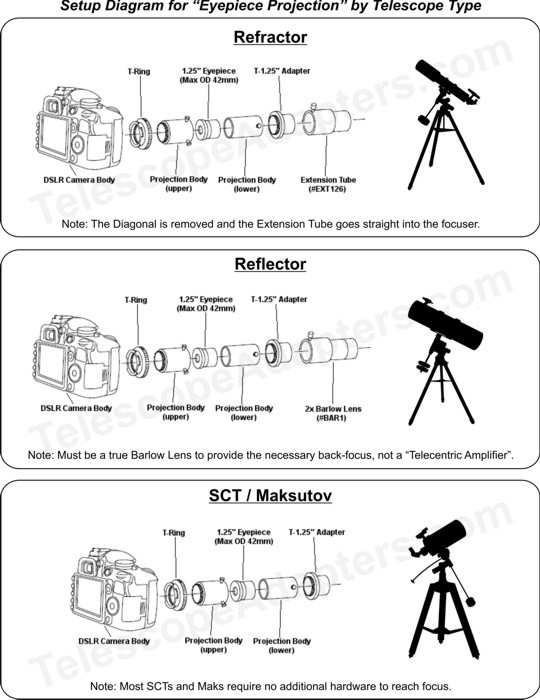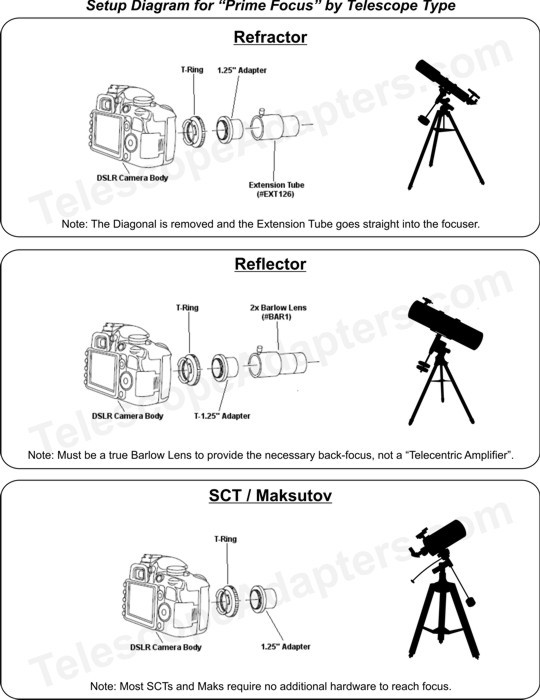 IMPORTANT: Additional parts may be required to reach photographic focus with certain telescope types: