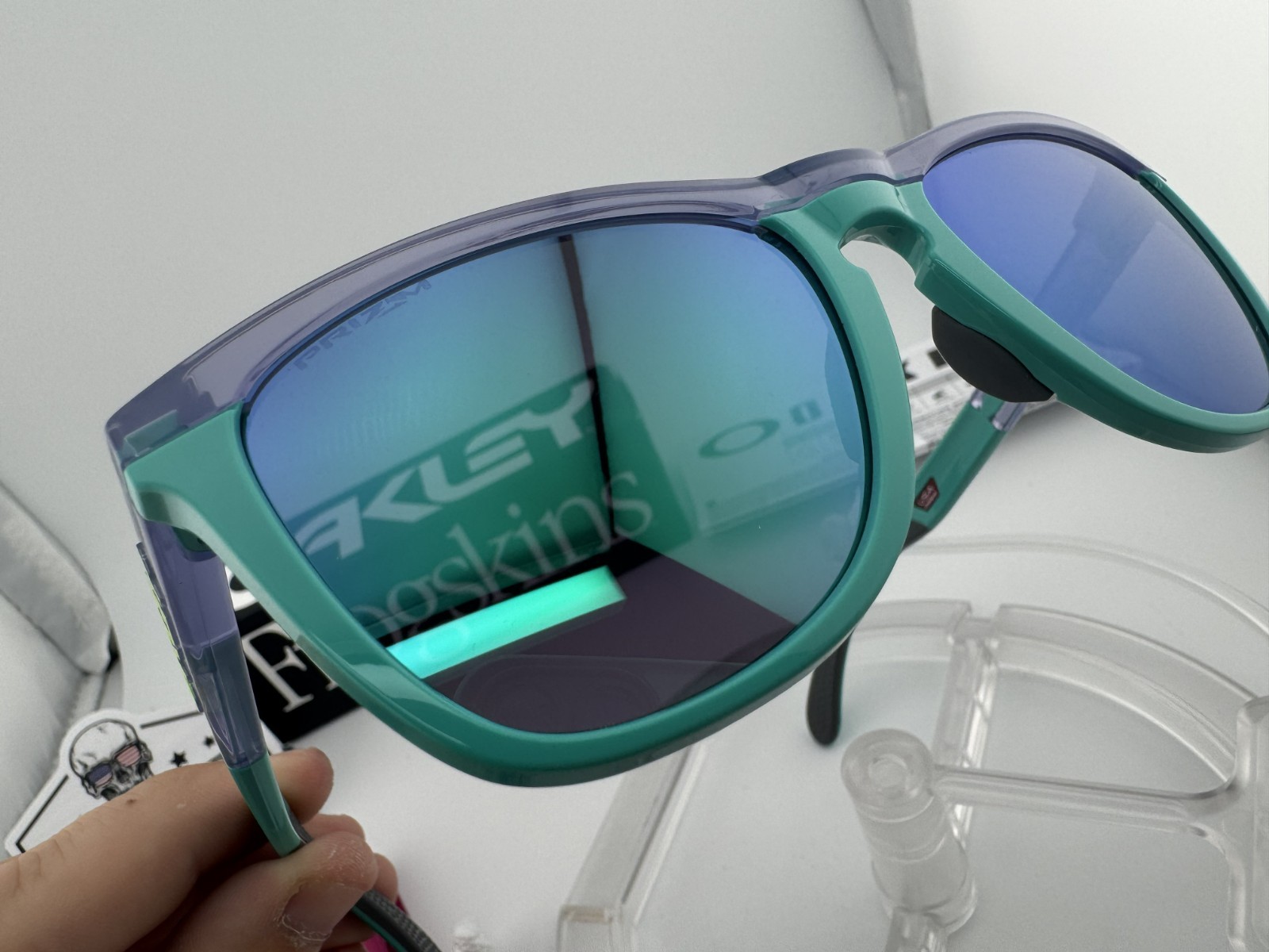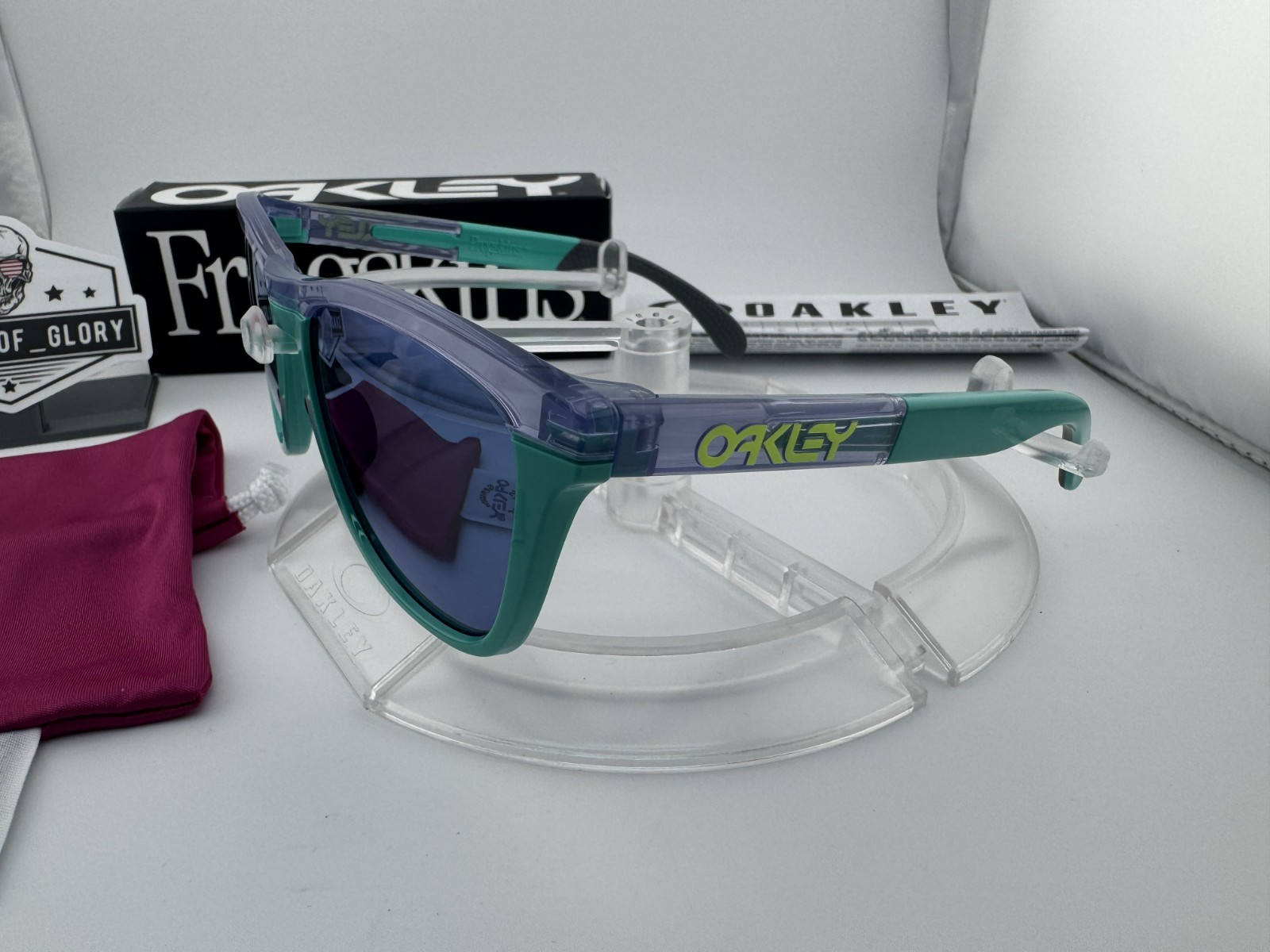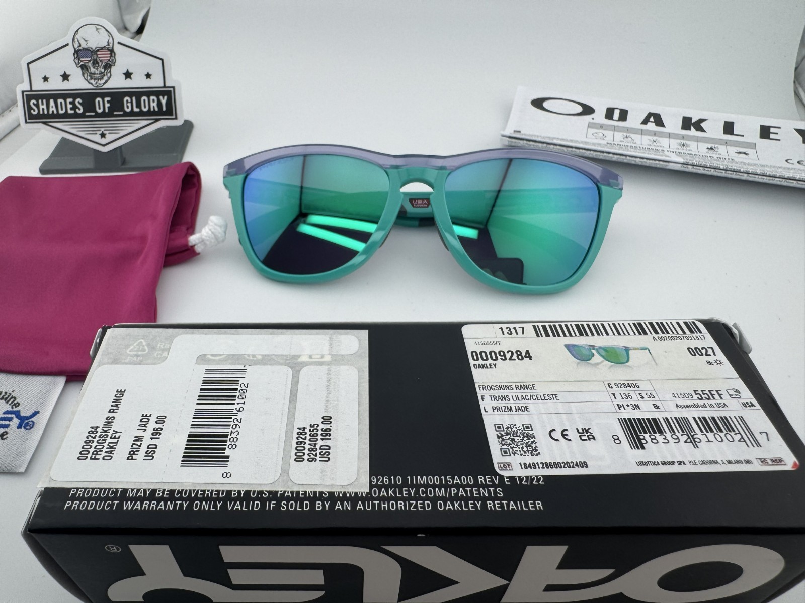 OAKLEY FROGSKINS RANGE TRANS CELESTE LILAC PRIZM JADE GREEN SUNGLASSES OO9284-06