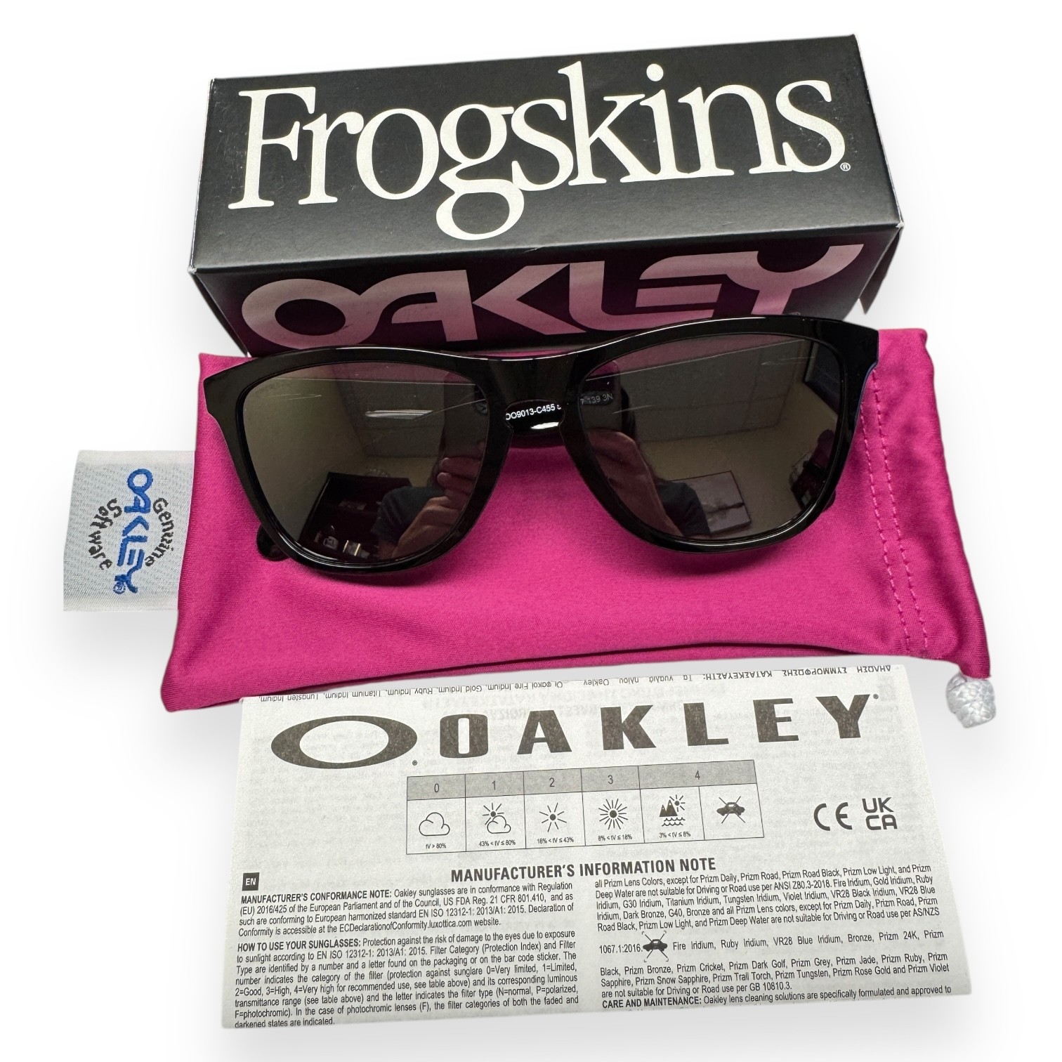 * Oakley box, soft pouch (box may have minor marks or imperfections from storage)
