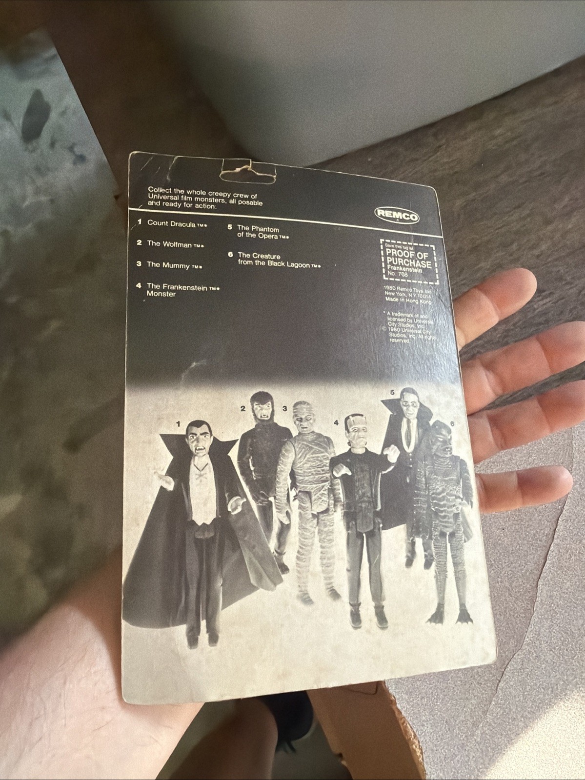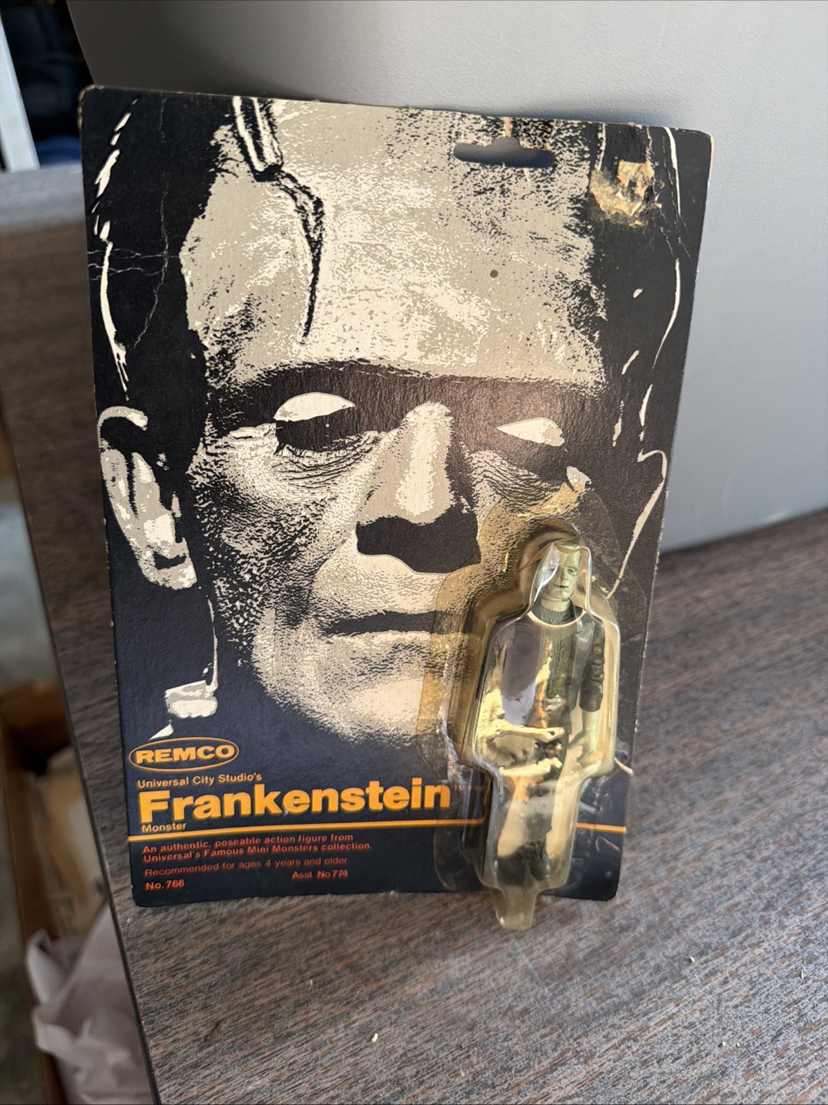 The product is a vintage 1980 Remco Universal Mini Monsters Frankenstein Monster action figure from the Universe series. This collectible toy features the character of Frankenstein from the franchise of Universal Monsters. Despite having a damaged card, this item is sought after by collectors for its nostalgic value and unique design. Perfect for fans of classic action figures and movie icons, this Remco toy captures a piece of pop culture history from the 1980s.