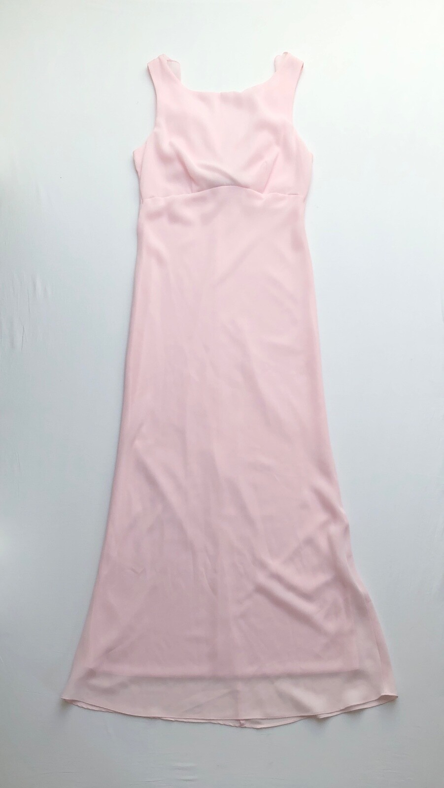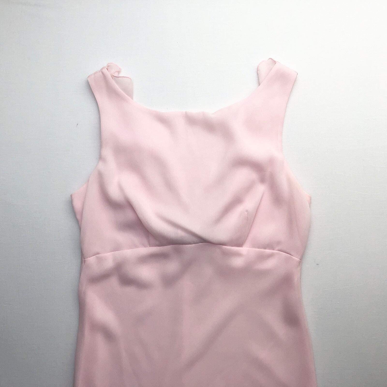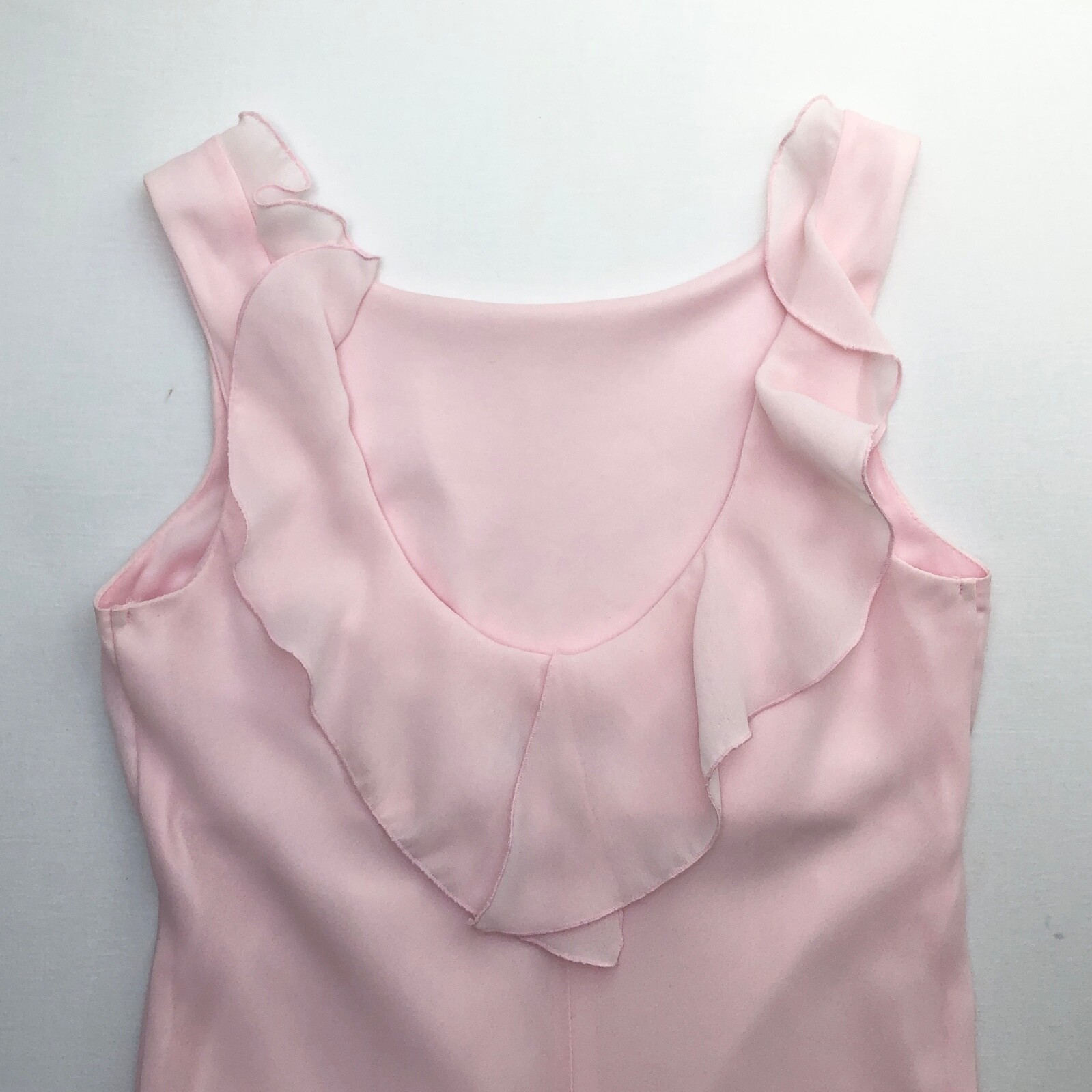 Vintage 90s Early 2000s y2k Baby Pink Chiffon Bias Cut Fairy Ruffle Gown Dress 5