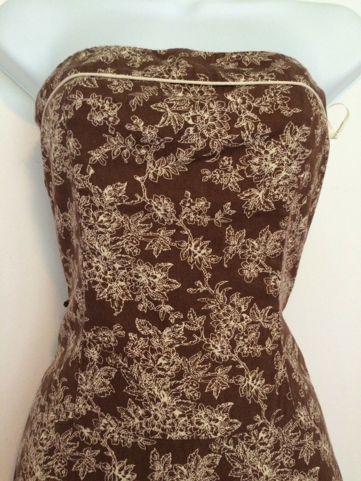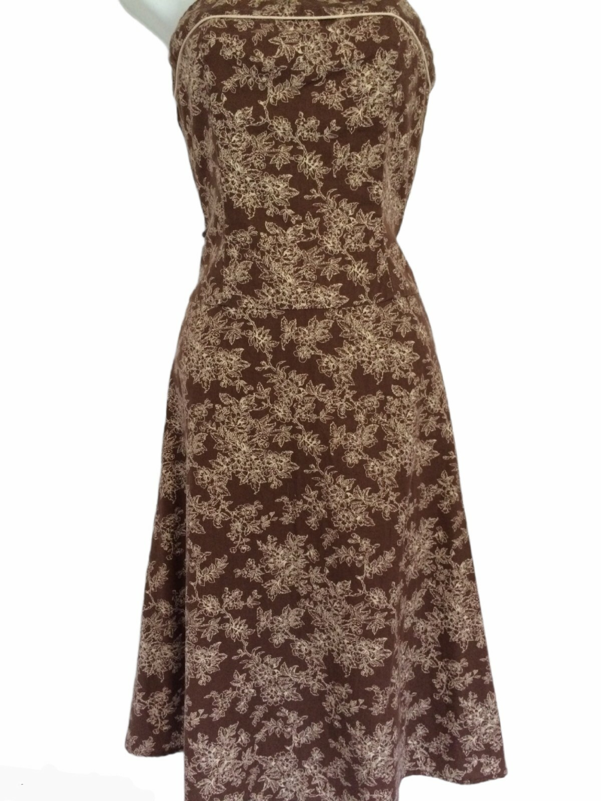 Just Choon Brown and White Print Strapless Stretch Cotton Dress Size 5 *SALE*