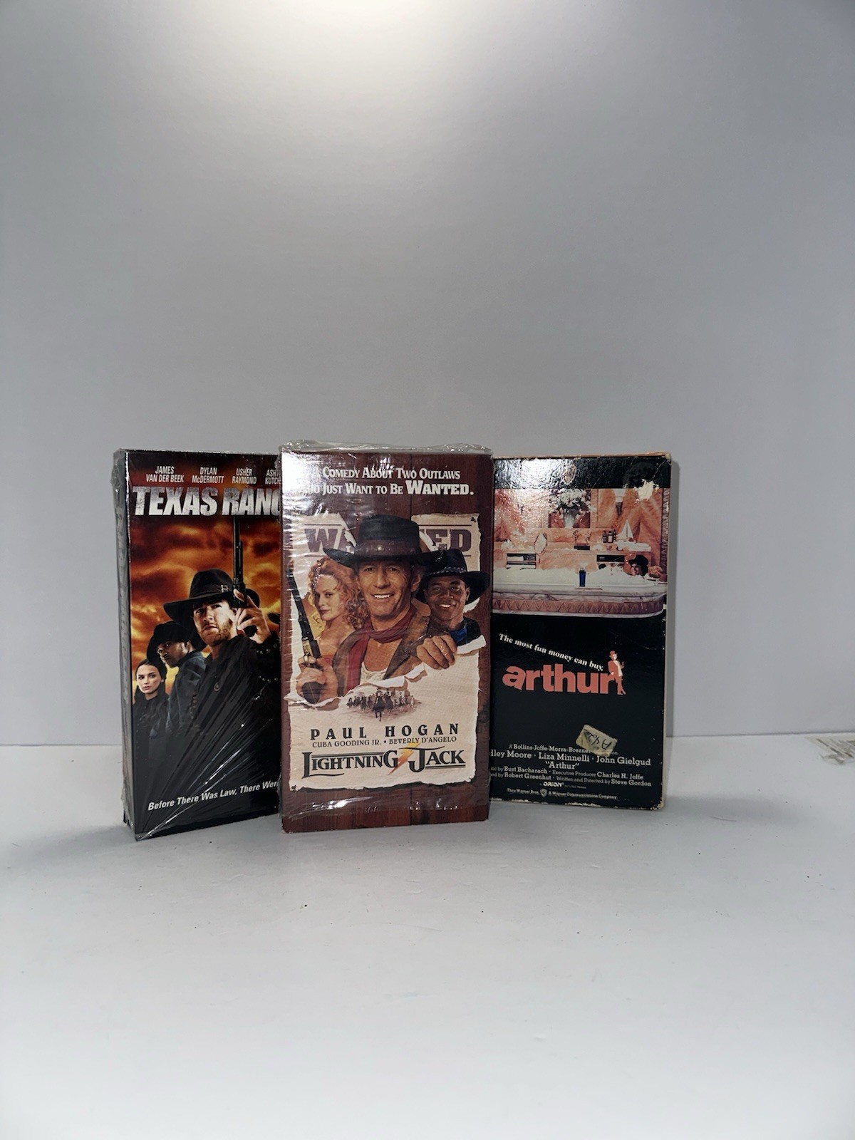 🤠🎭 Lot of 3 VHS Action-Comedy Films – Texas Rangers, Lightning Jack, & Arthur – Western & Classic Comedy Mix