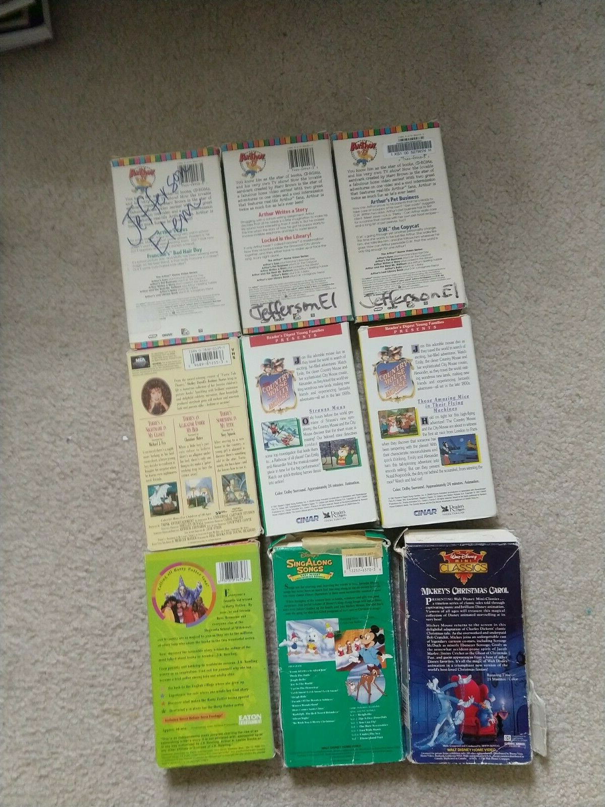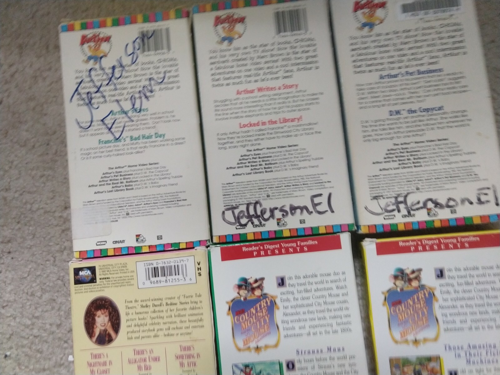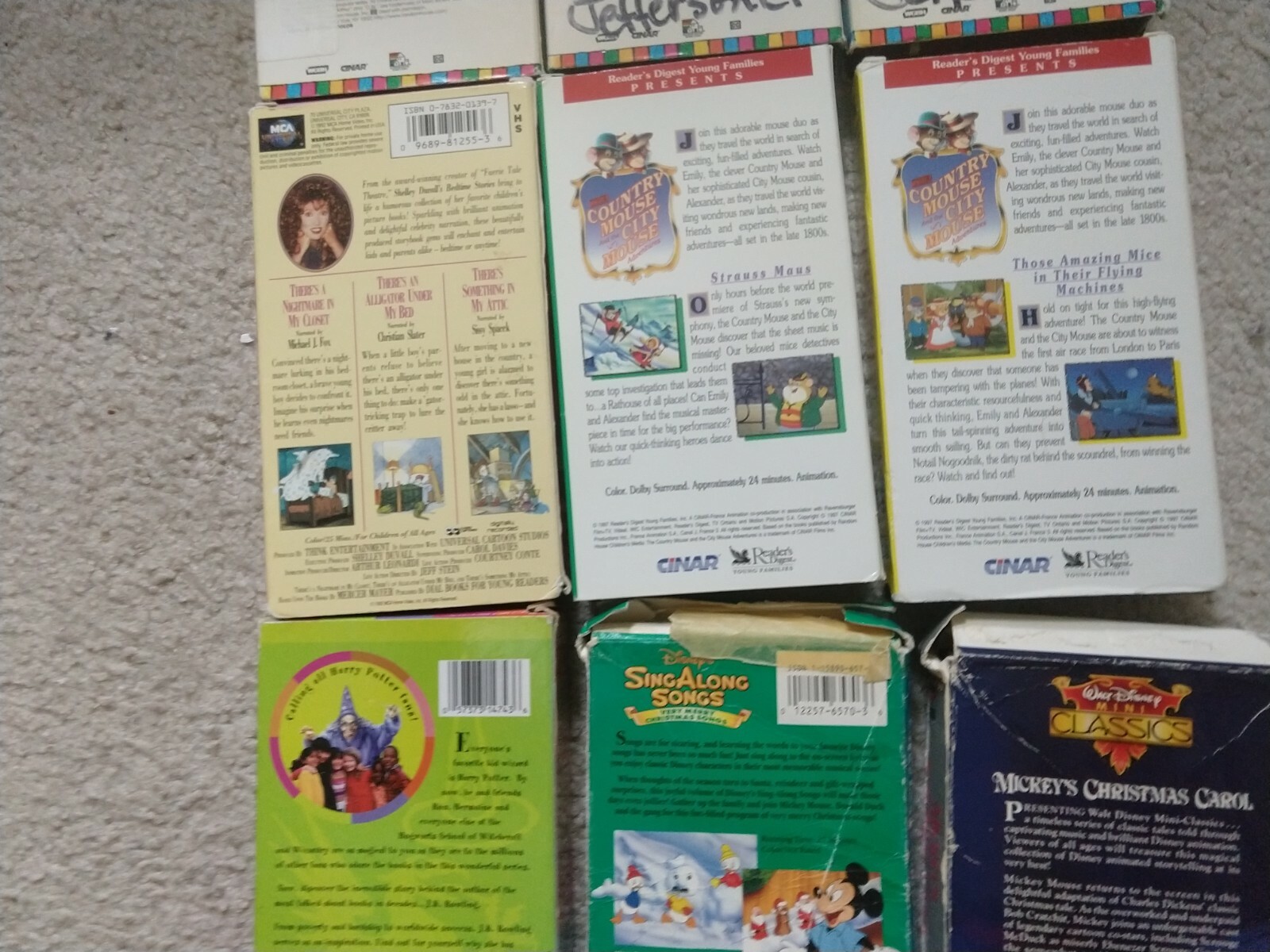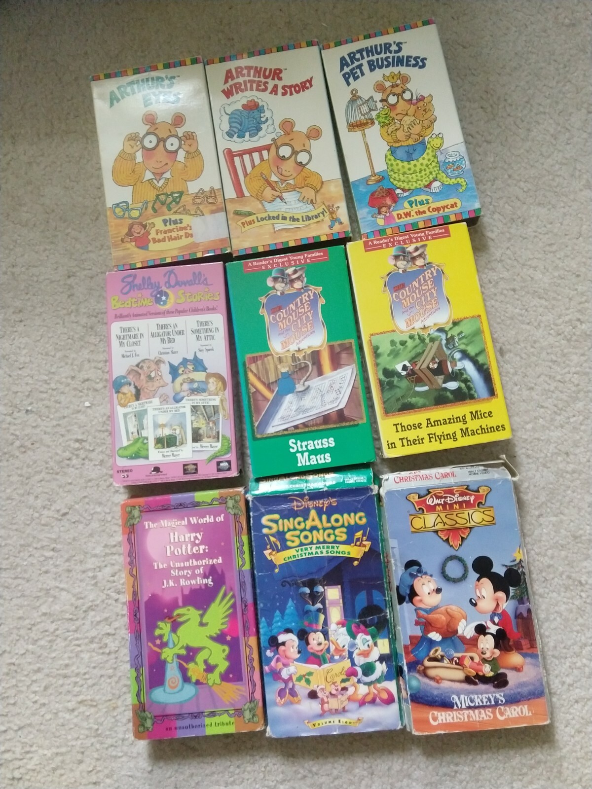 Lot of 9 VHS tapes:  Arthur (3), Disney (2) County Mouse (2), Bedtime Stories (1), H. Potter (1)