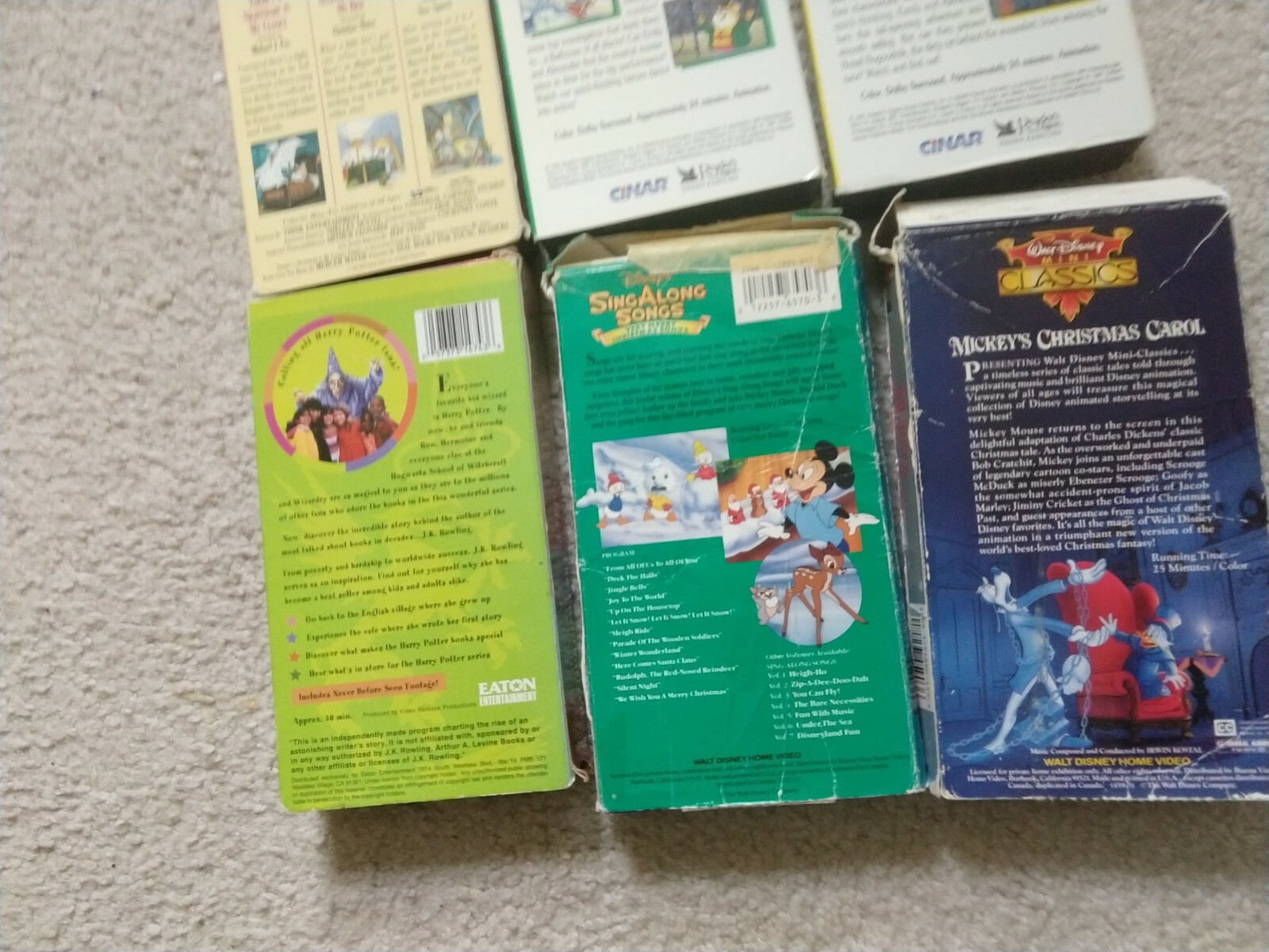 All have original boxes and are in fair-good condition.  Three have writing on back and the Disney boxes are in fair condition.  See pics.