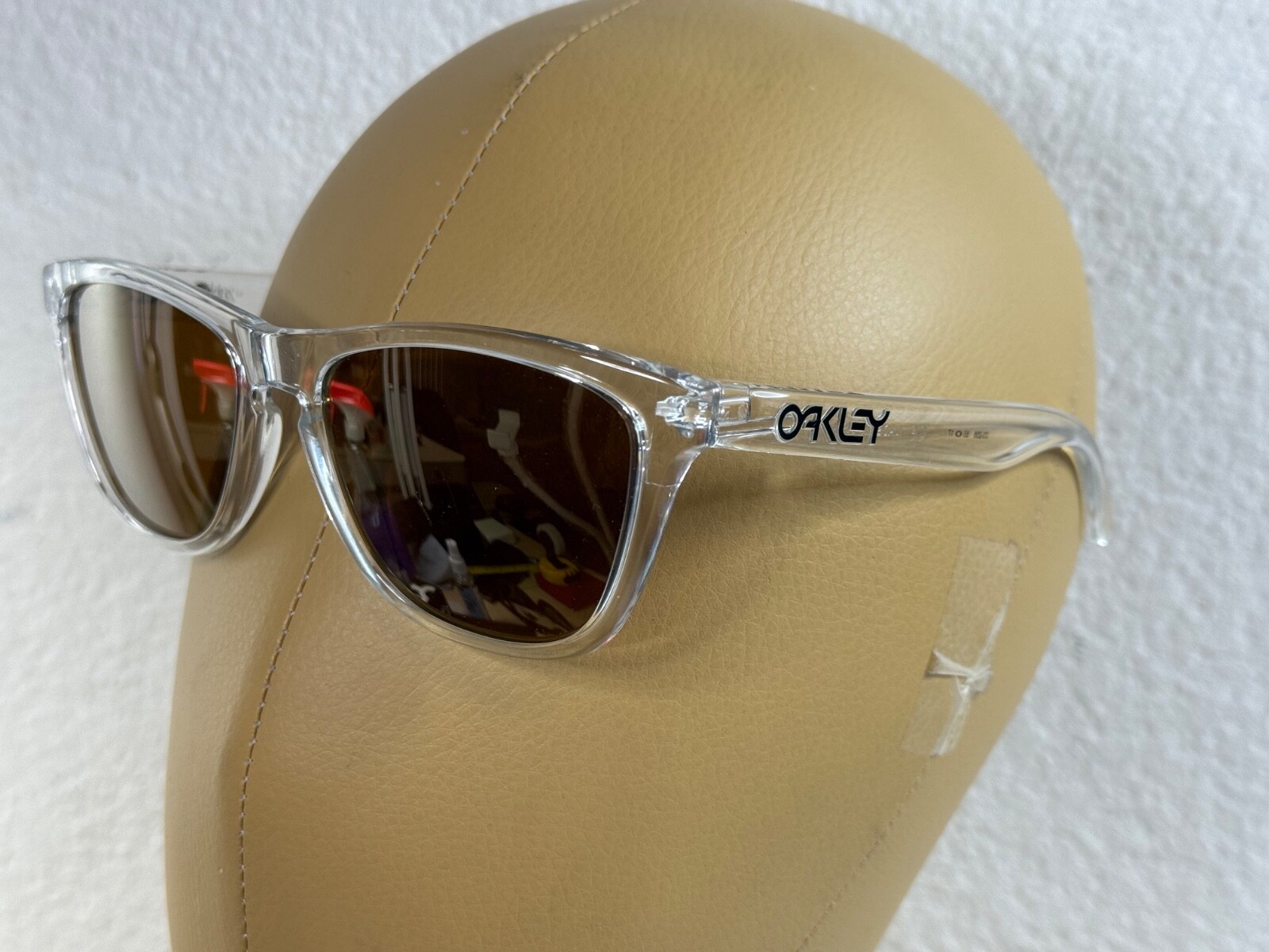 Explore the world with style and protection with the Oakley Frogskins sunglasses, featuring a crystal clear frame and striking gold iridium lenses. These sunglasses are a rare find, blending iconic design with exceptional clarity and durability.
