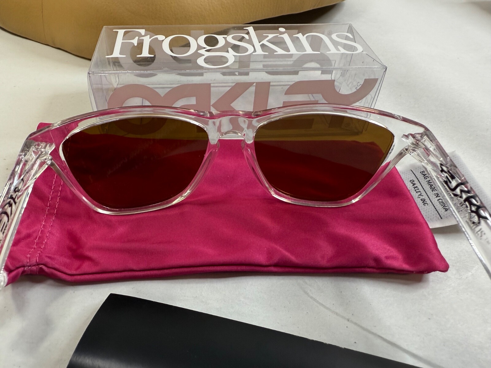Ideal for unisex adults, the Oakley Frogskins model is a testament to the brand's commitment to quality. The clear frame is complemented by the luxurious gold lenses, offering a sophisticated look for any outdoor enthusiast or fashion-forward individual. Complete with original packaging, they're a must-have accessory for those who value both style and performance. 2008