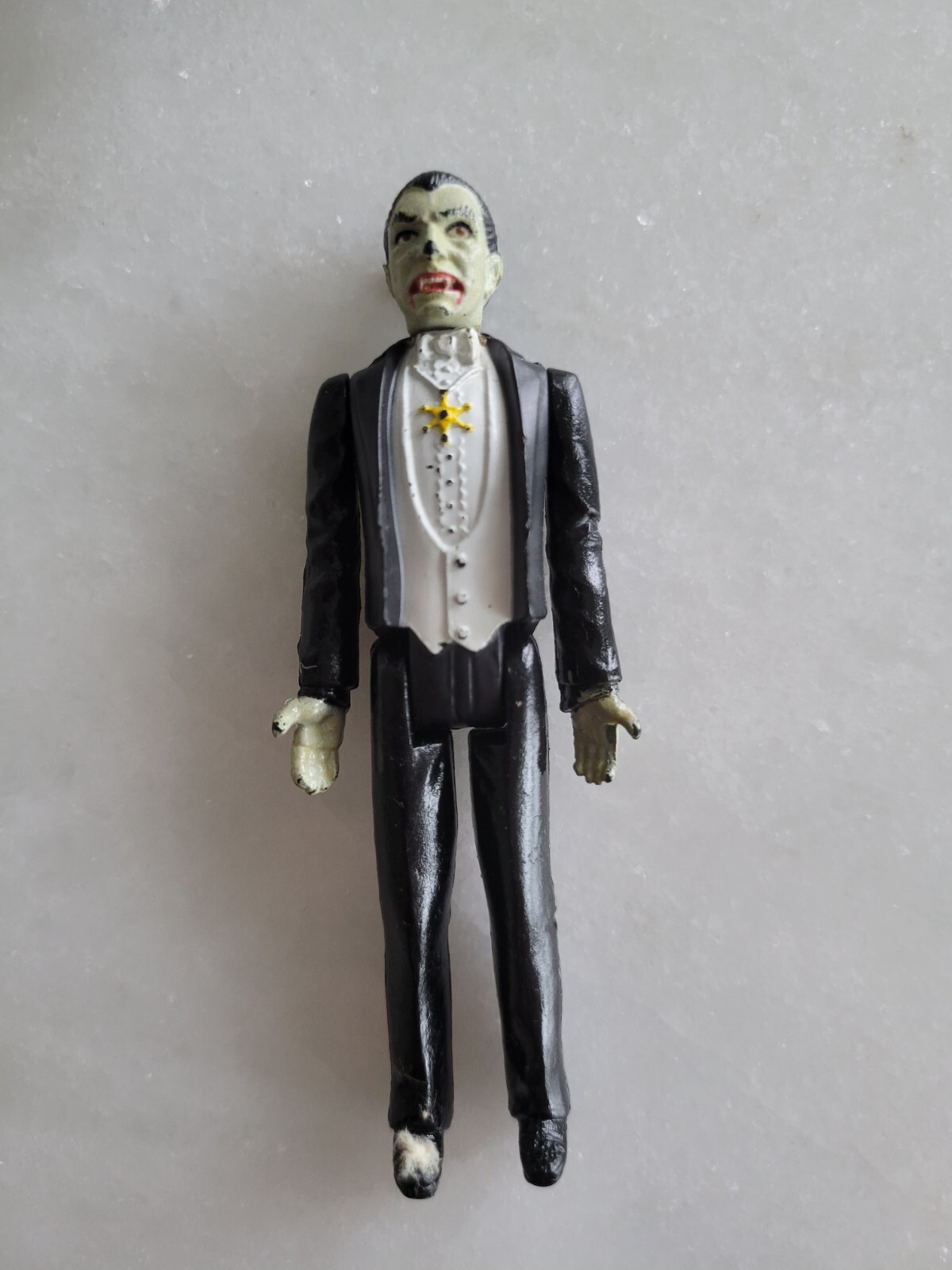 This is a rare vintage Dracula action figure from Remco's 1980 Universal Monsters collection. Measuring at 3.75 inches, this figure features the iconic character and is perfect for any collector or fan of the series. The figure is in great shape and is perfect for display or play. With its detailed design and high-quality construction, it's sure to be a standout addition to any action figure collection. Don't miss out on the opportunity to own this rare and sought-after piece of Dracula memorabilia.