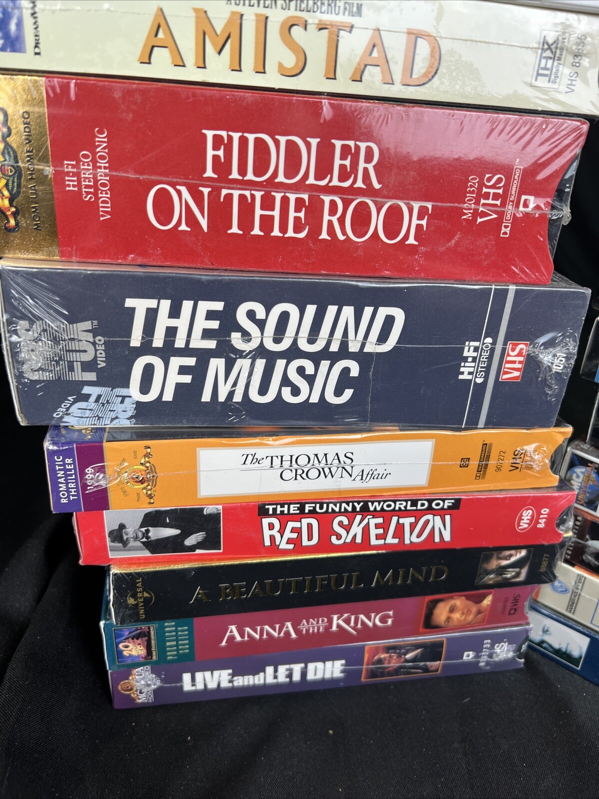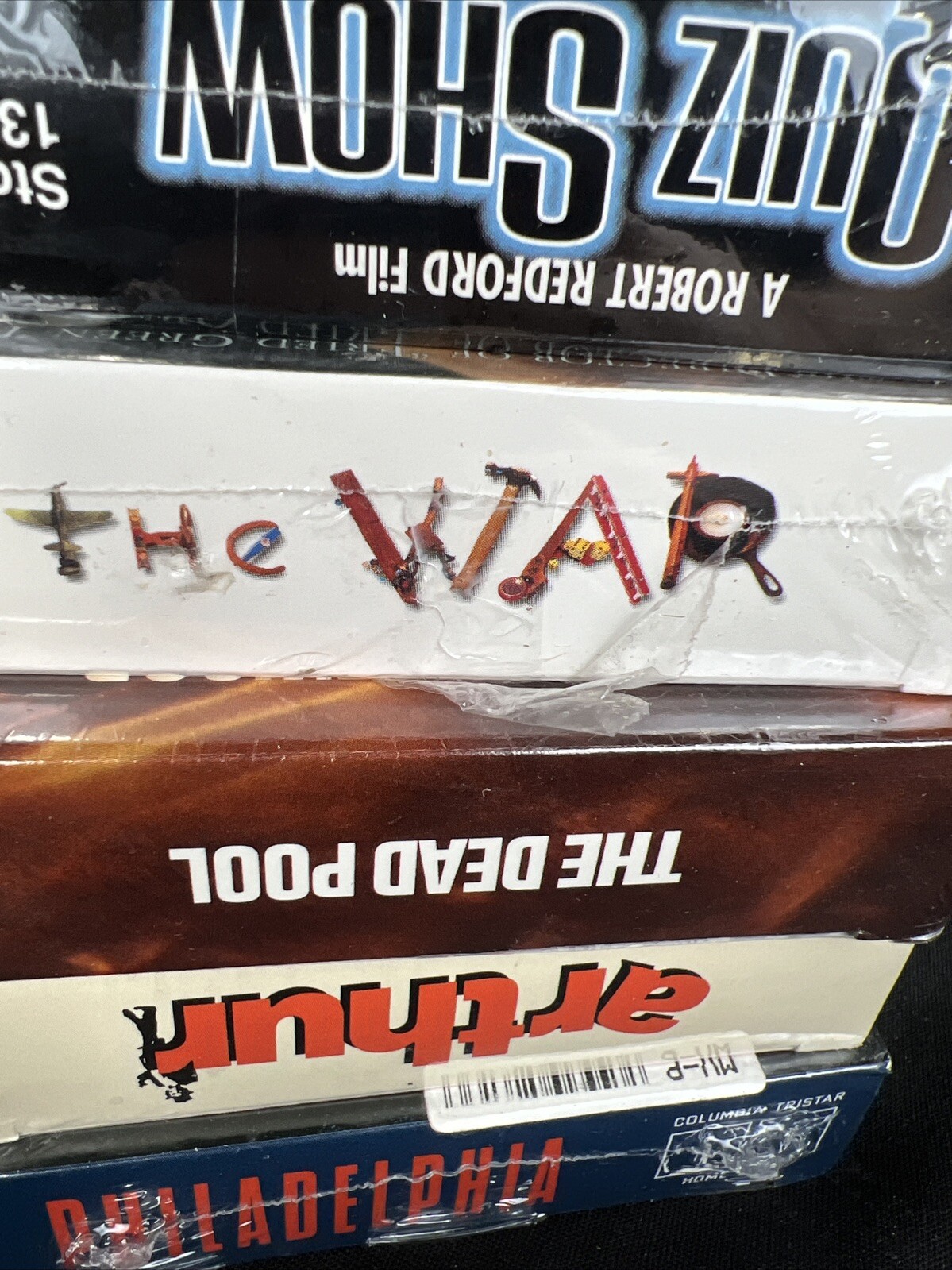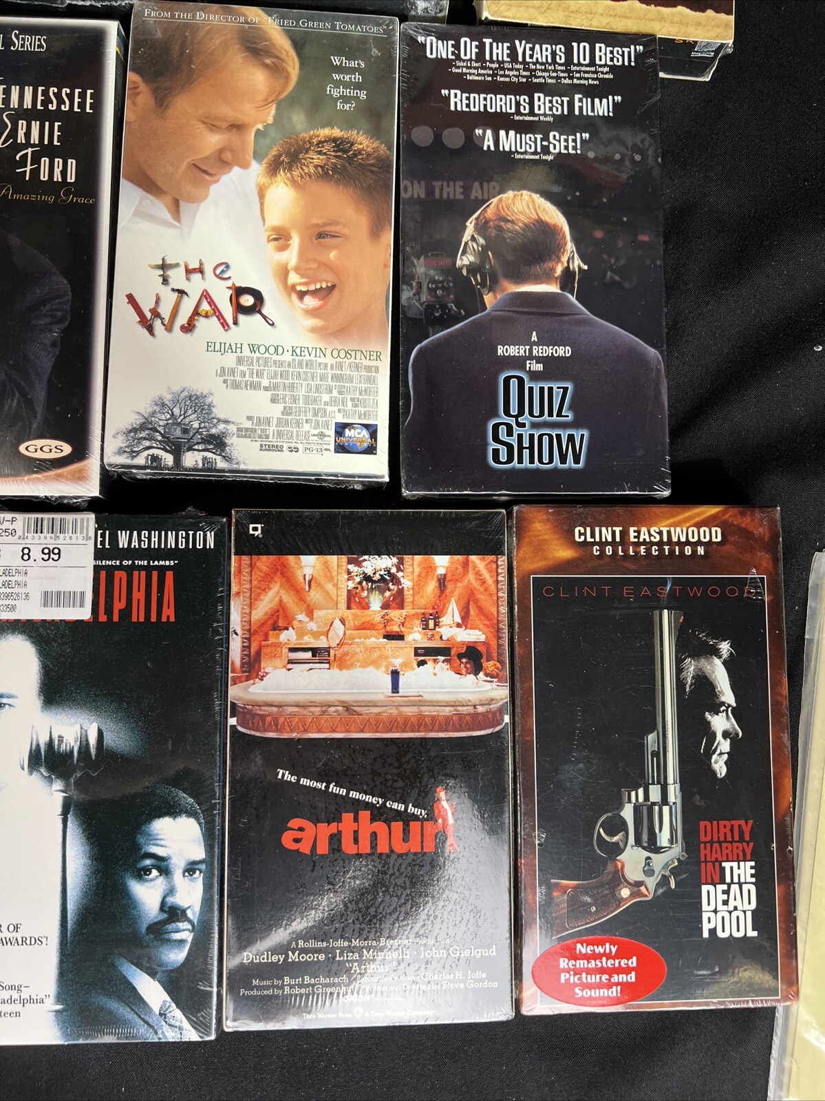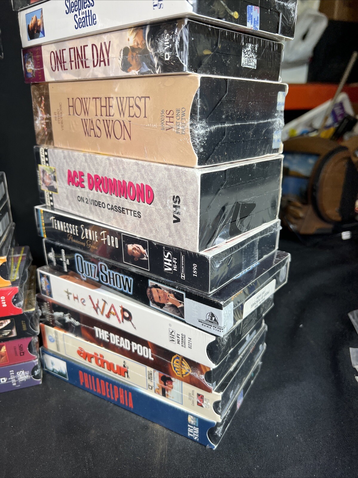 I believe these all to be factory sealed. The original cellophane look pretty good on most of these. I’m not super familiar with VHS wraps, but the internal tabs look good as well. There is a little bit of cellophane coming off on a couple of them. There are four that are double VHS packs. All are sealed, and you get all 21 shown.