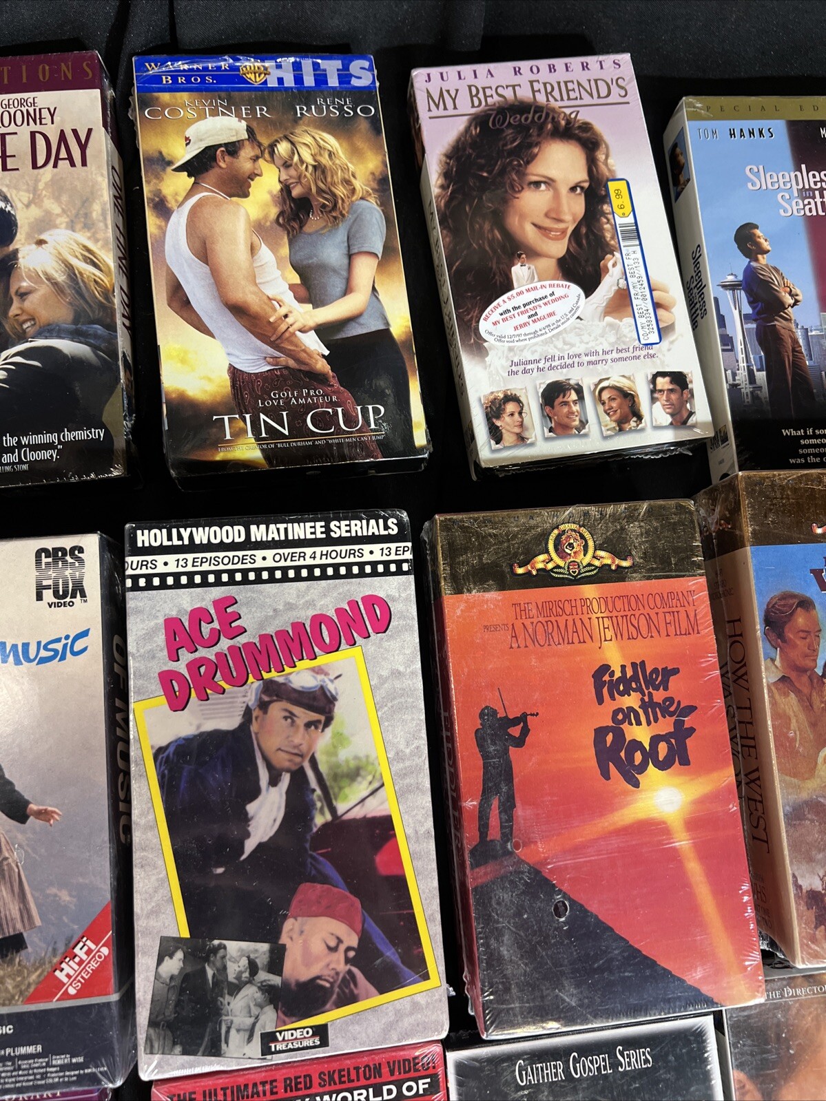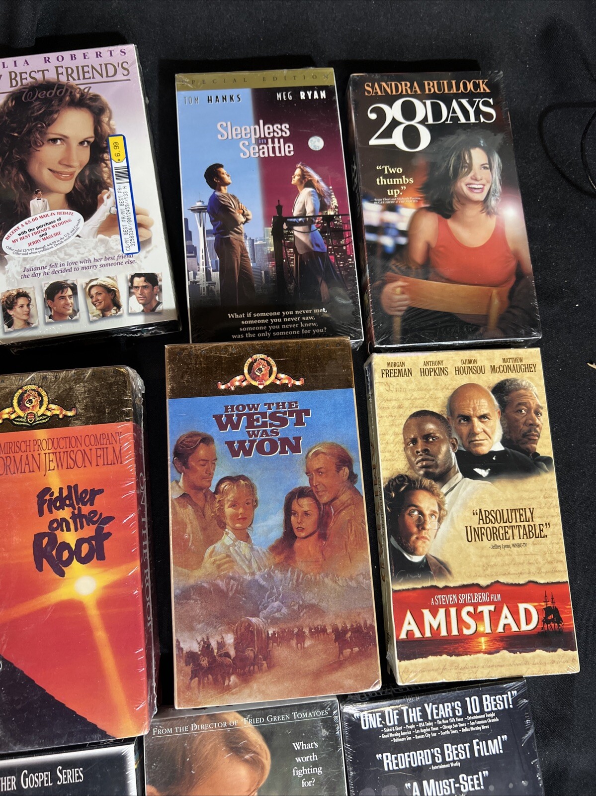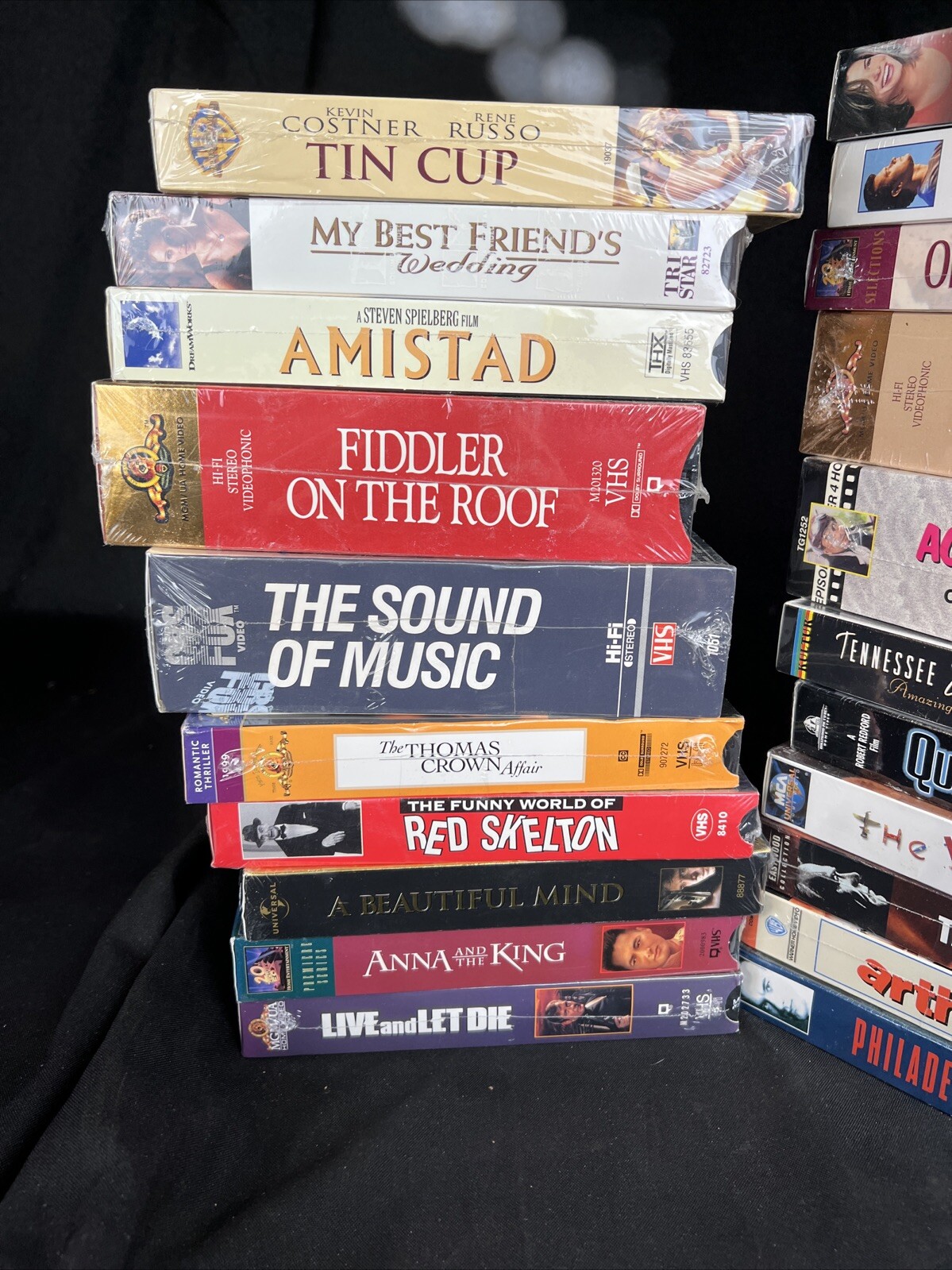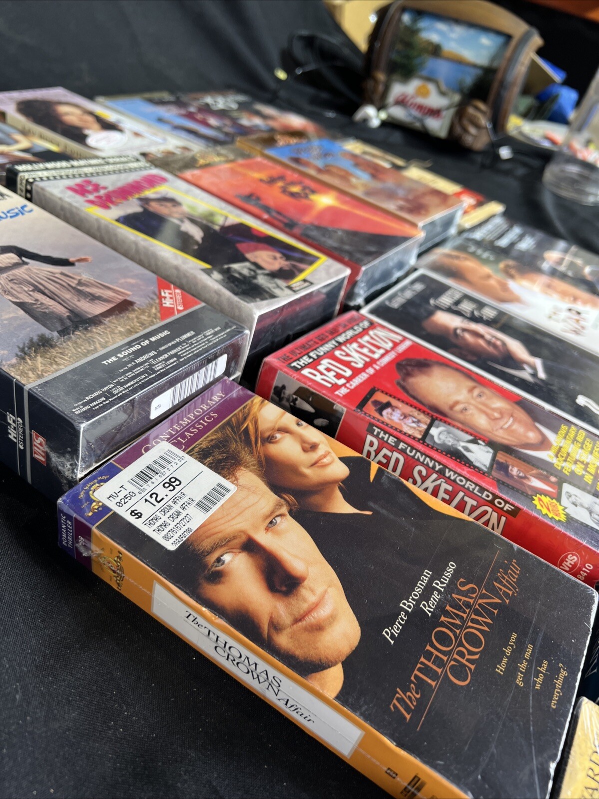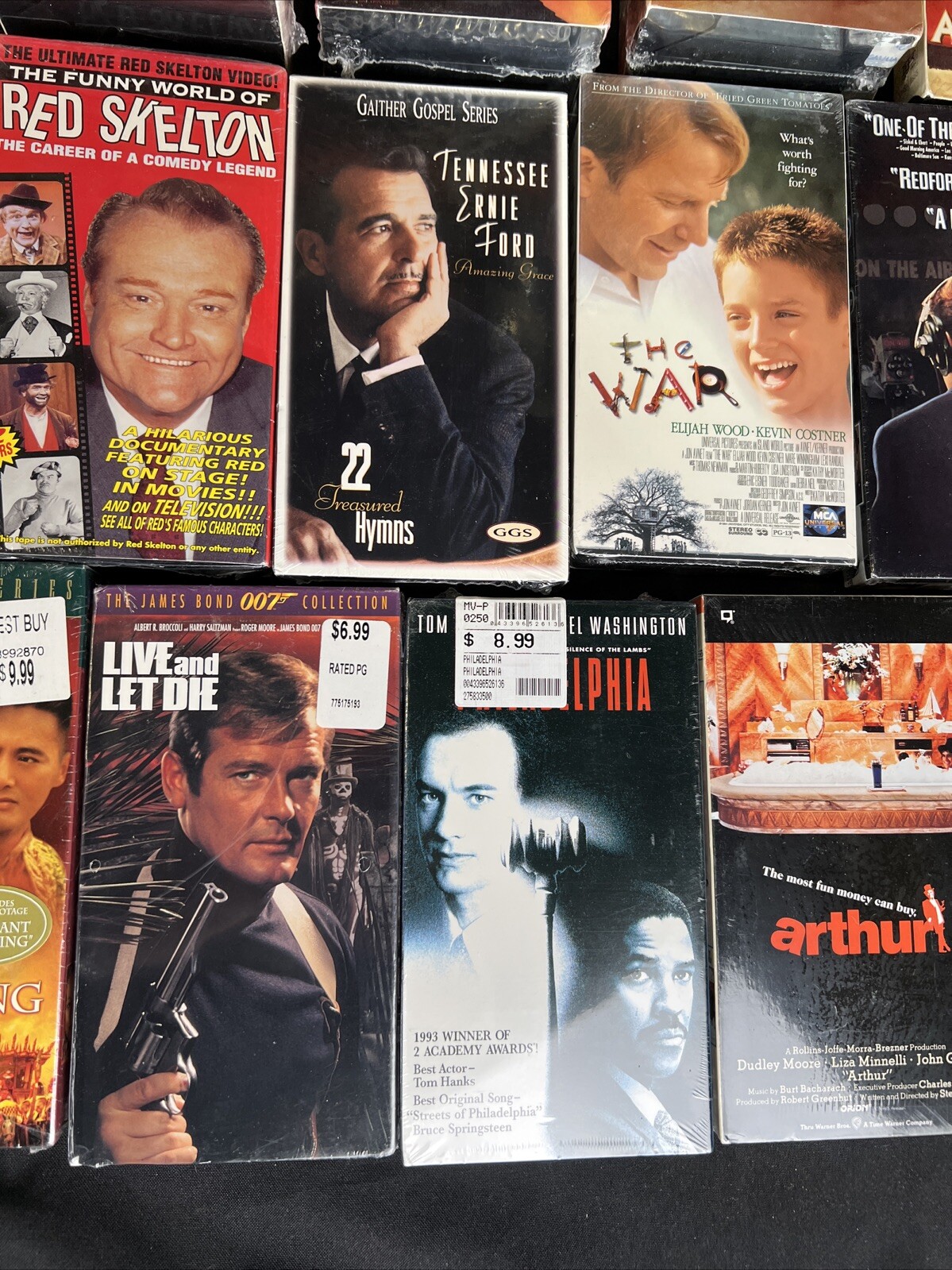 I believe these all to be factory sealed. The original cellophane look pretty good on most of these. I’m not super familiar with VHS wraps, but the internal tabs look good as well. There is a little bit of cellophane coming off on a couple of them. There are four that are double VHS packs. All are sealed, and you get all 21 shown.