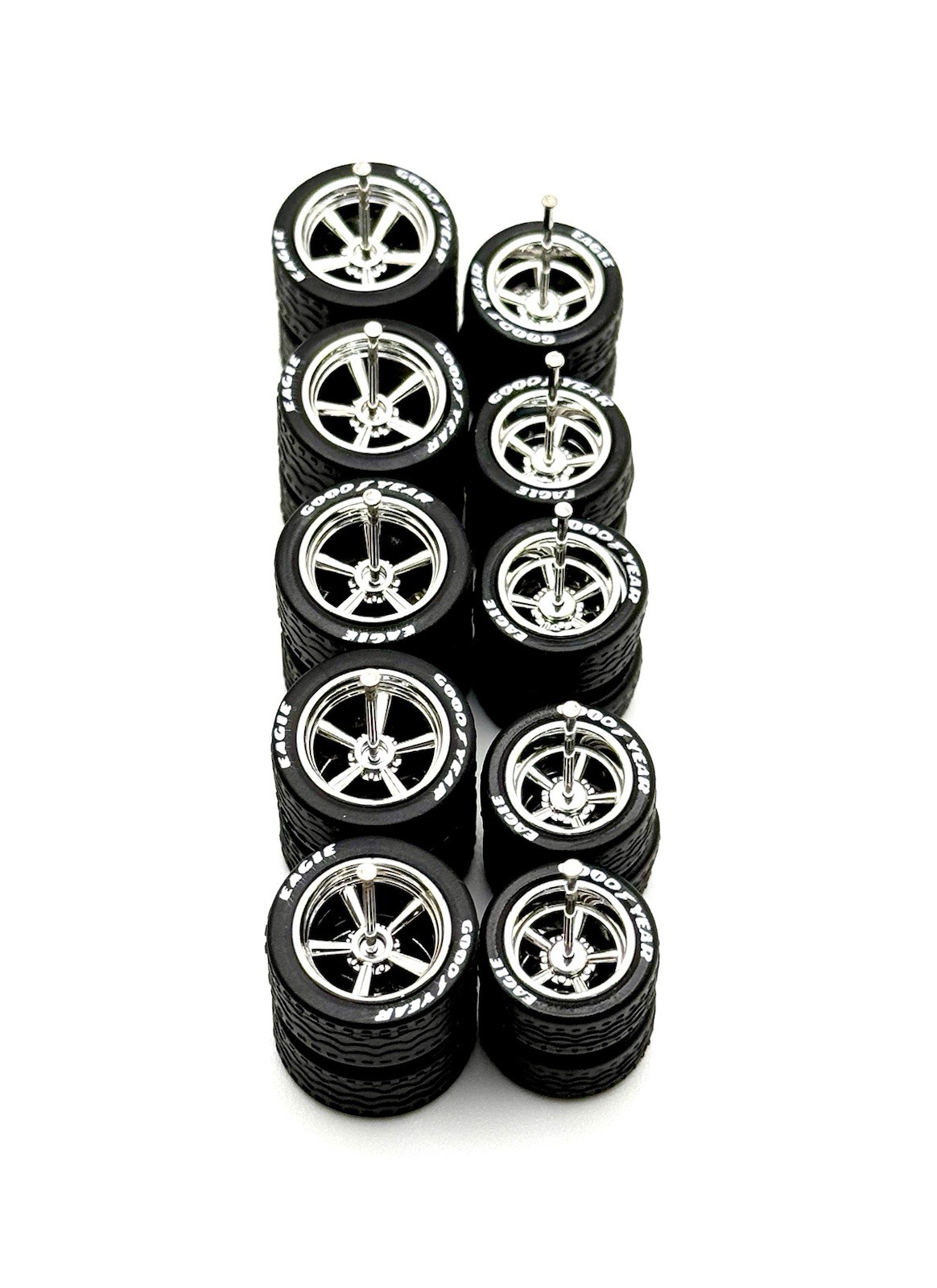 5 sets of Cragar 13/15mm Real Riders Wheels w/ Lettered Rubber Tires Sets for 1/64 Scale.